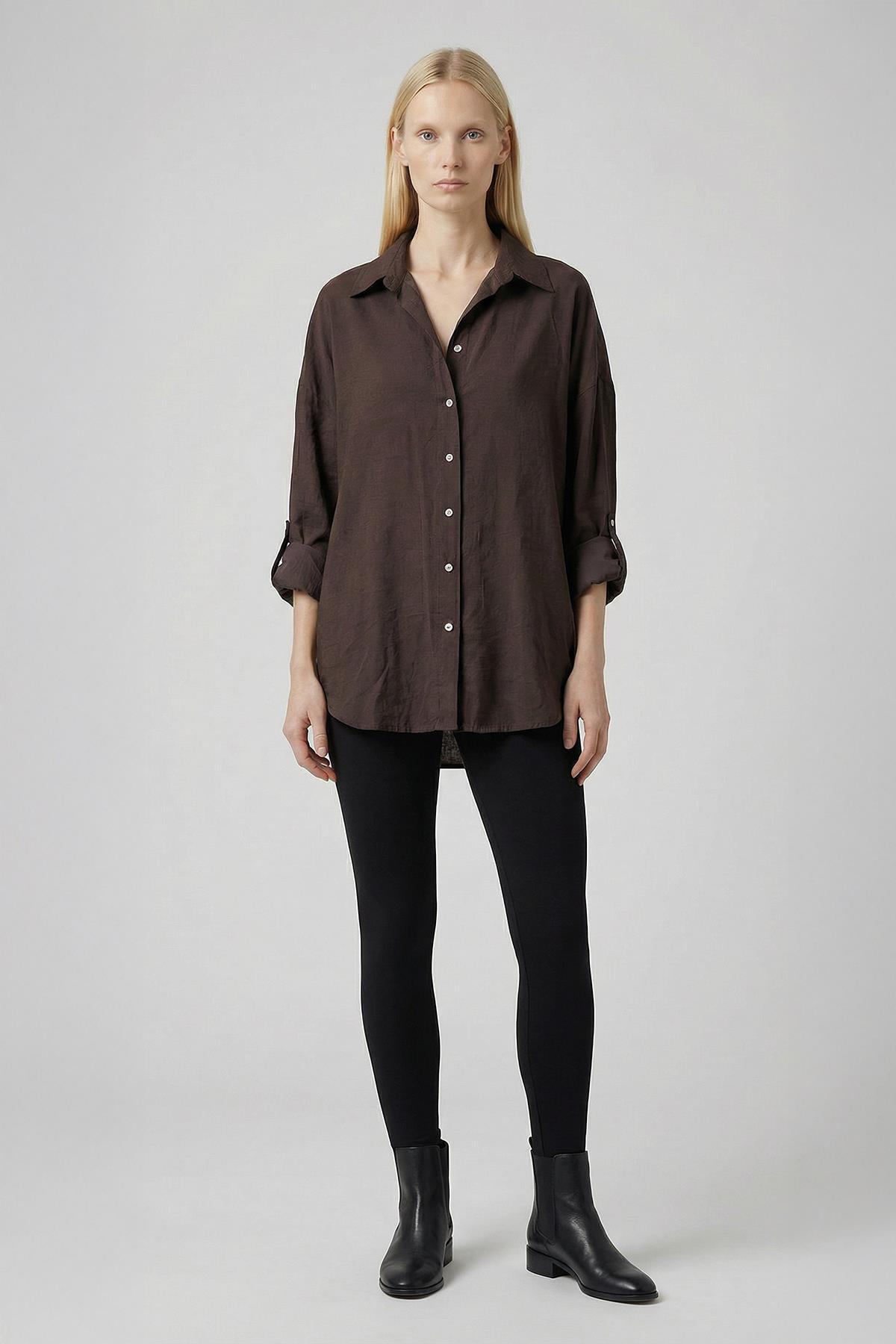 2893 Oversize Gömlek Kahve