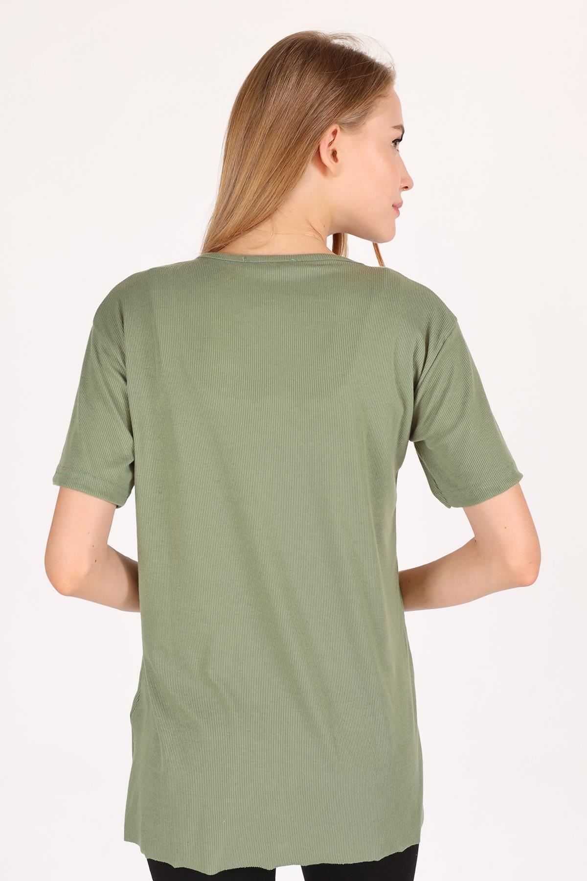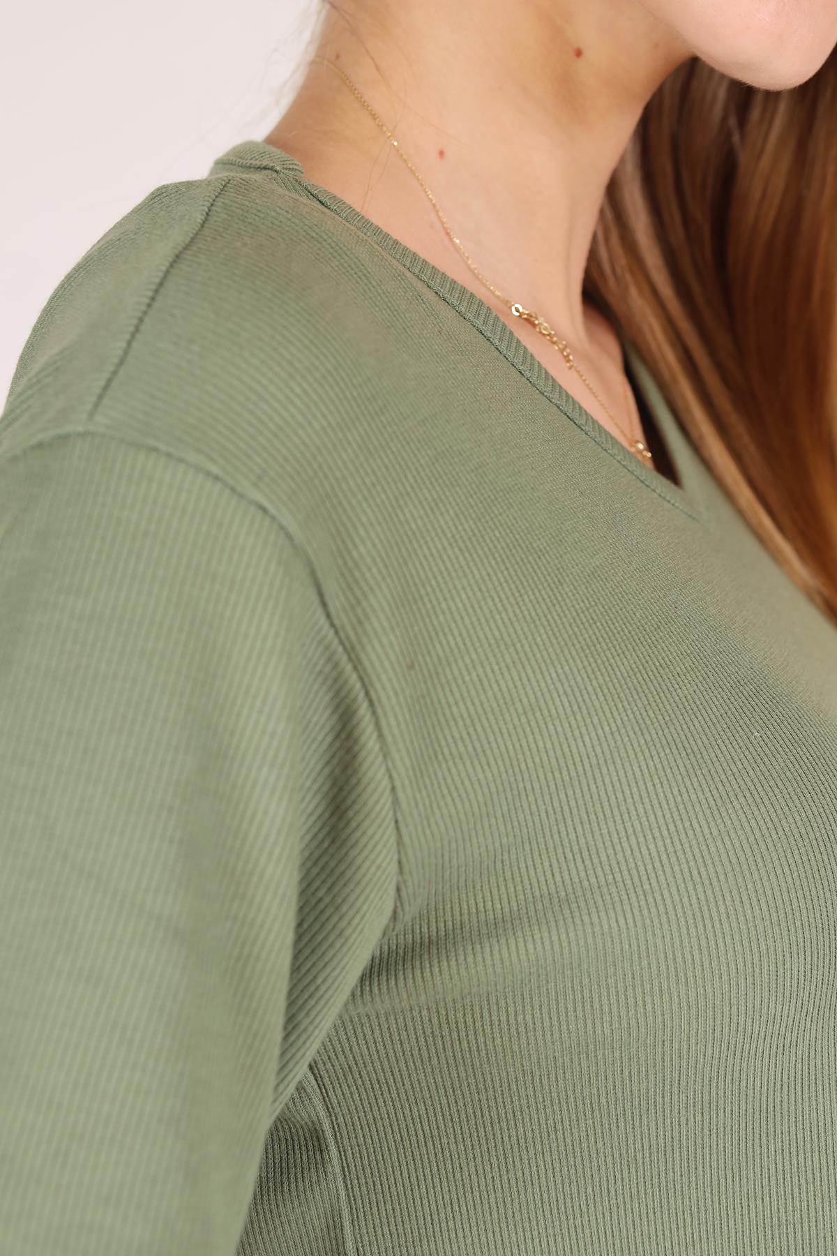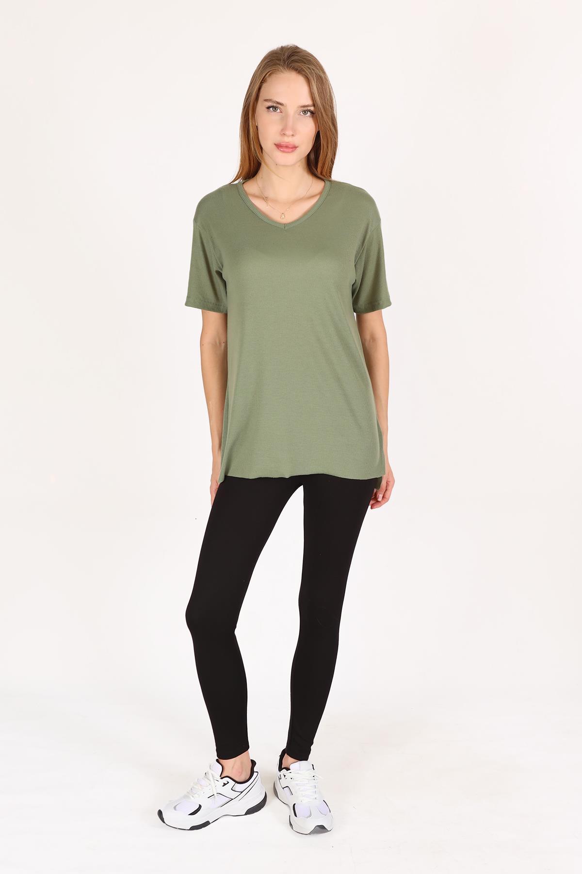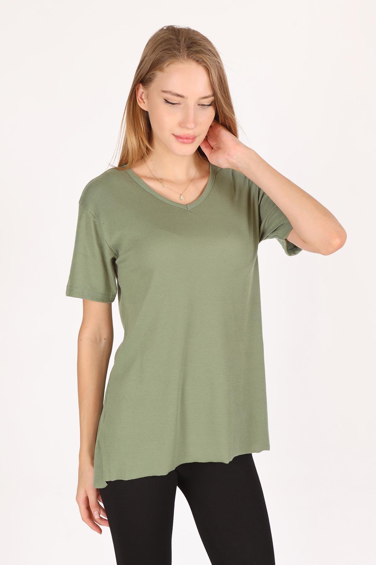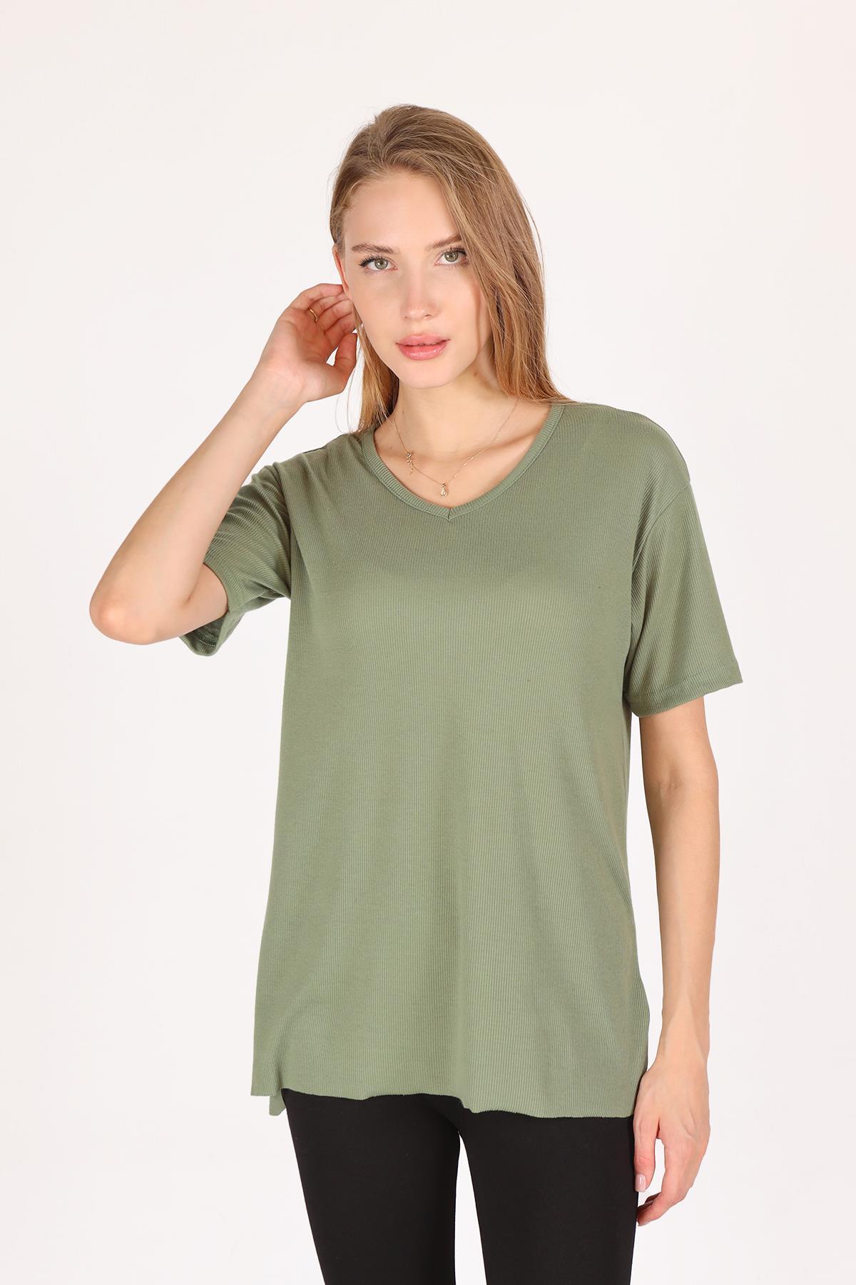 Haki V Yaka Kısa Kol Kaşkorse Tişört 2971