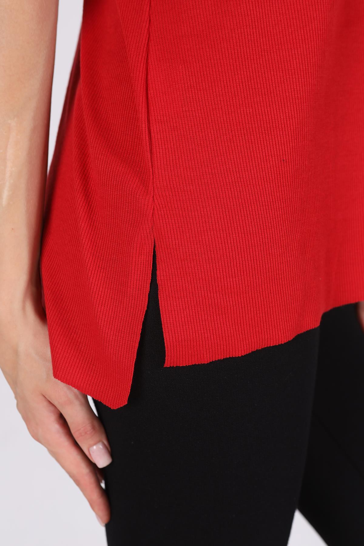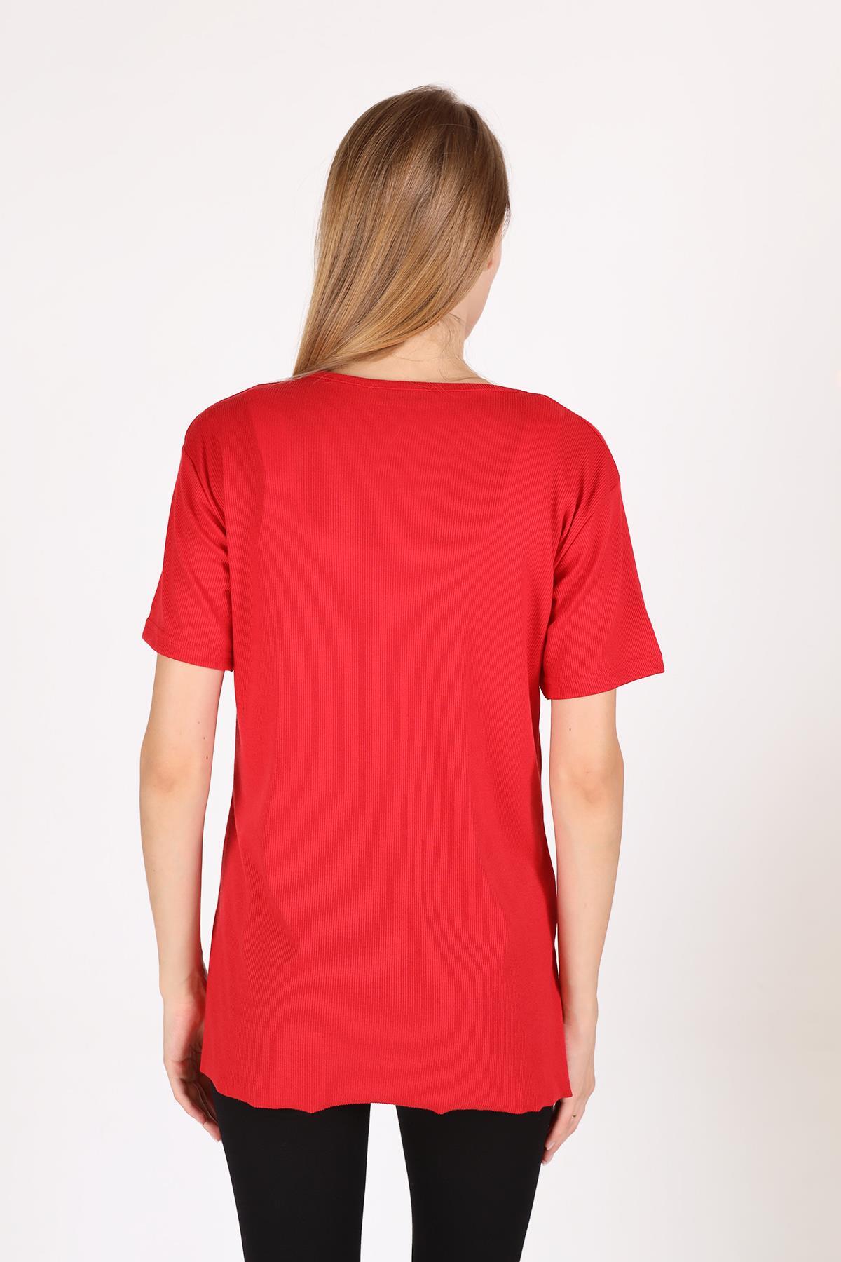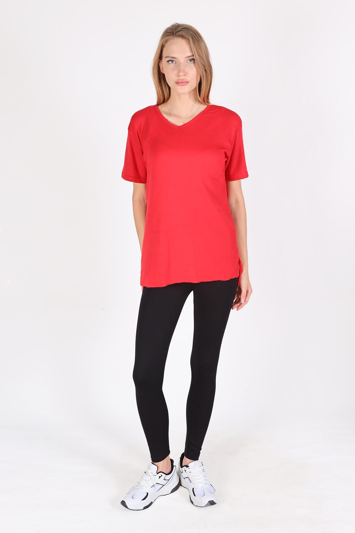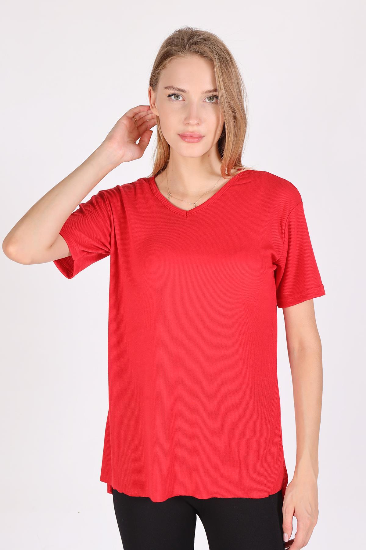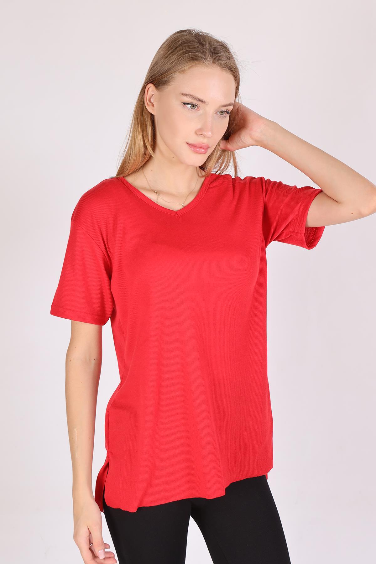 Kırmızı V Yaka Kısa Kol Kaşkorse Tişört 2971