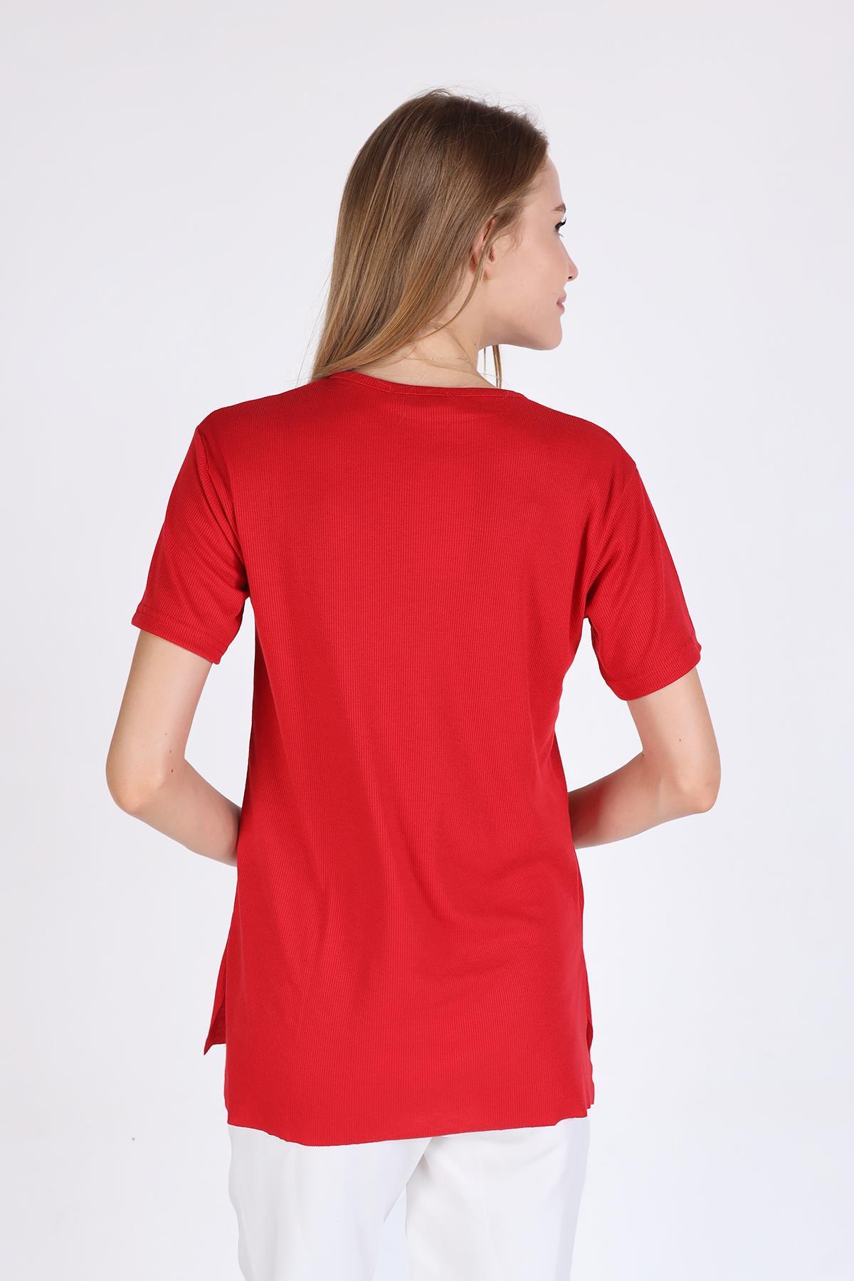 Kırmızı Bisiklet Yaka Kaşkorse Tişört 2991