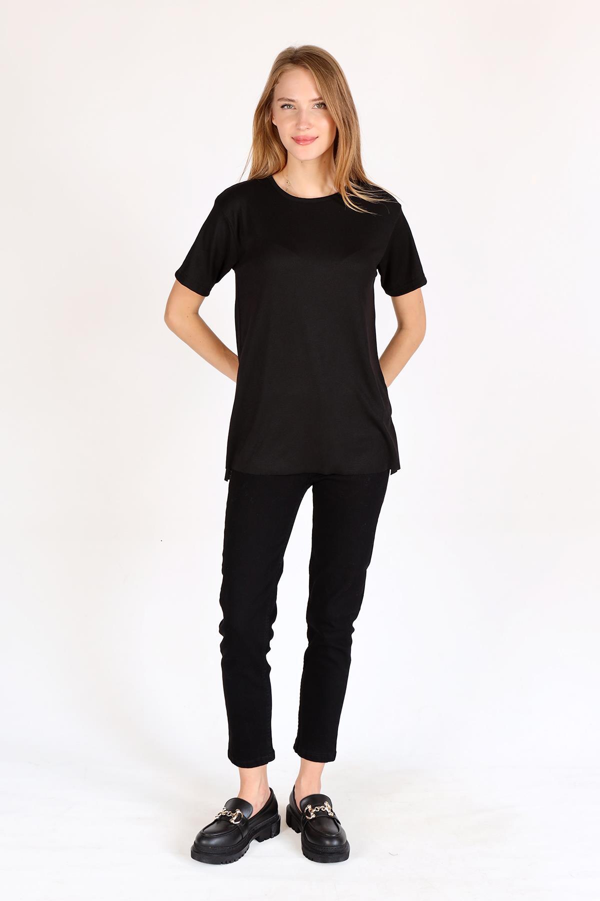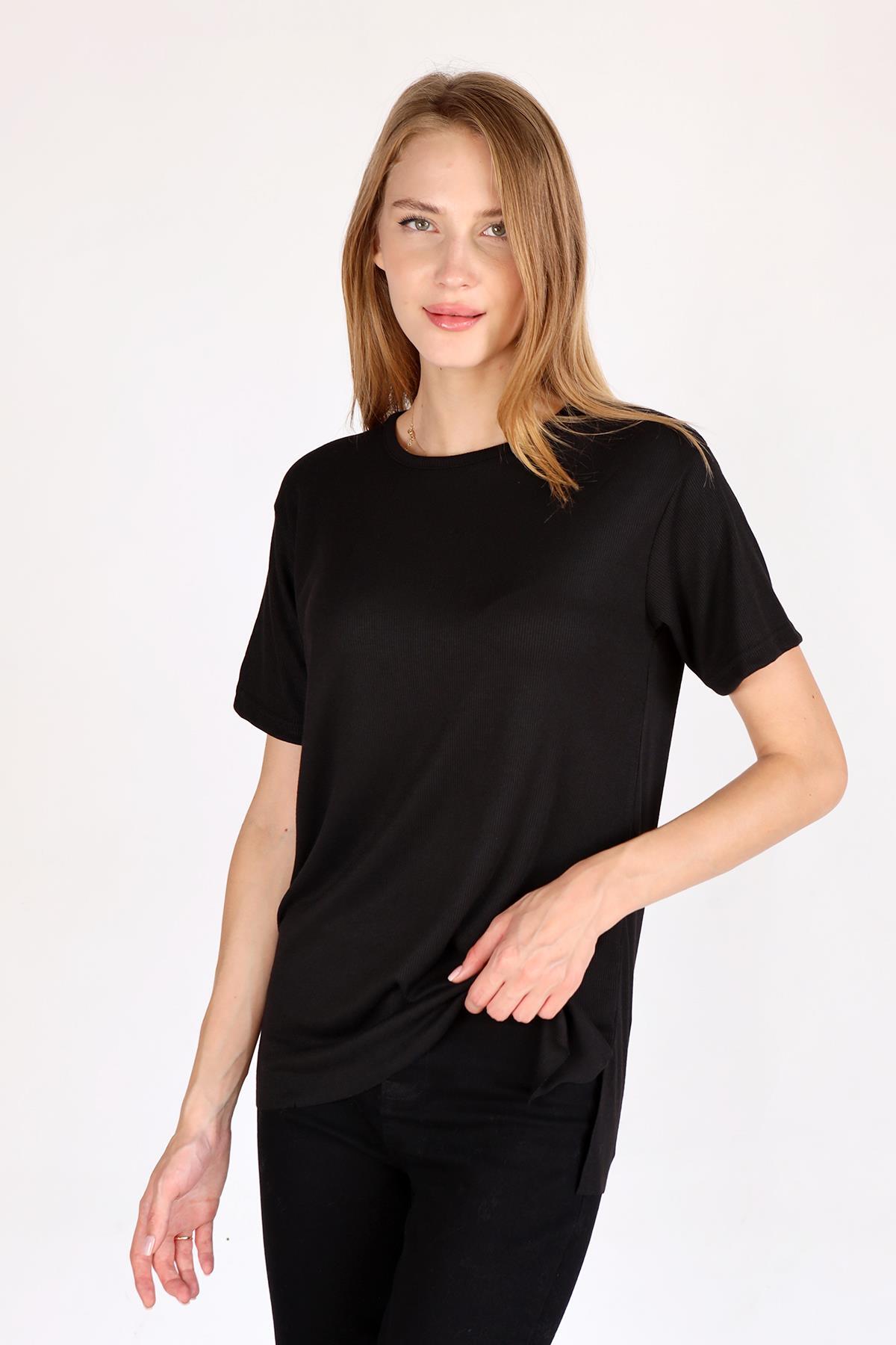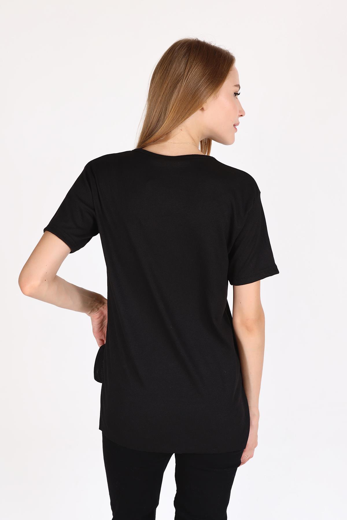 Siyah Bisiklet Yaka Kaşkorse Tişört 2991