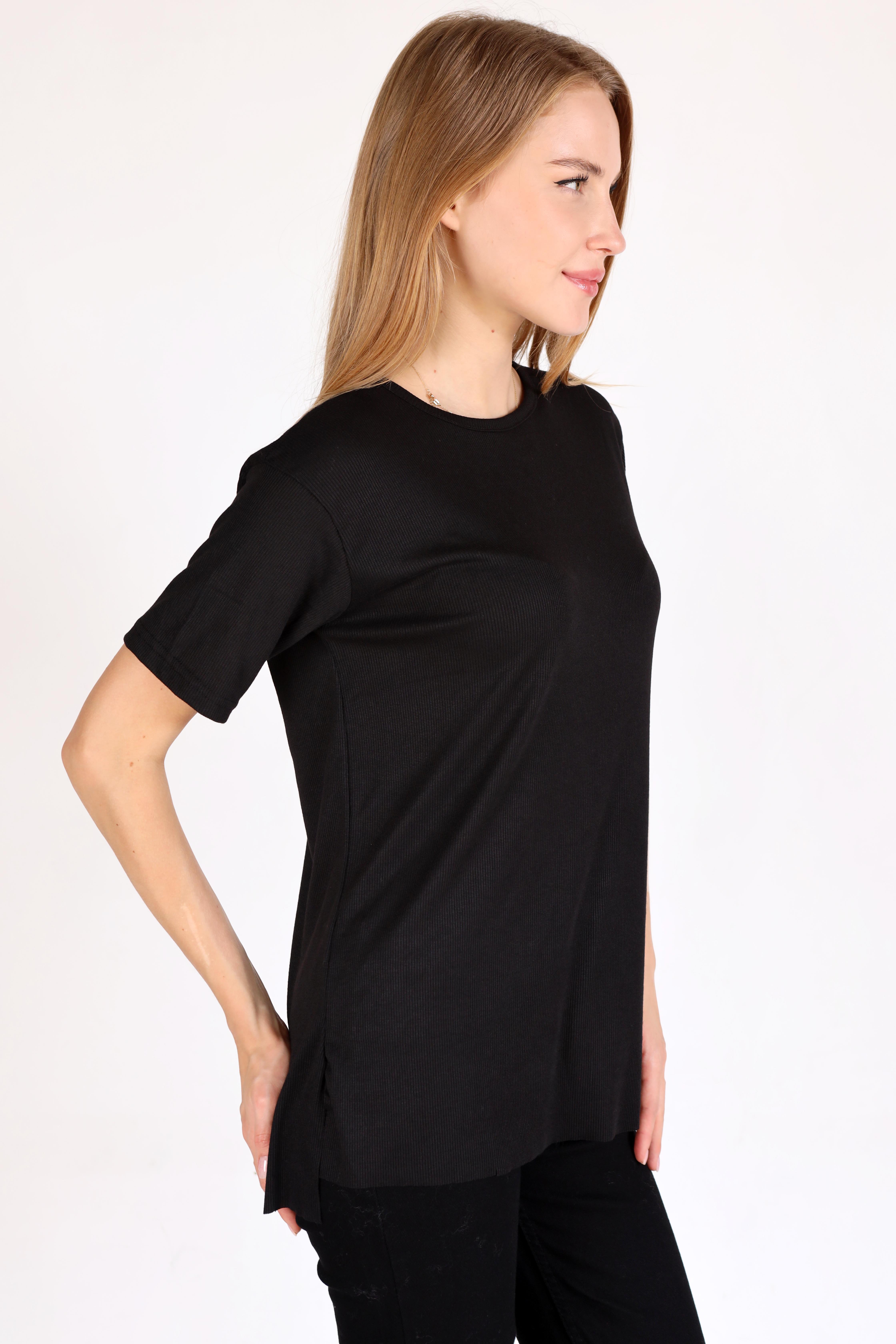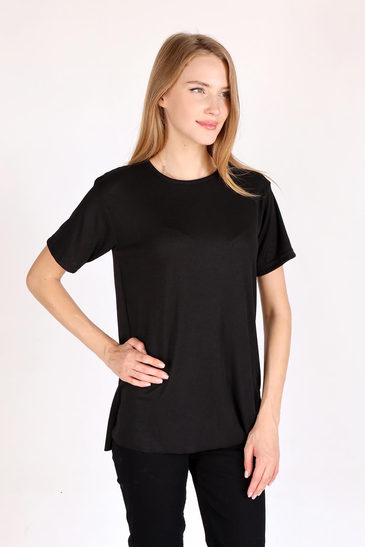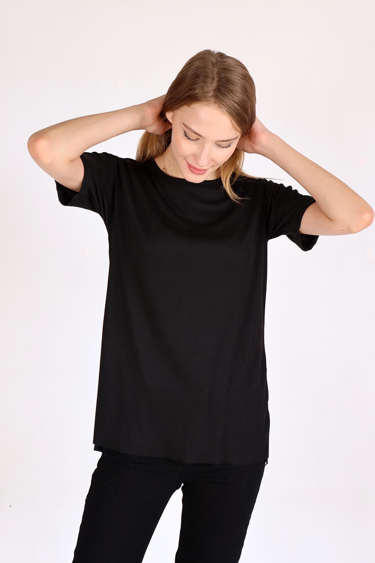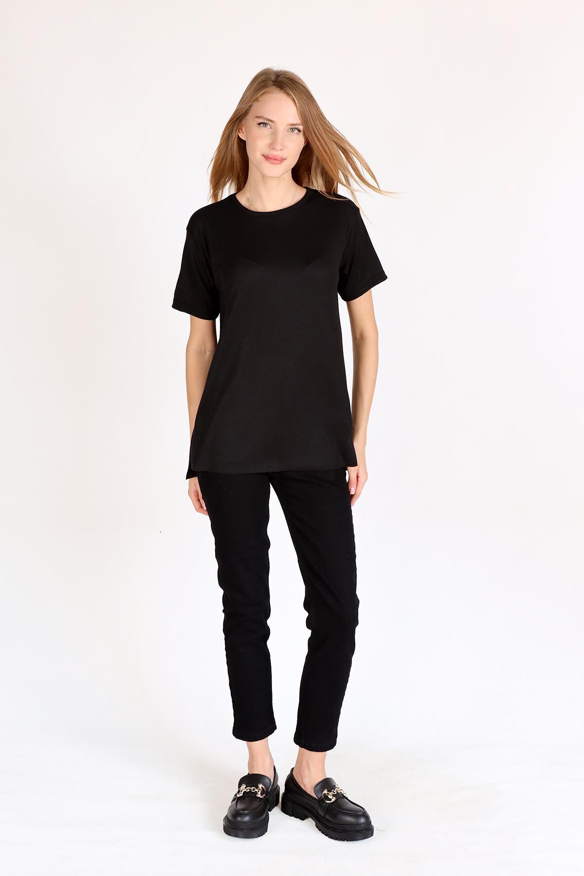 Siyah Bisiklet Yaka Kaşkorse Tişört 2991