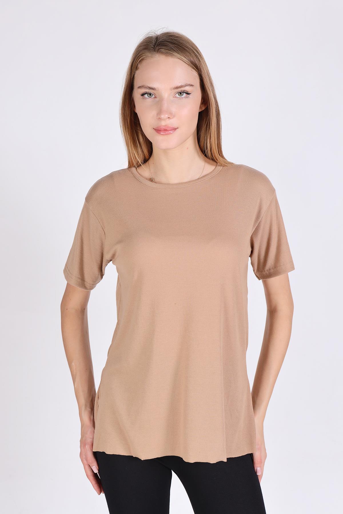 2991 Bisiklet Yaka Kaşkorse Tişört Vizon