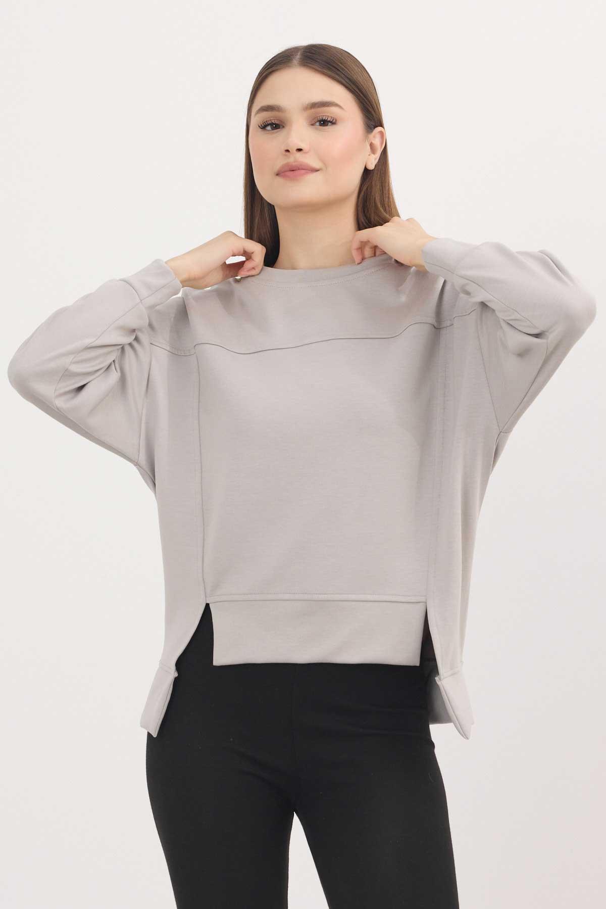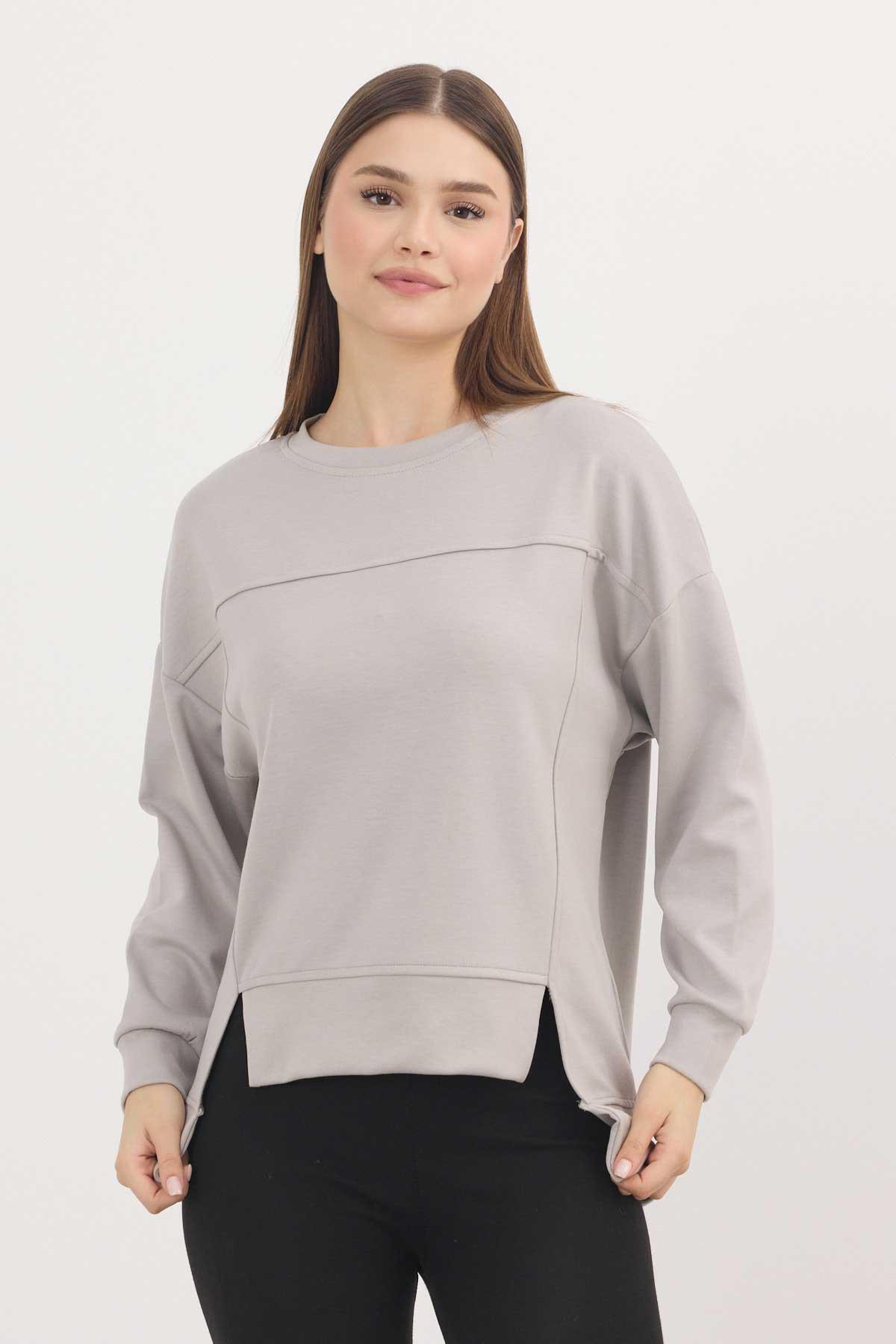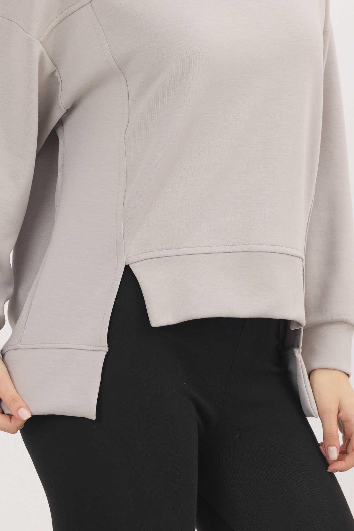 Açık Gri Bisiklet Yaka Parçalı Sweat 3000