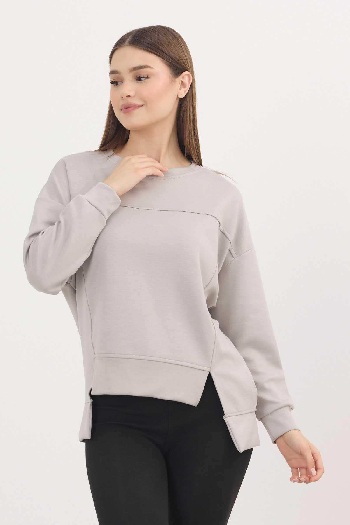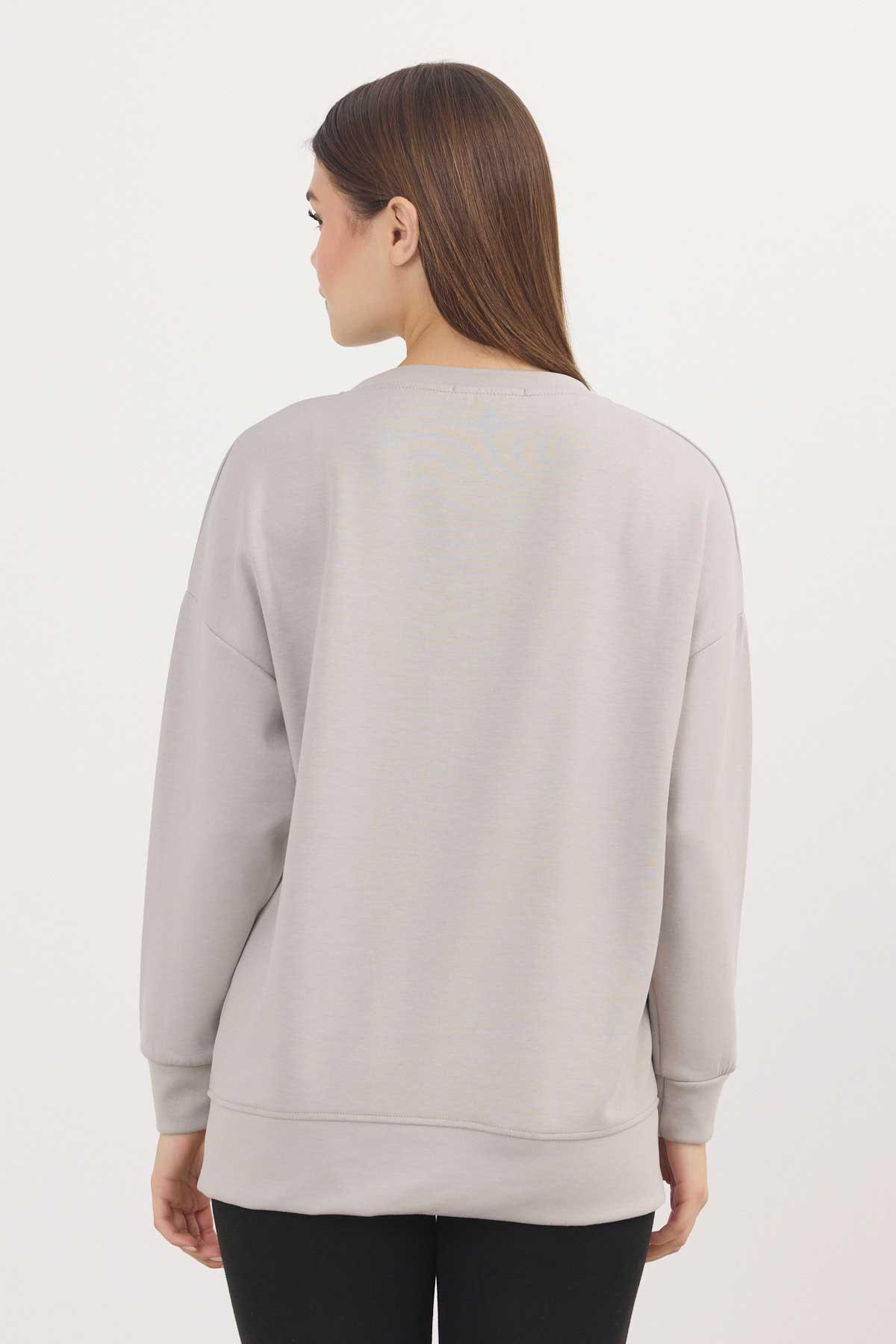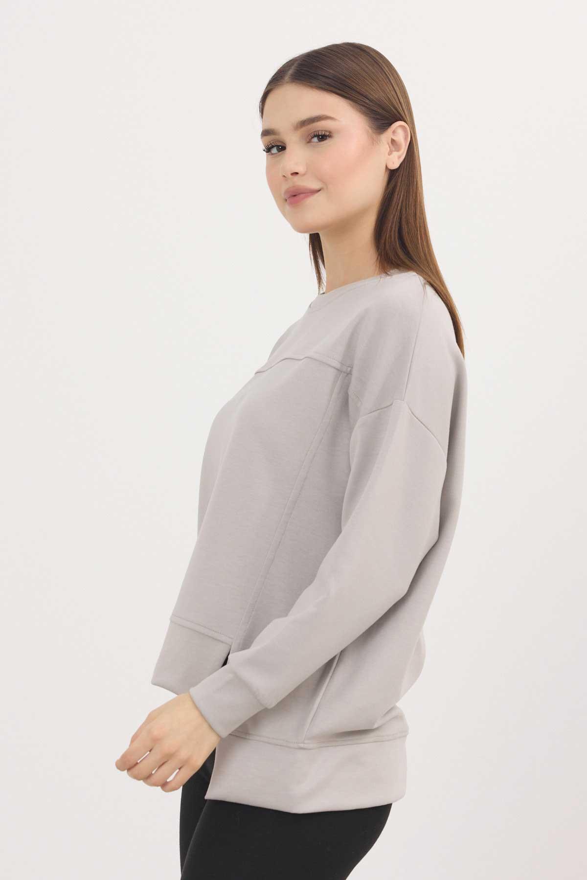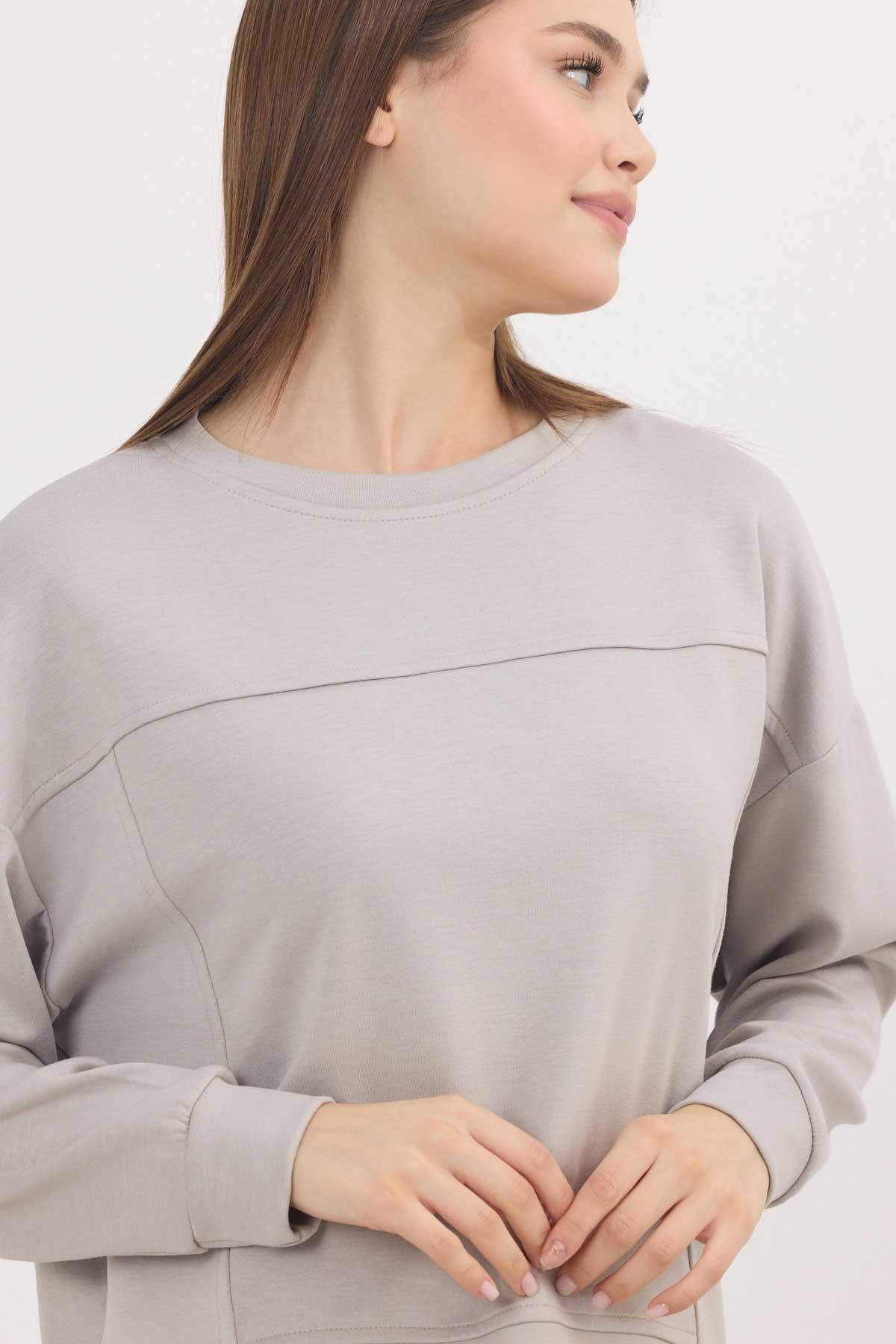 Açık Gri Bisiklet Yaka Parçalı Sweat 3000