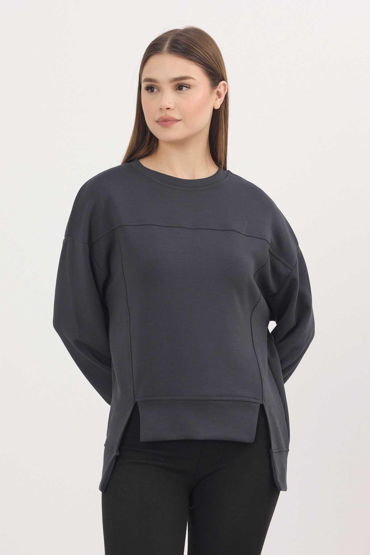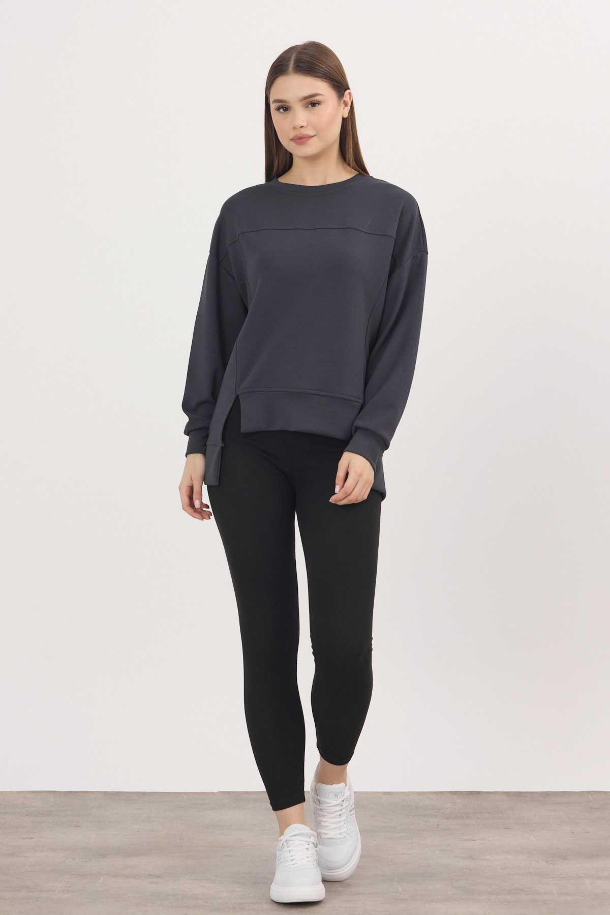 Antrasit Bisiklet Yaka Parçalı Oysho Sweat 3000