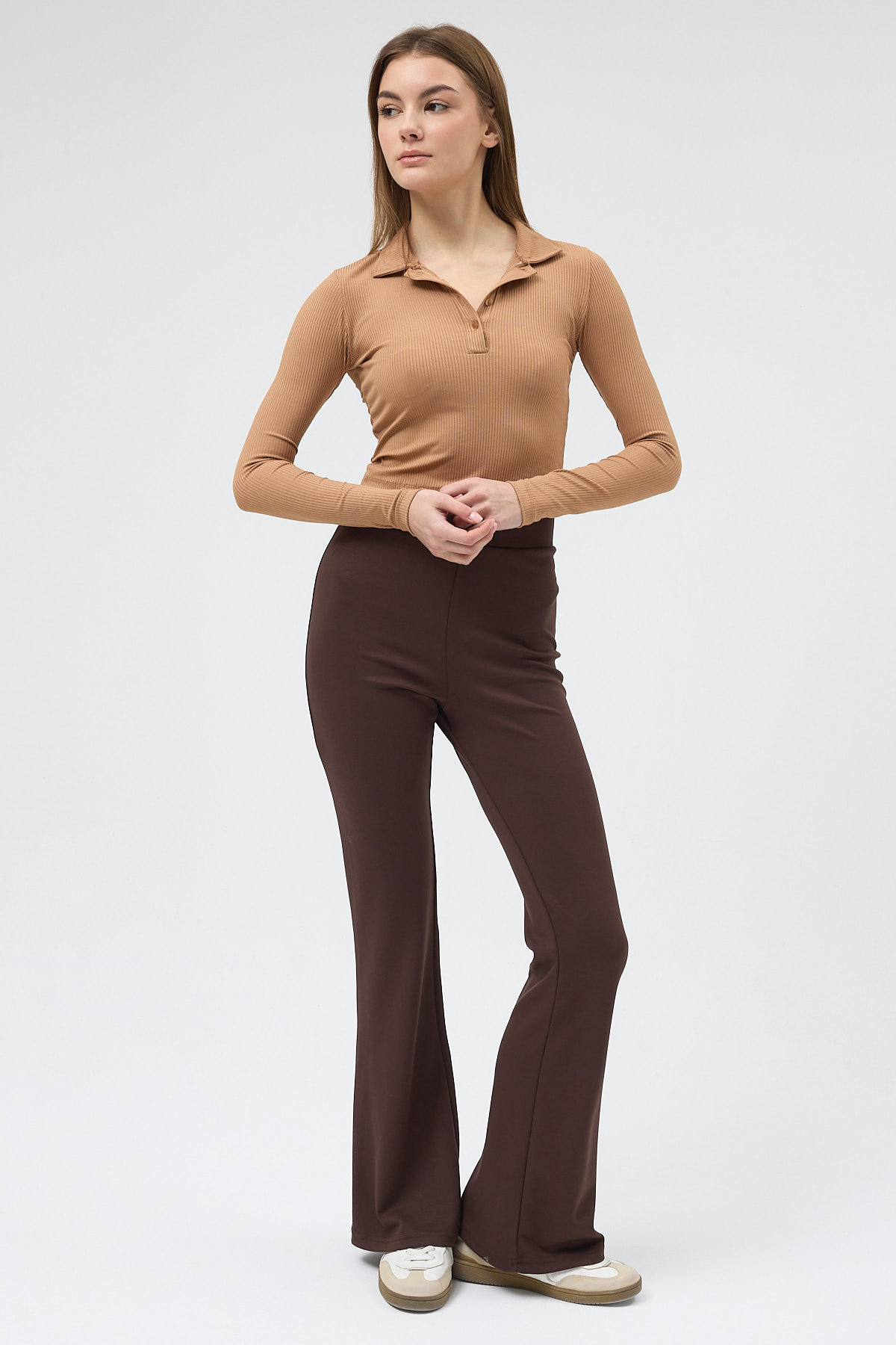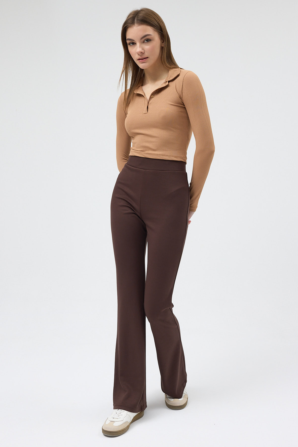 Kahverengi Geniş Paça Yüksek Bel Lastikli Kadın Eşofman Altı 30005