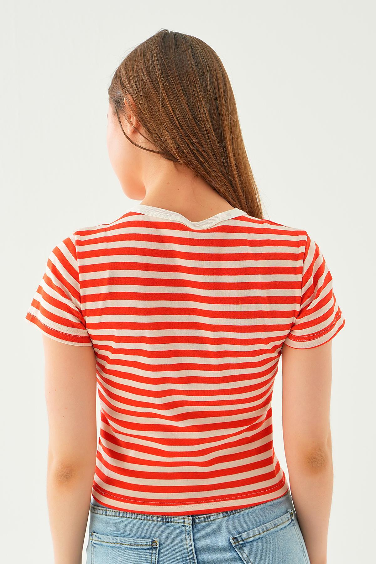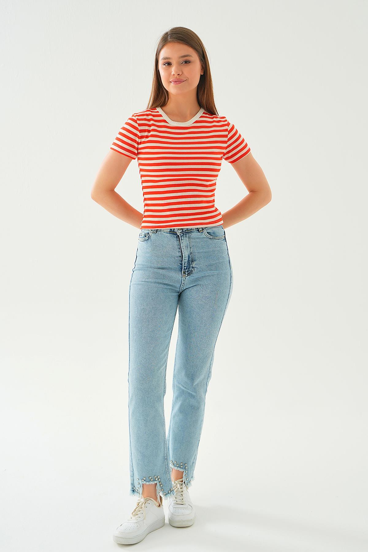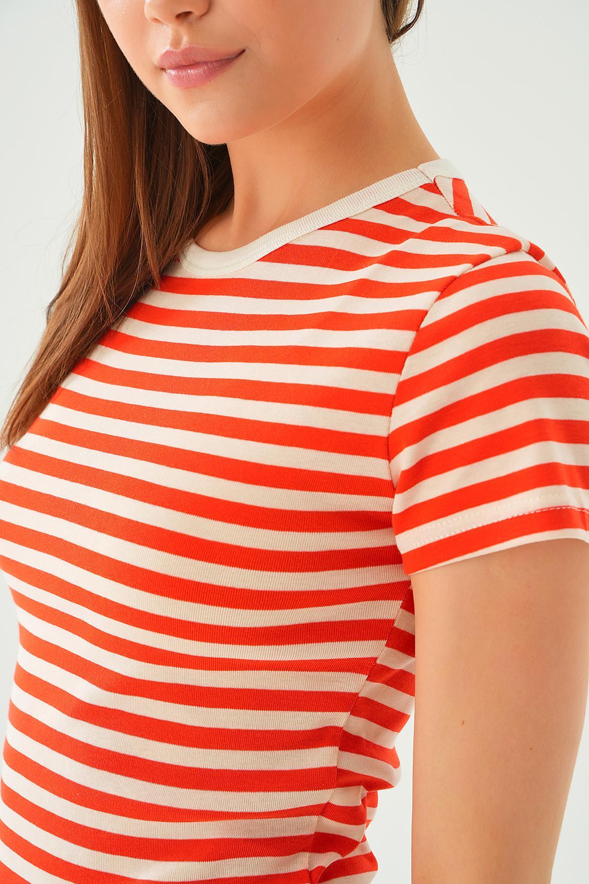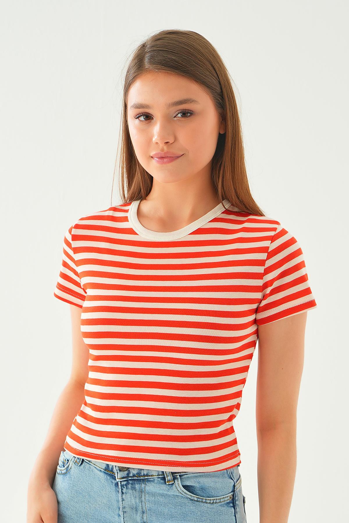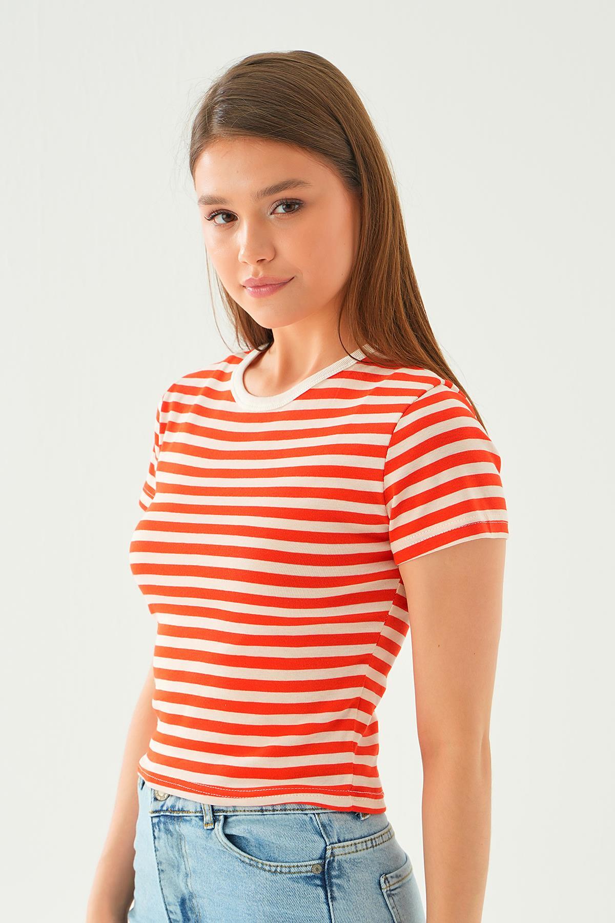 Orange Çizgili Kısa Tişört 3001