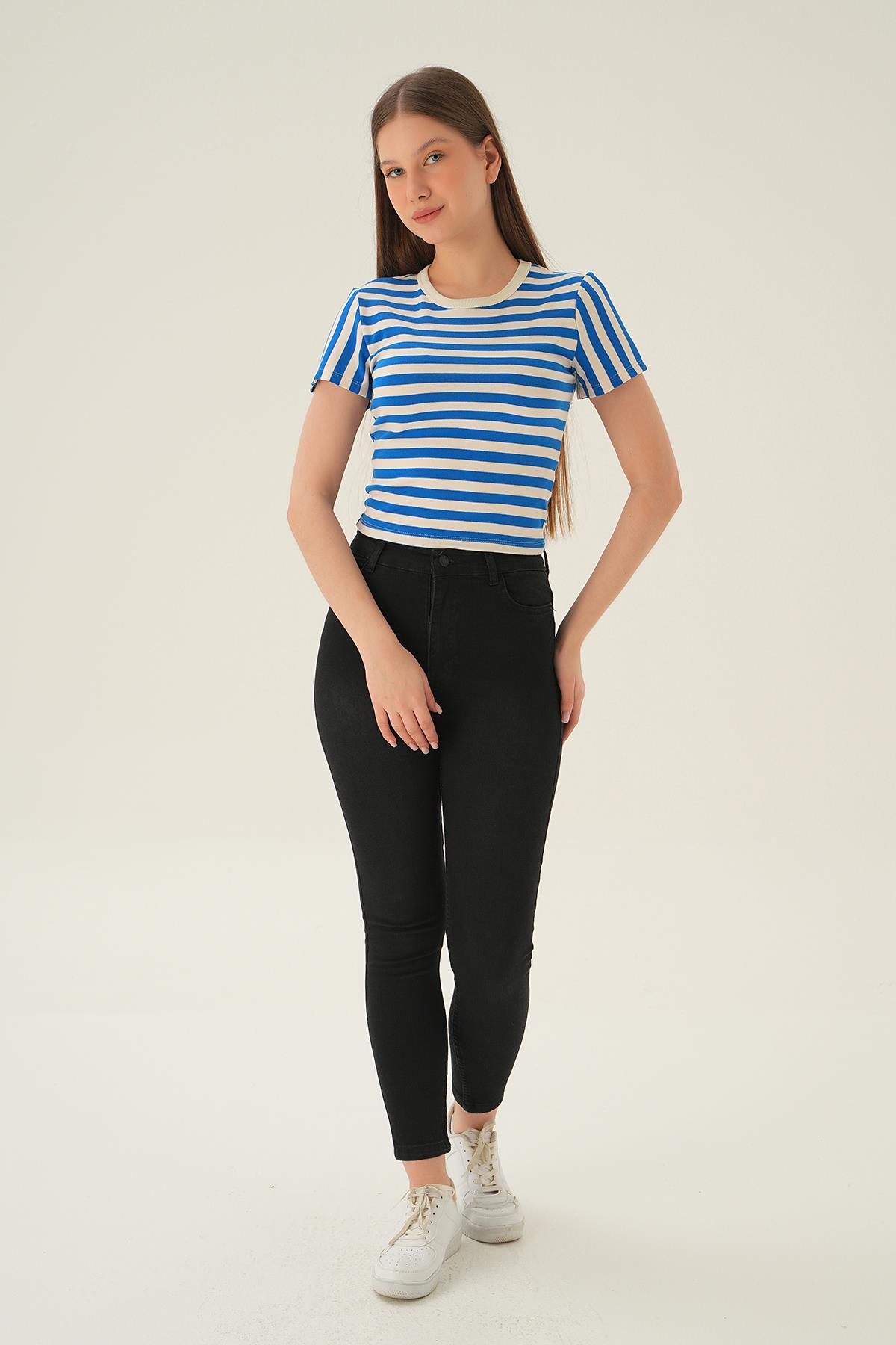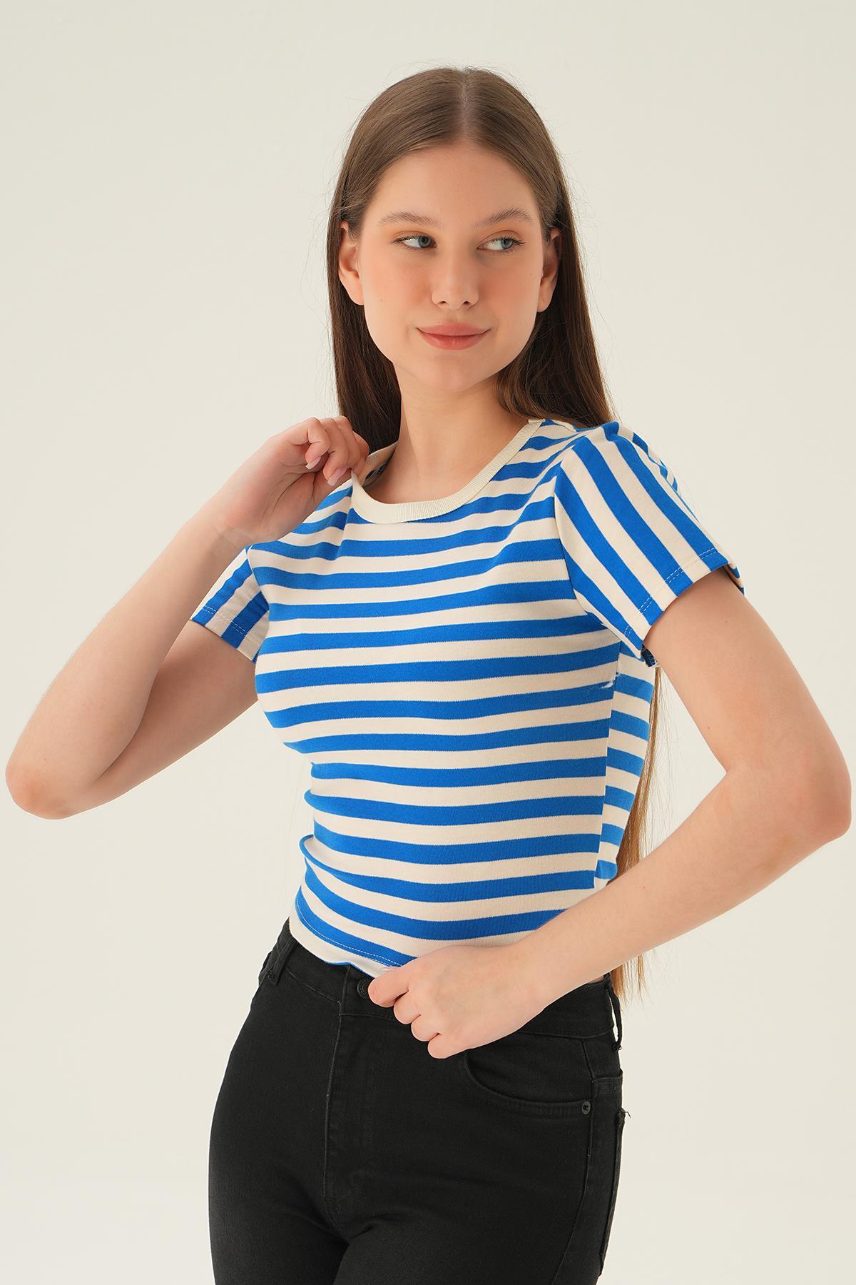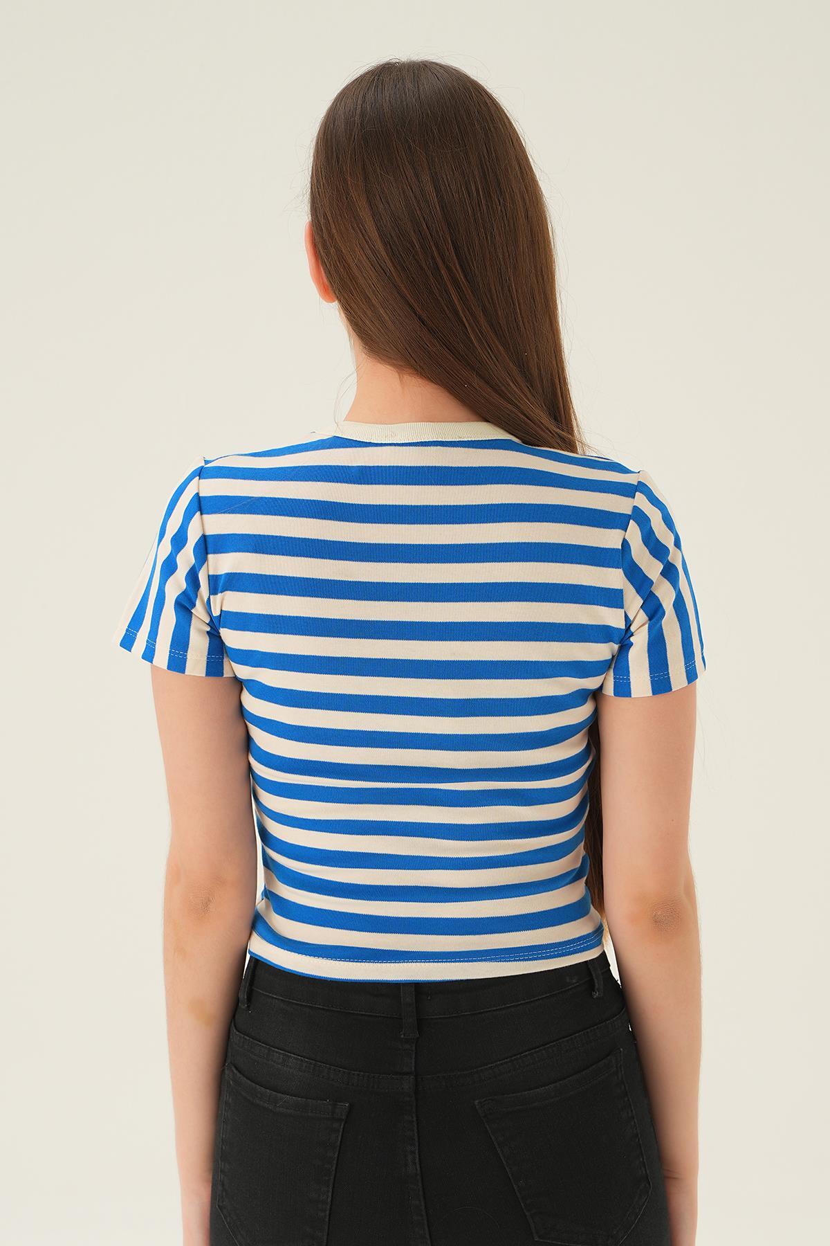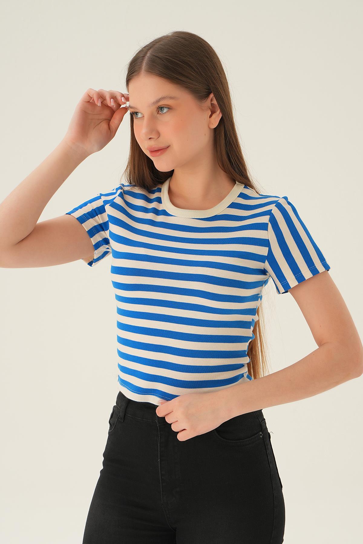 Saks Çizgili Kısa Tişört 3001
