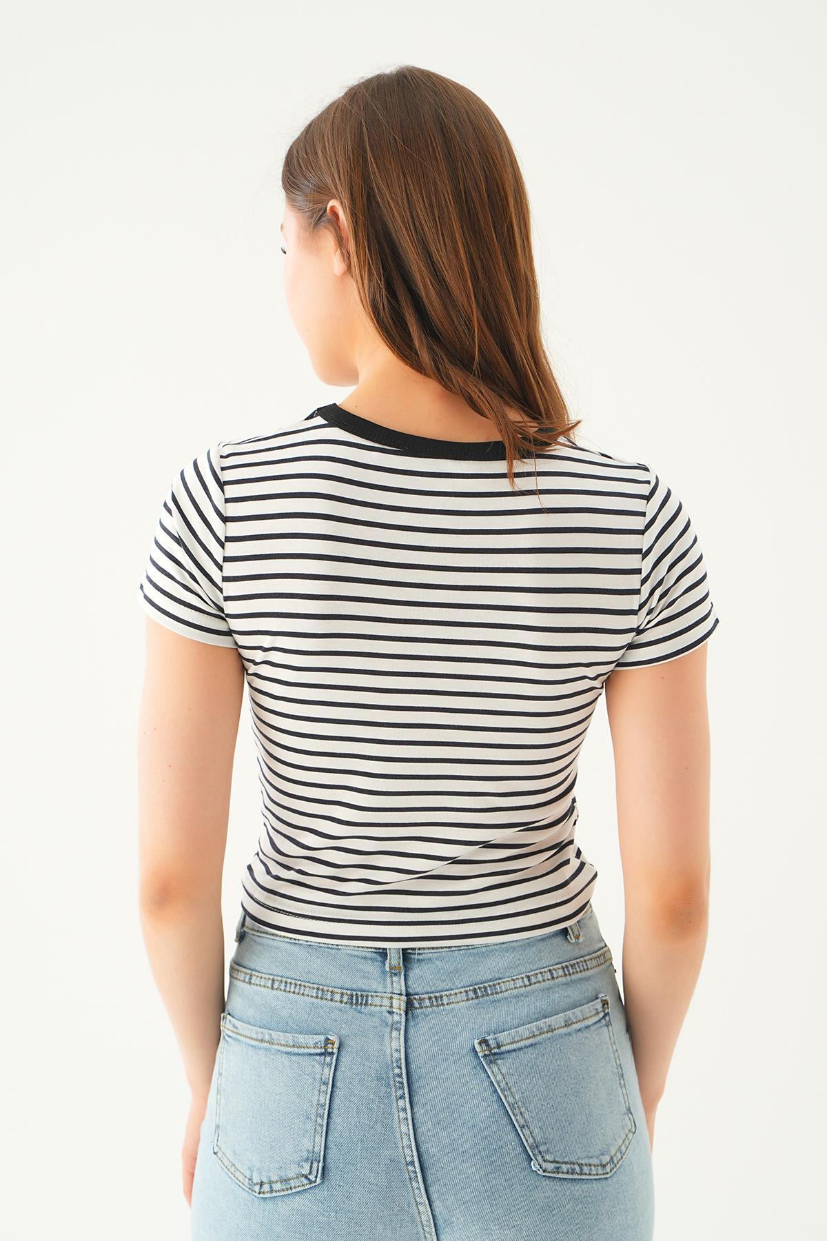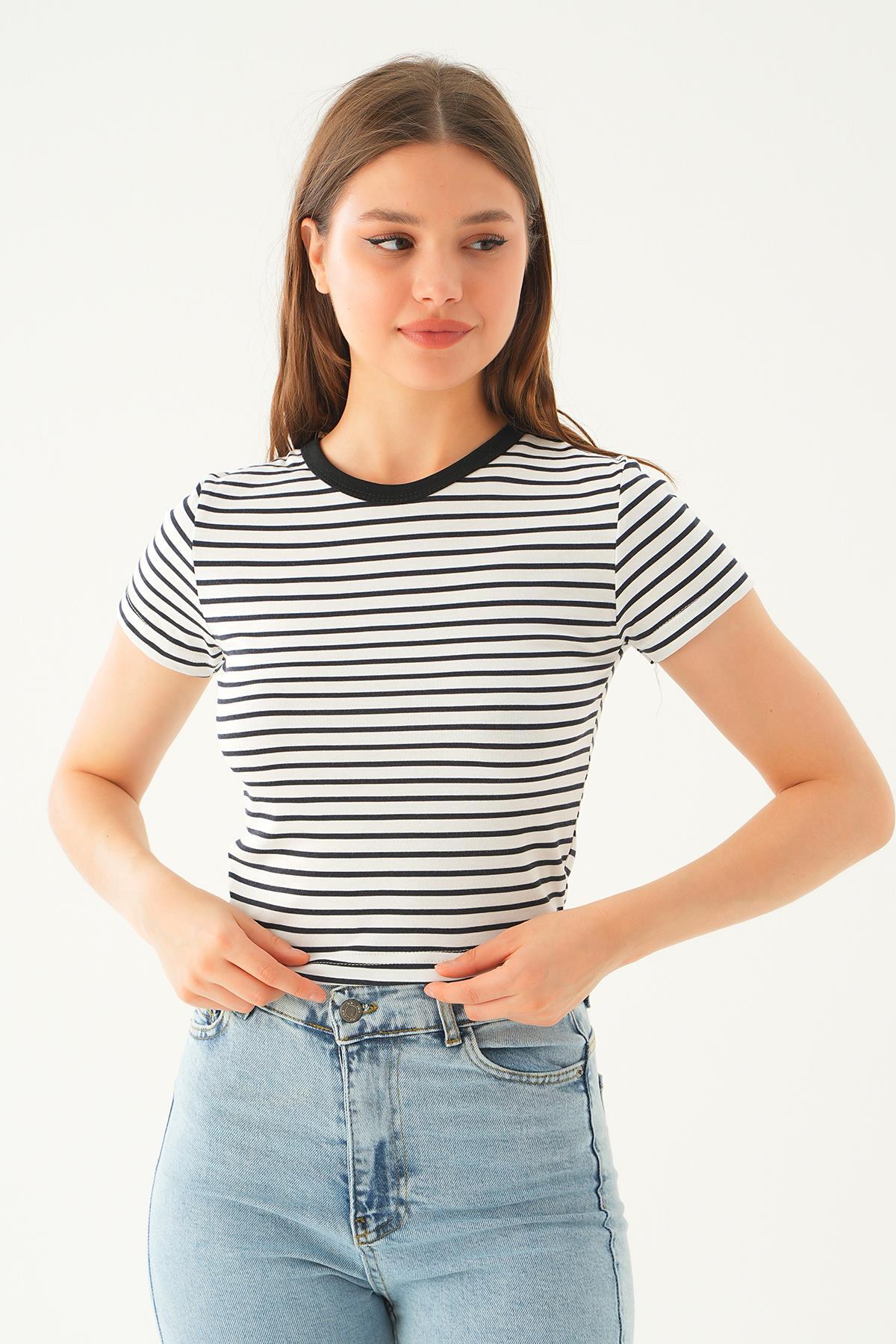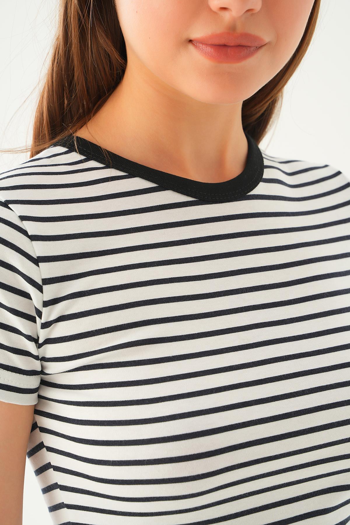 Siyah Çizgili Kısa Tişört 3001