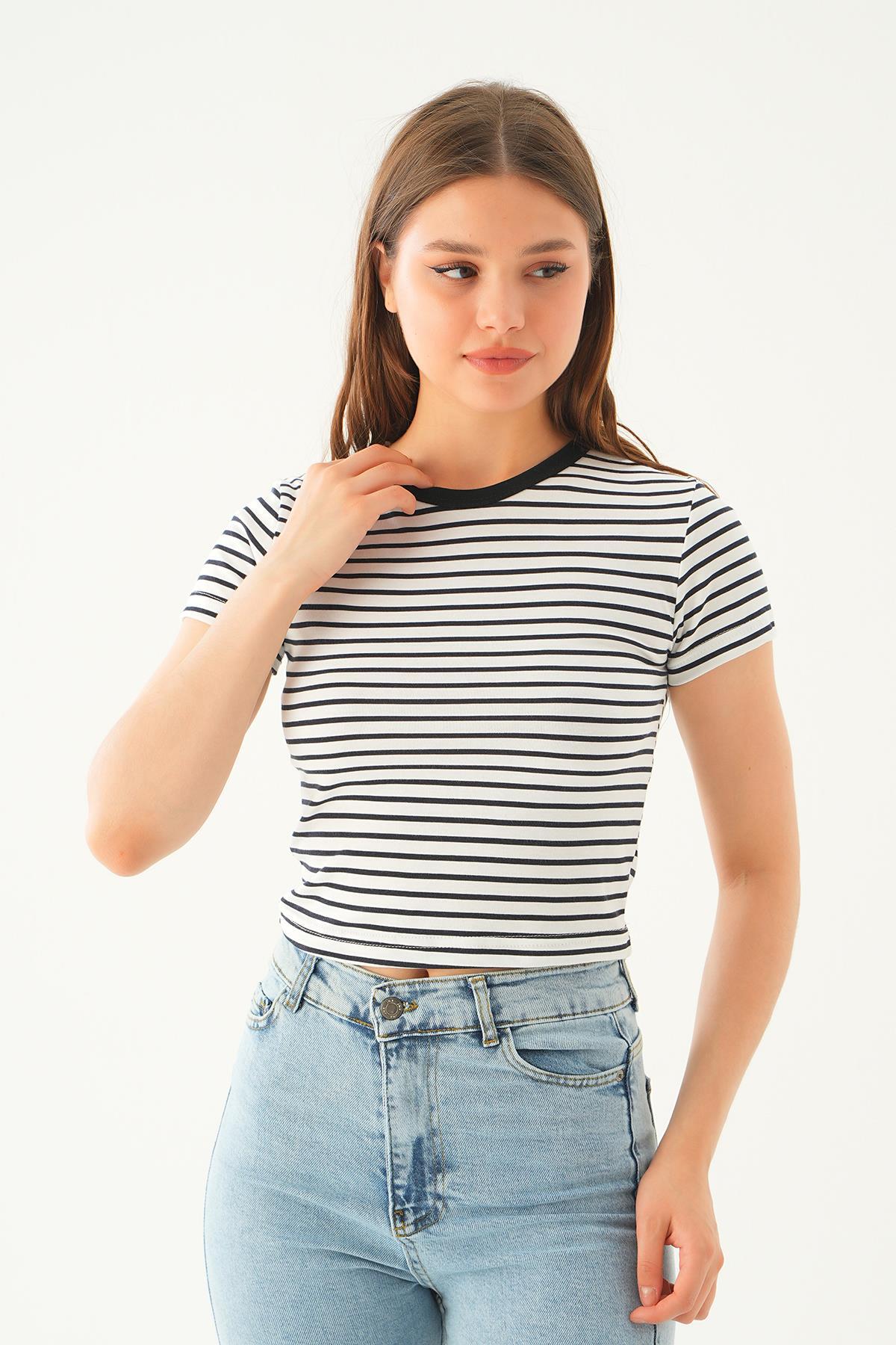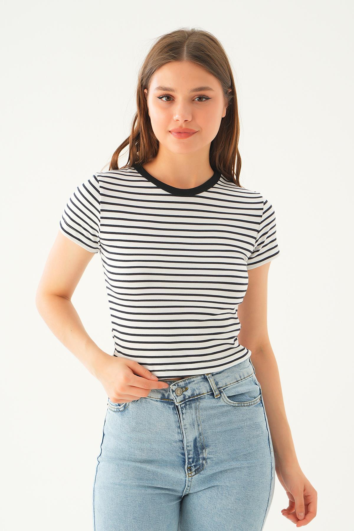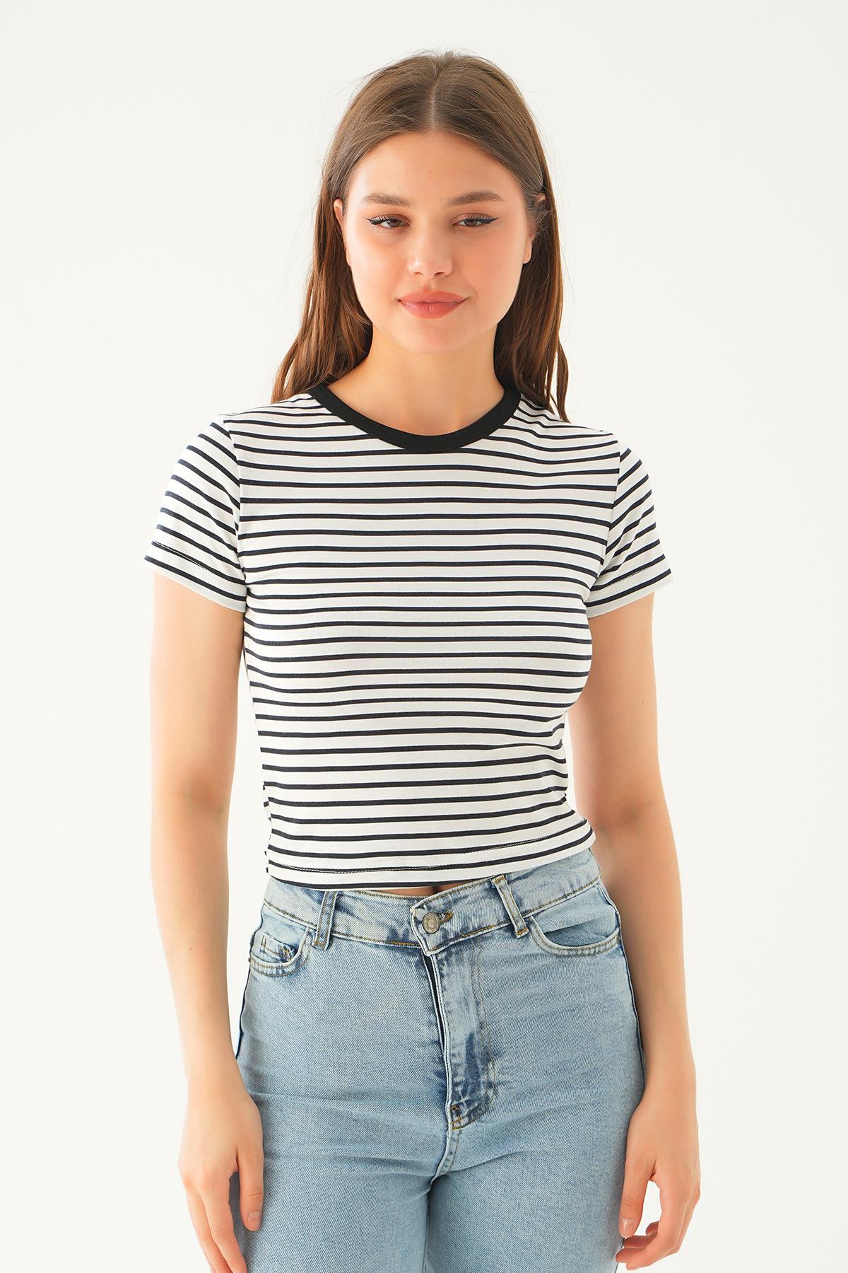 Siyah Çizgili Kısa Tişört 3001