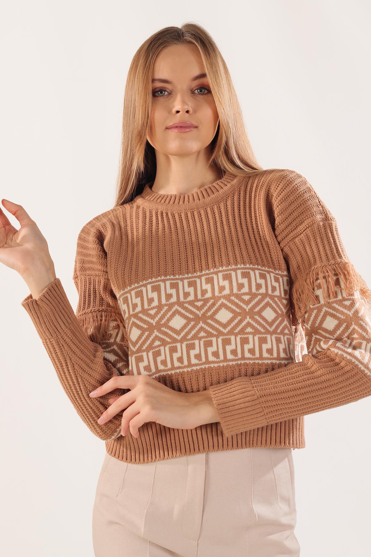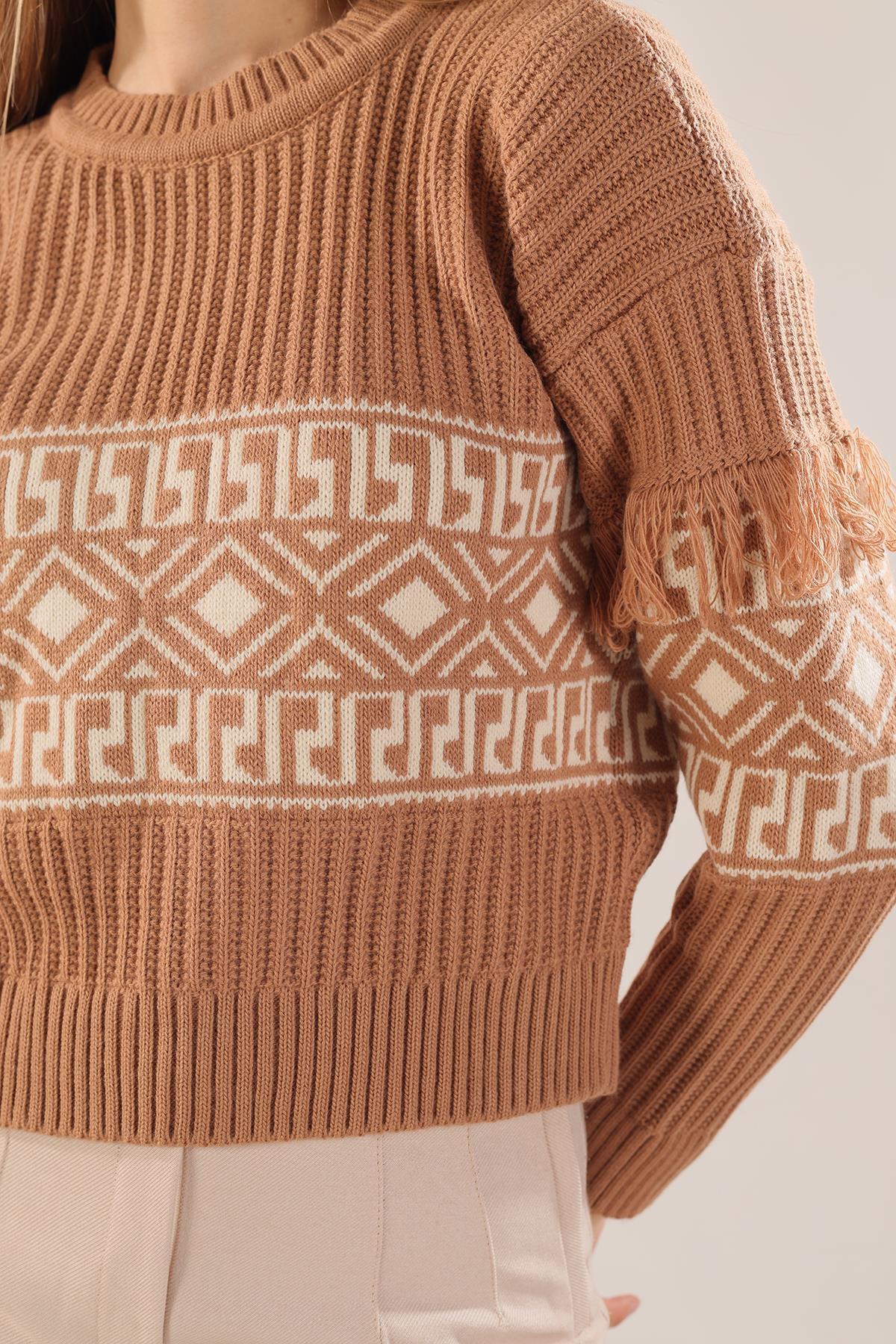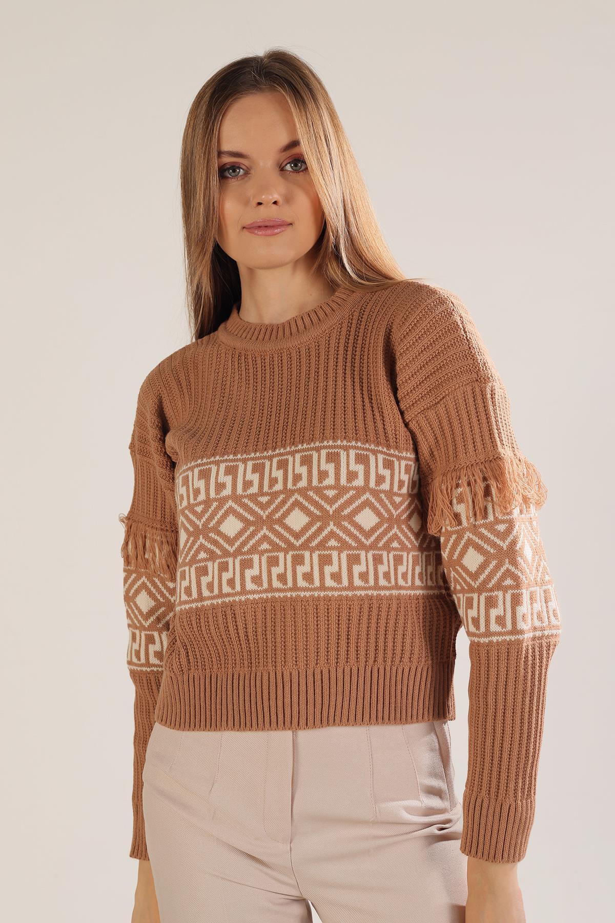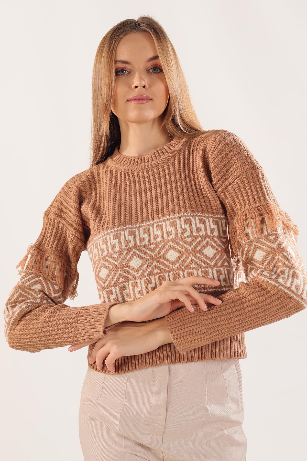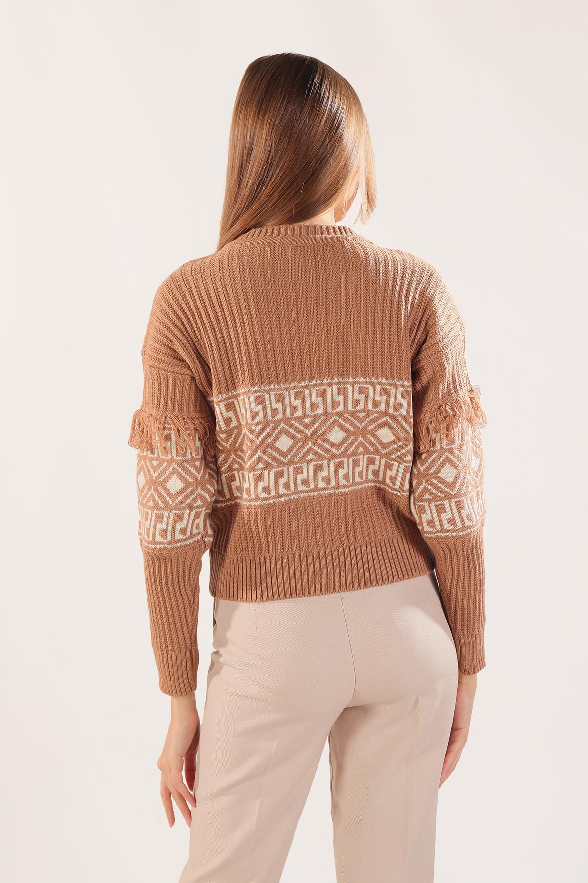 Bisküvi Kol Püskül Detay Desenli Kazak 3002