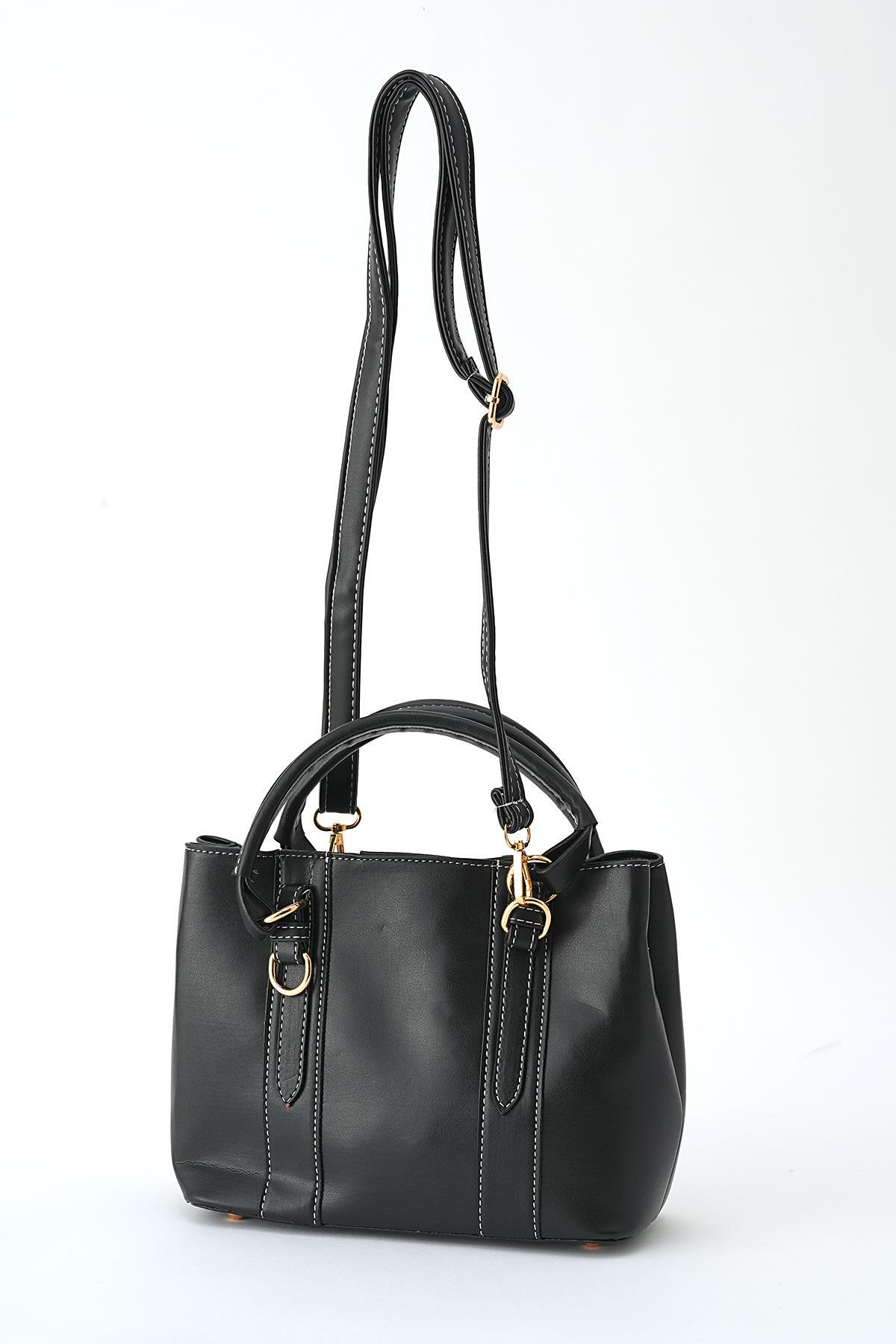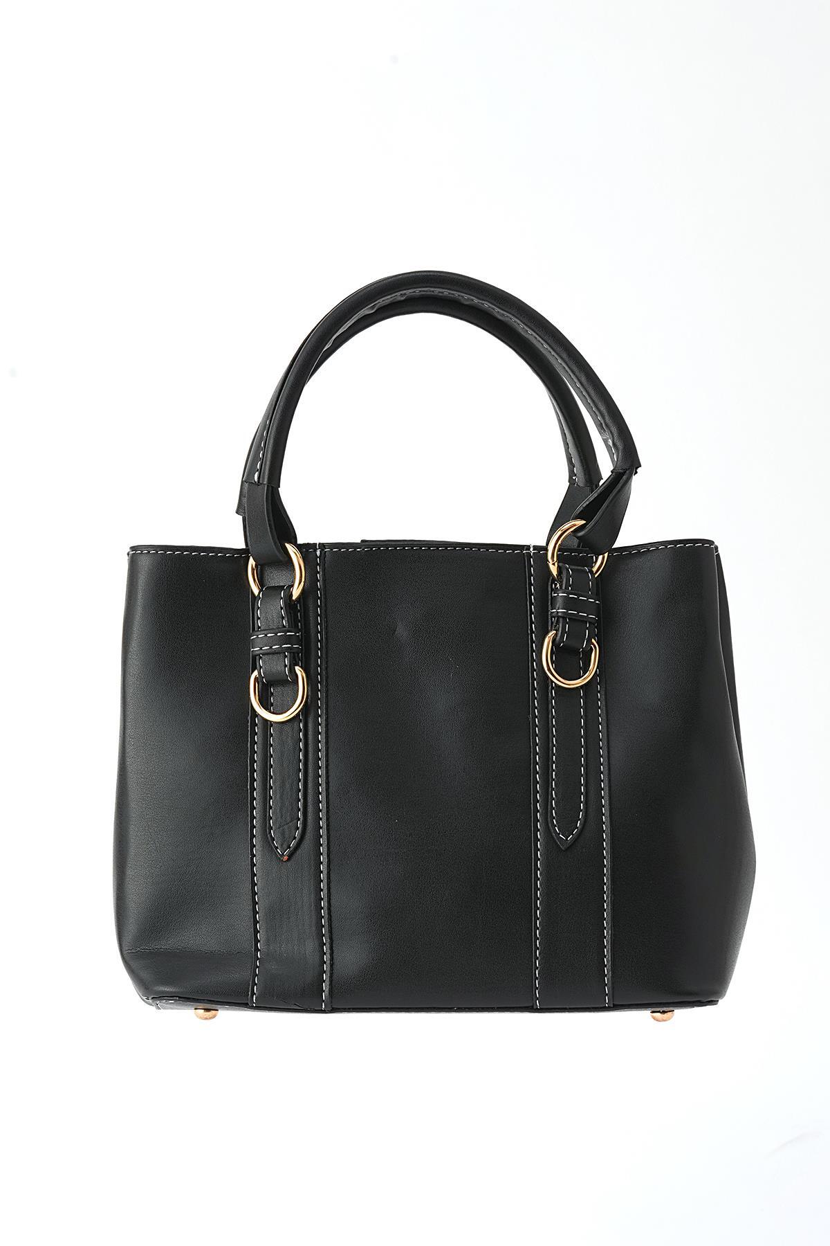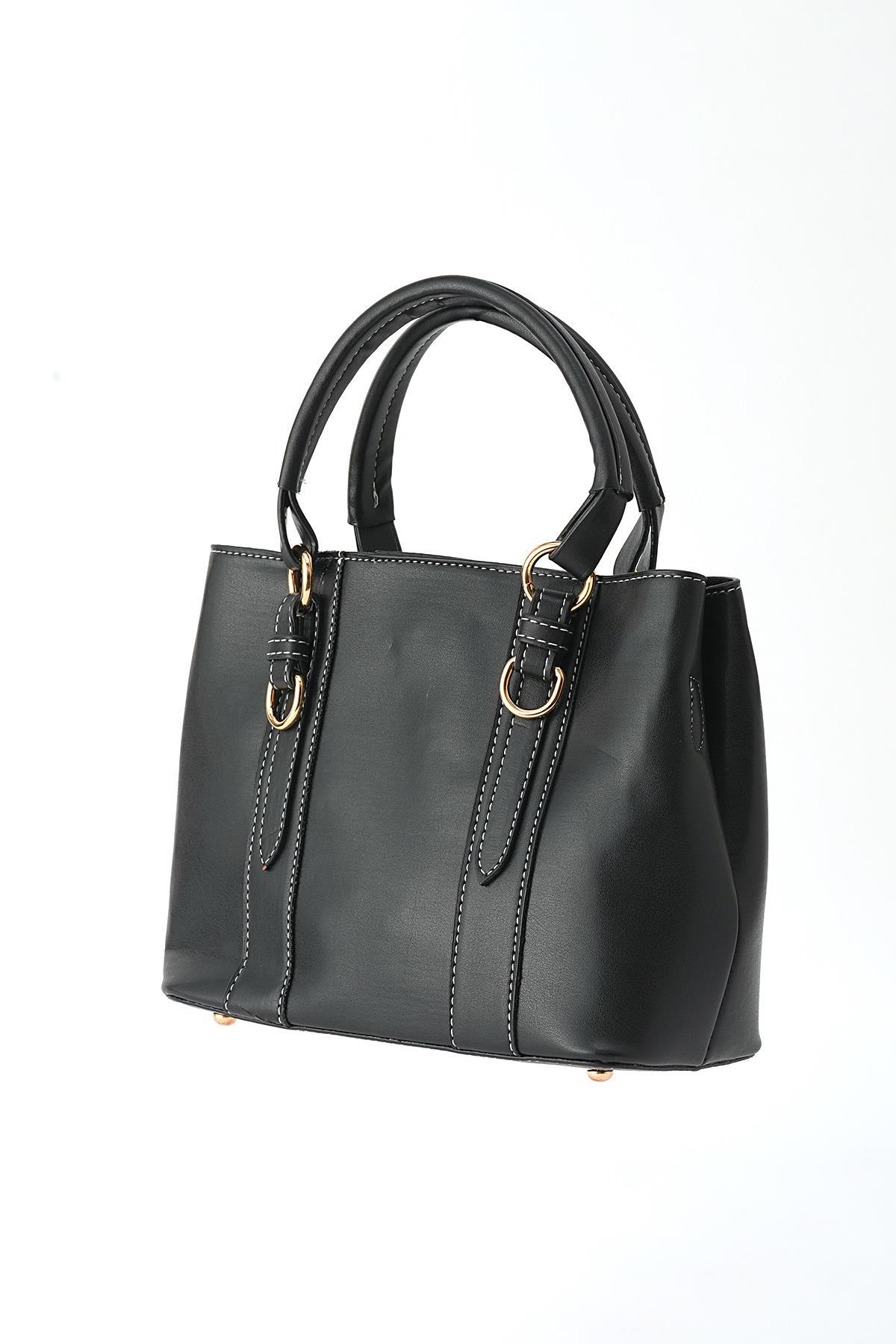 Siyah İki Tokalı El Çantası 3003