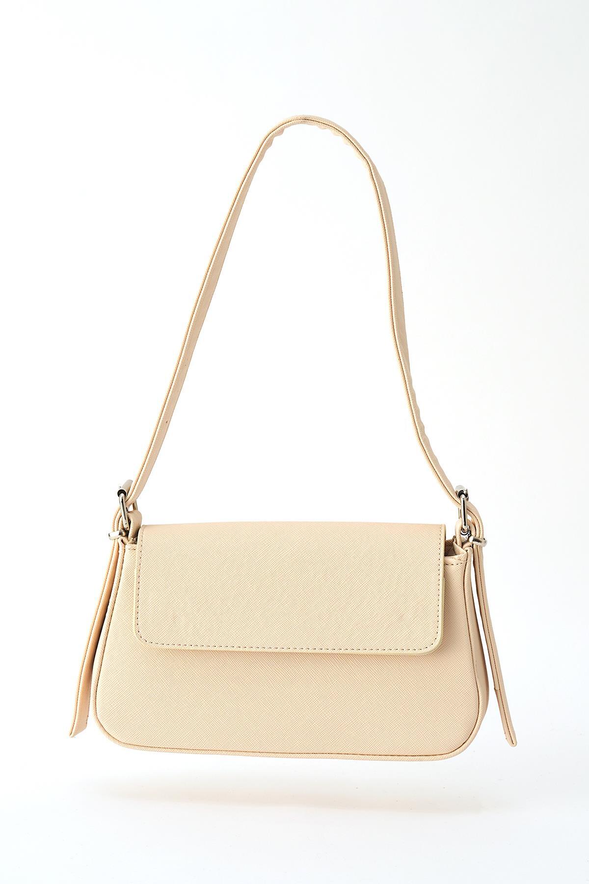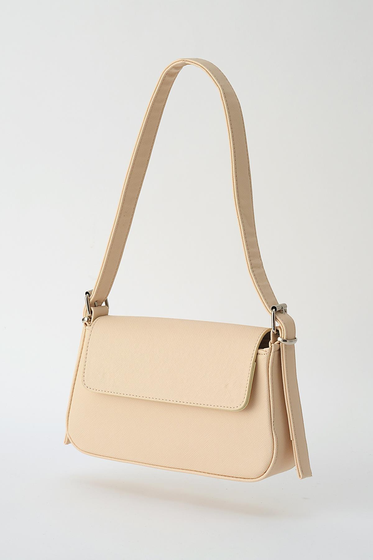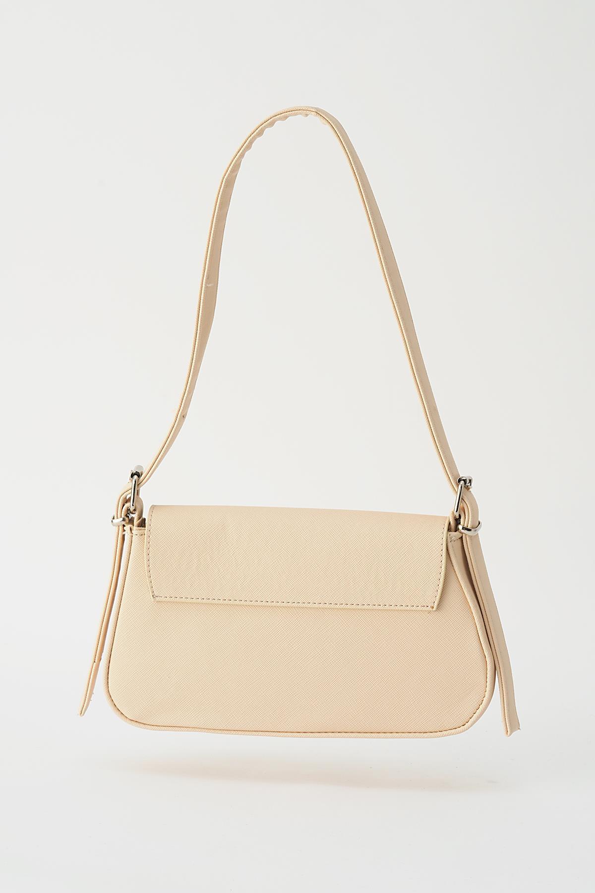 Krem Kapak Detay Omuz Çantası 3005