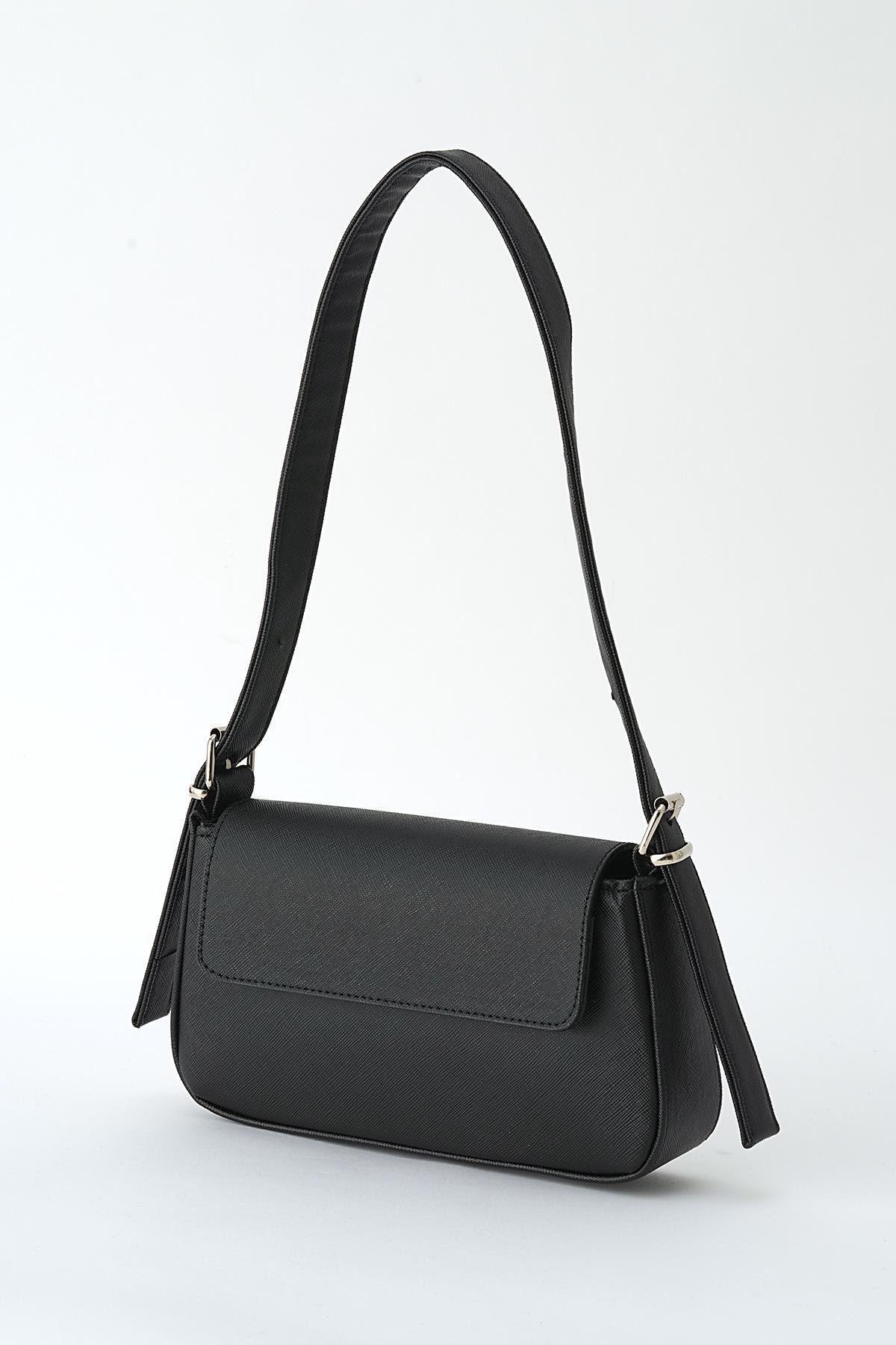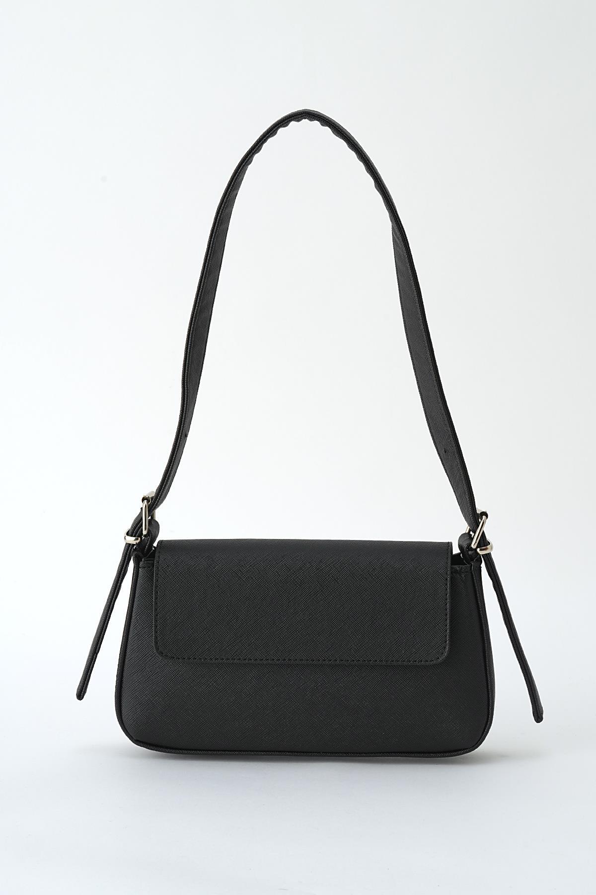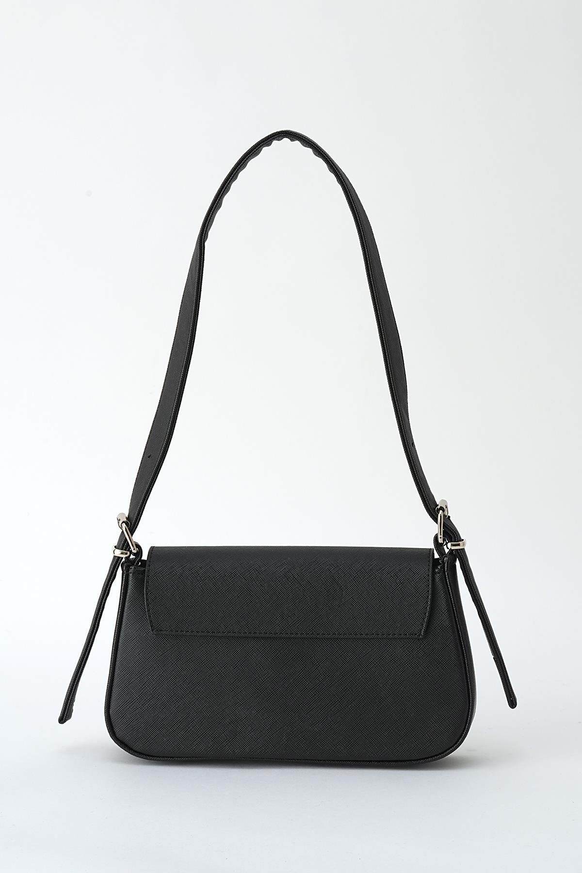 Siyah Kapak Detay Omuz Çantası 3005