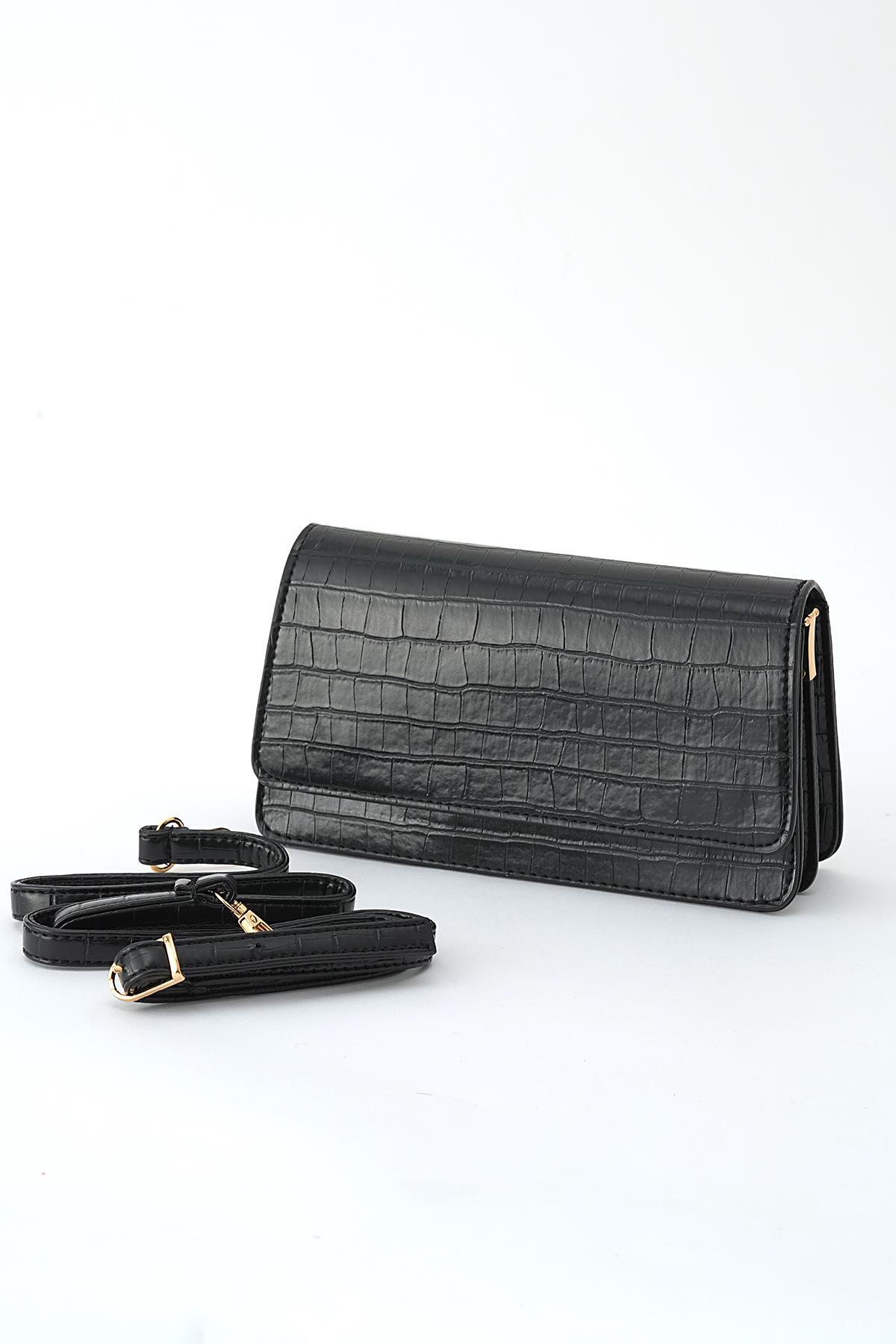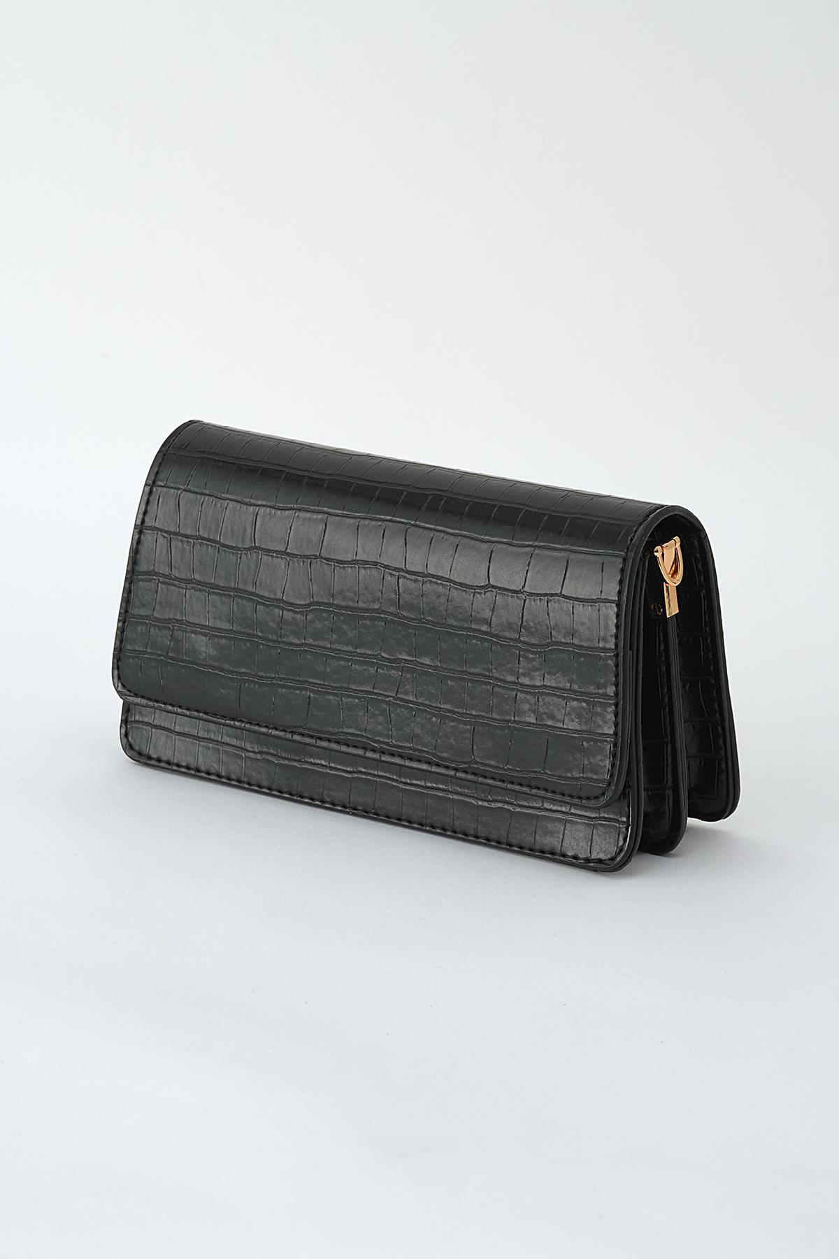 Siyah Kroko Kapak Detay Croco El Çantası 3006