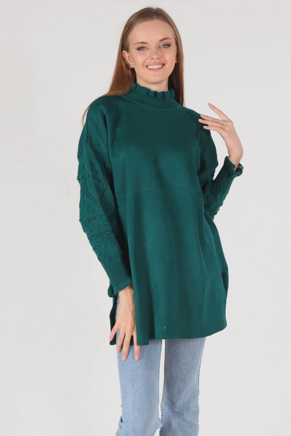 Nefti Yaka Fırfır Kol İşlemeli Kazak 3008