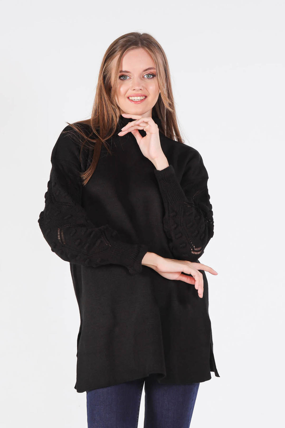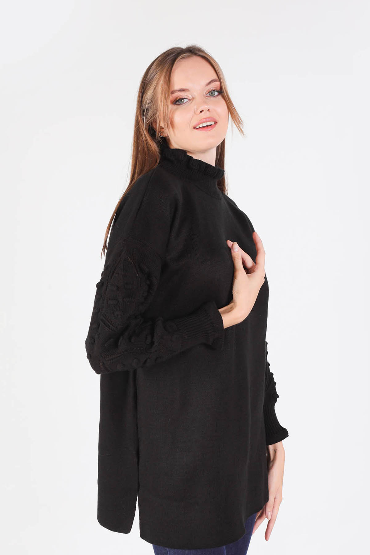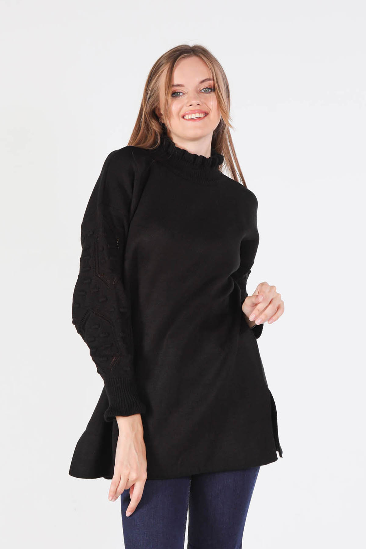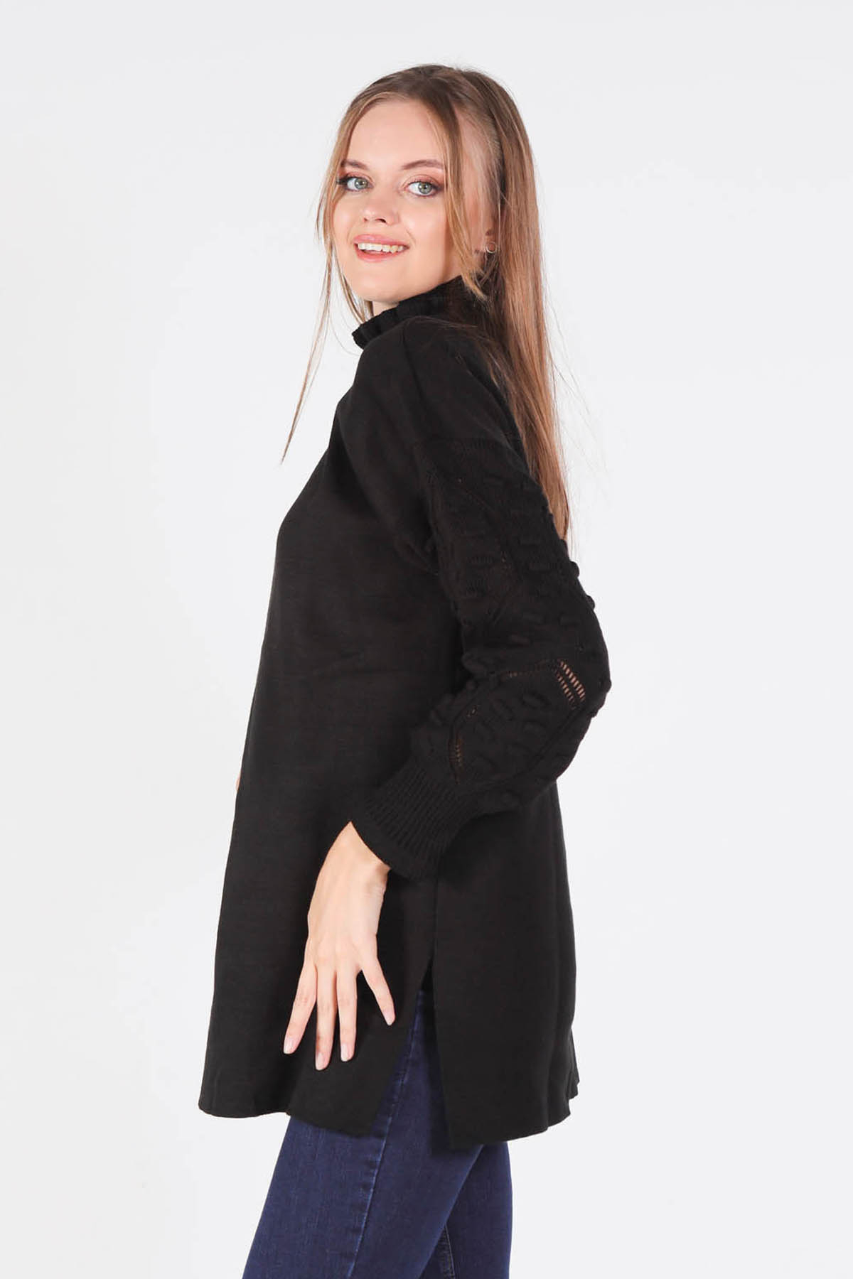 Siyah Yaka Fırfır Kol İşlemeli Kazak 3008