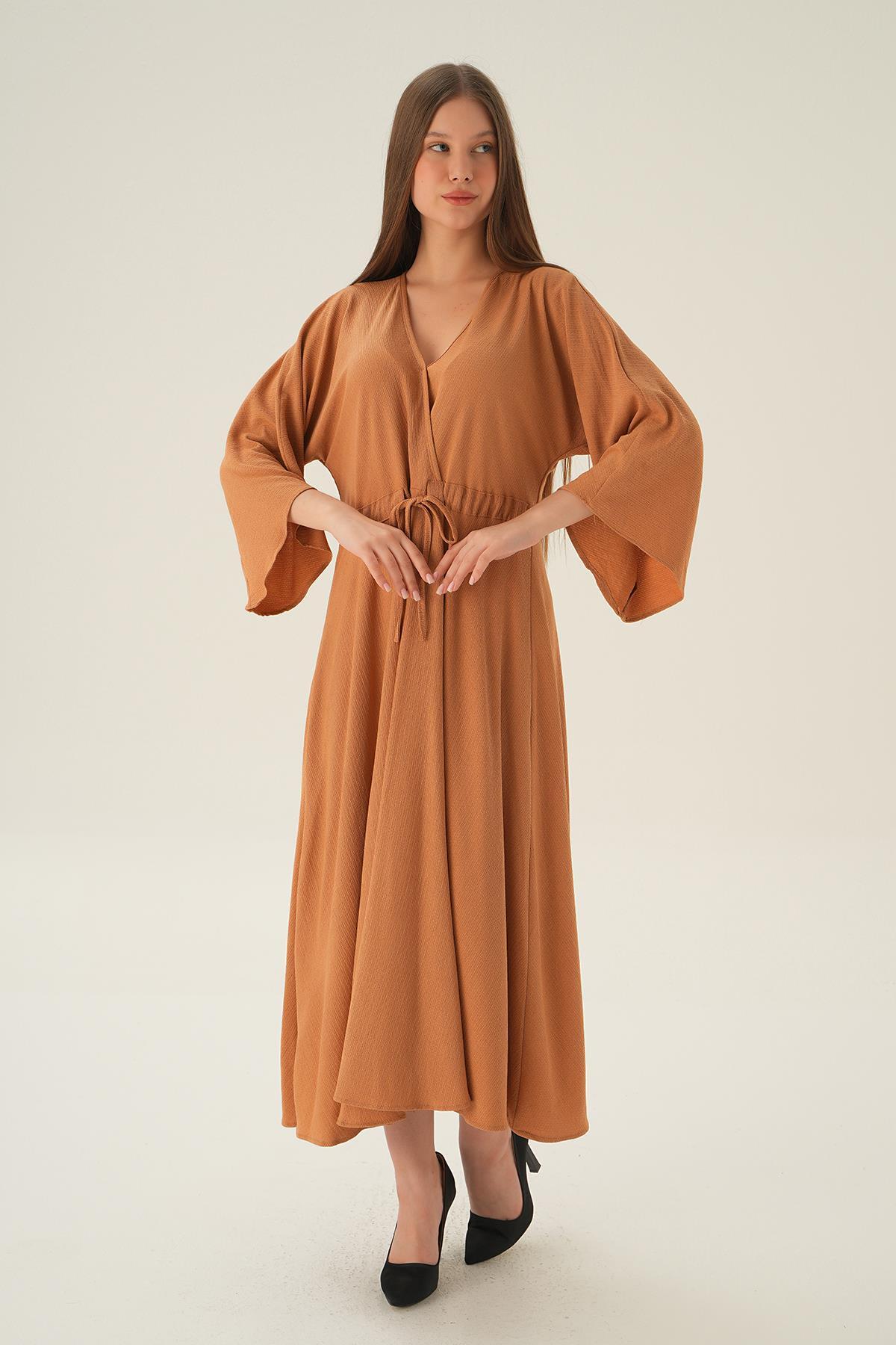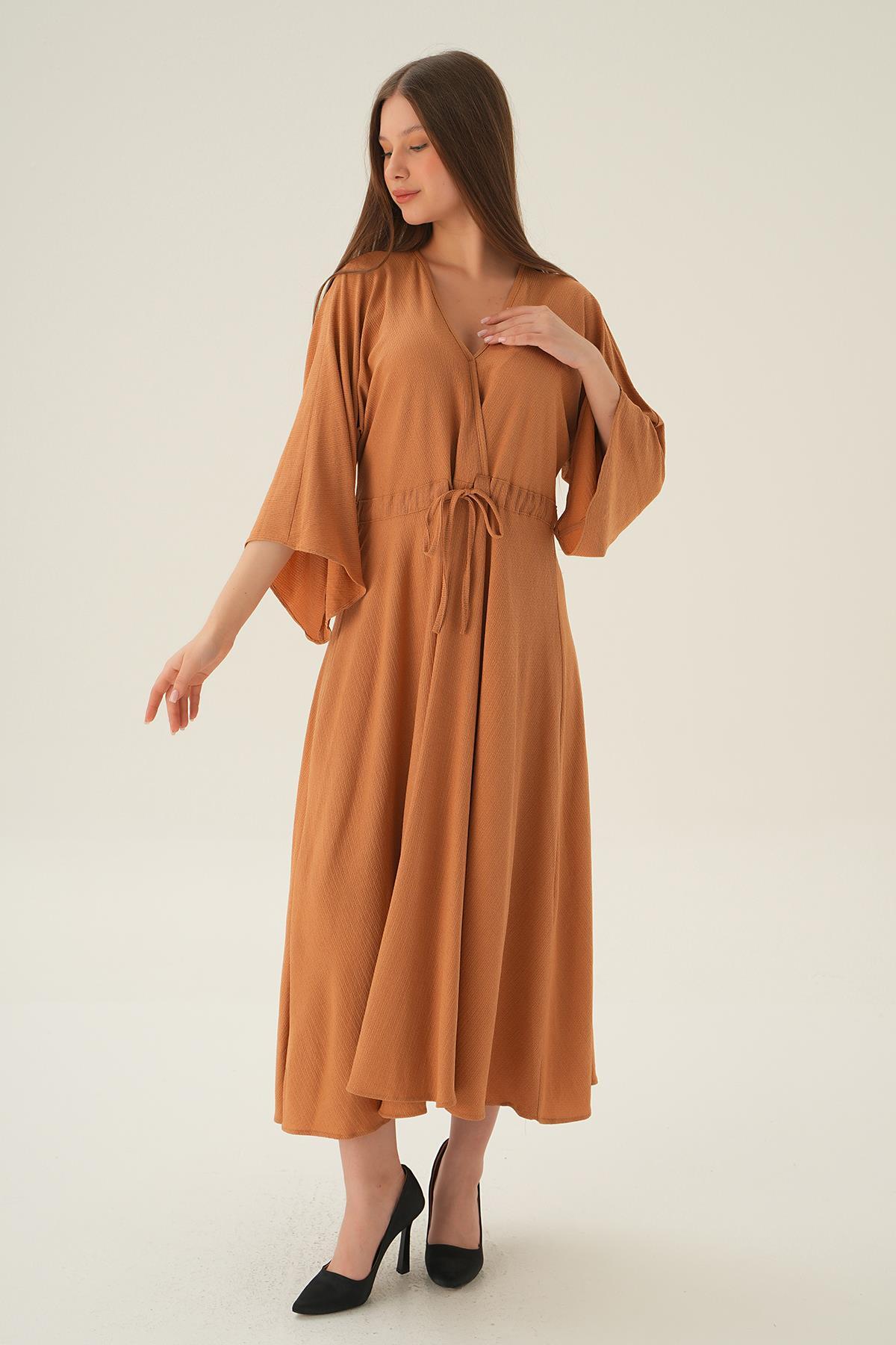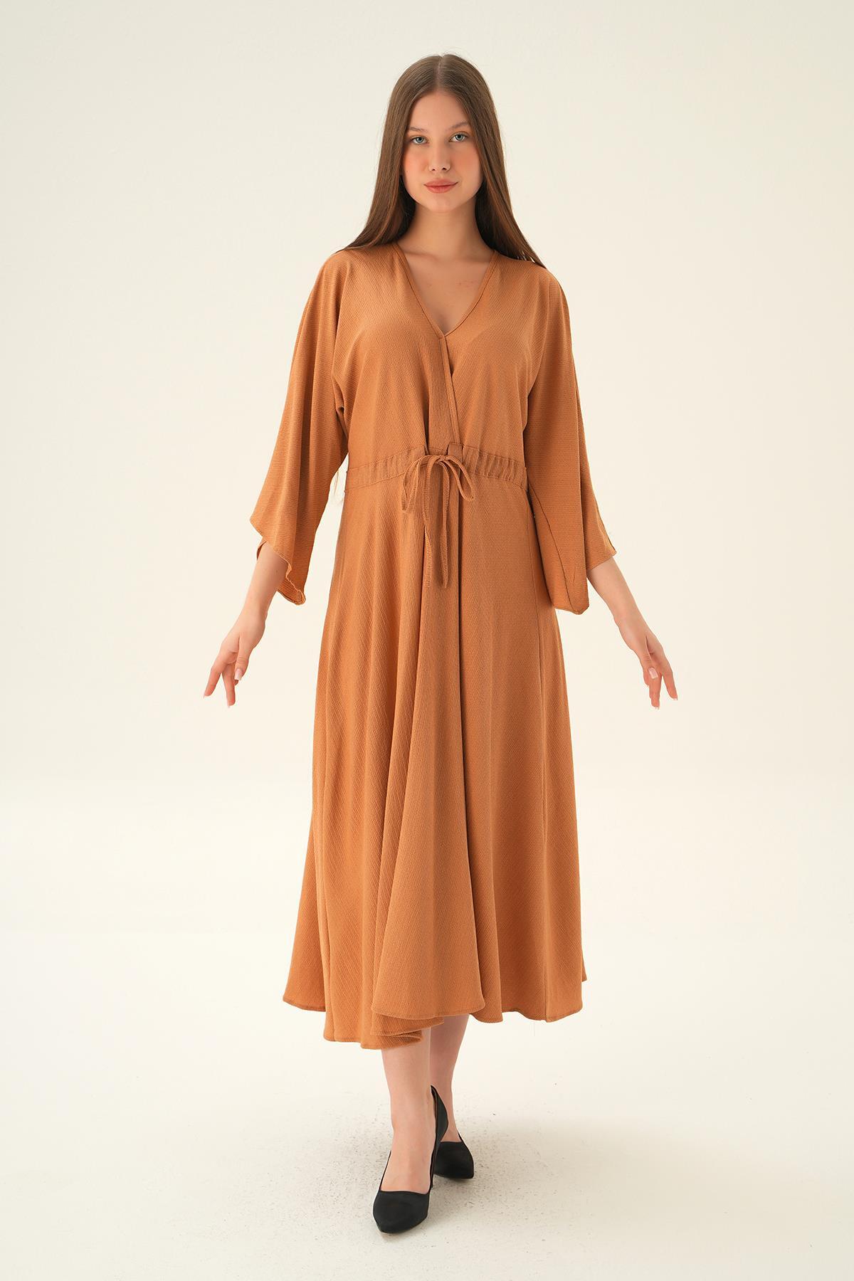 Kahve Desenli Bel Bağlama Elbise 2808 - RAYS Kahve Desenli Bel Bağlama Elbise 2808 - RAYS (1)