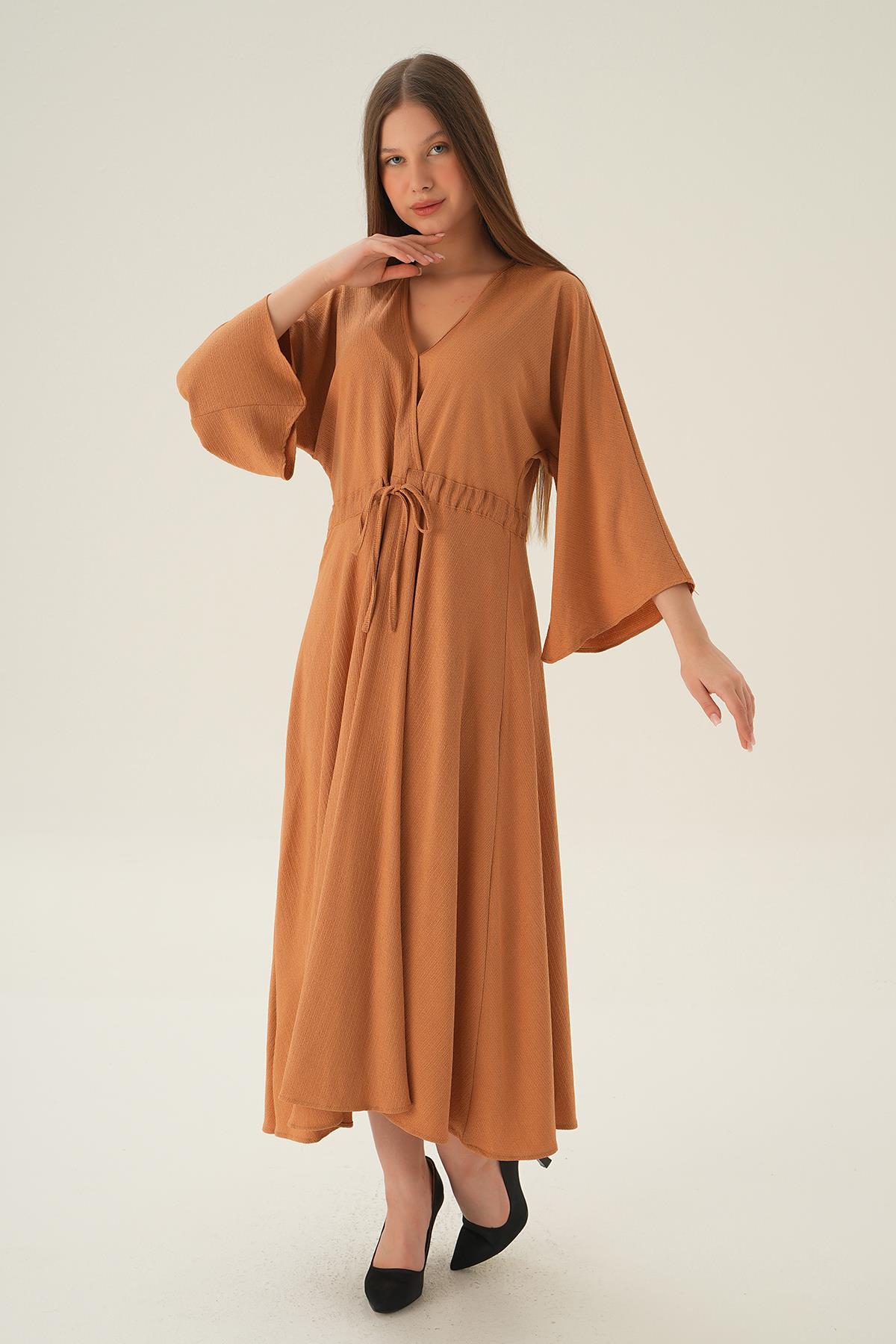 Kahve Düğmeli Kat Kat Elbise 2817 - RAYS Kahve Düğmeli Kat Kat Elbise 2817 - RAYS (1)
