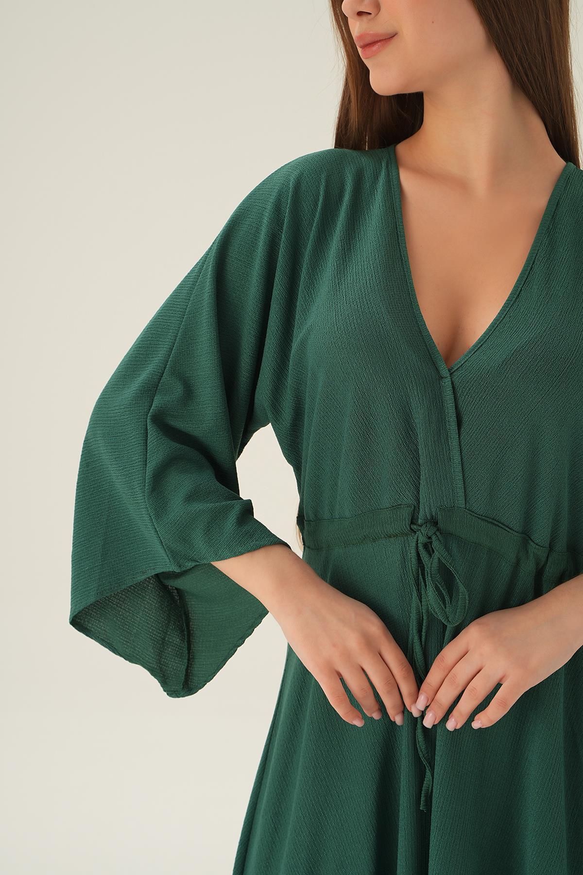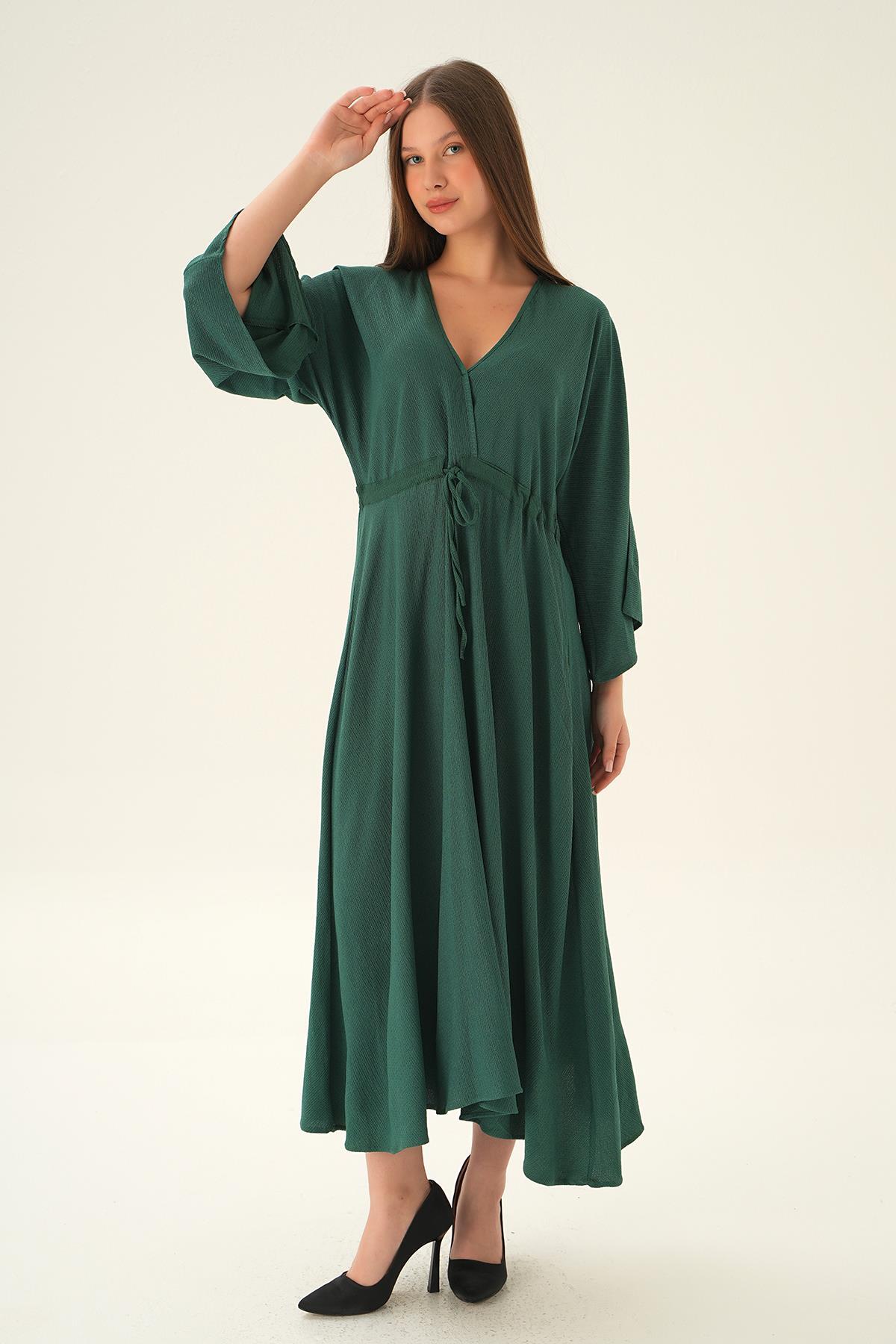 Zümrüt Yarasa Kol Elbise 3009