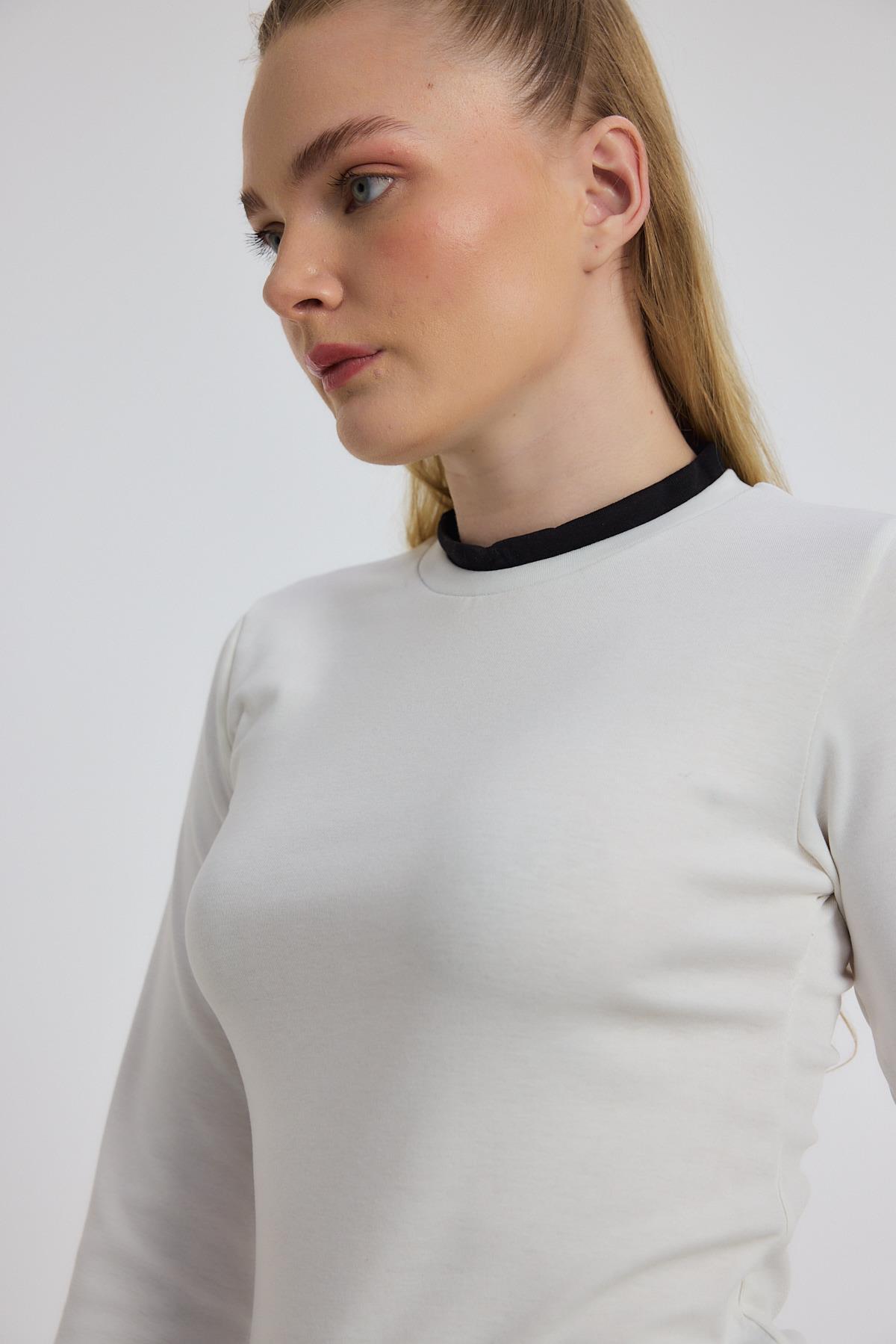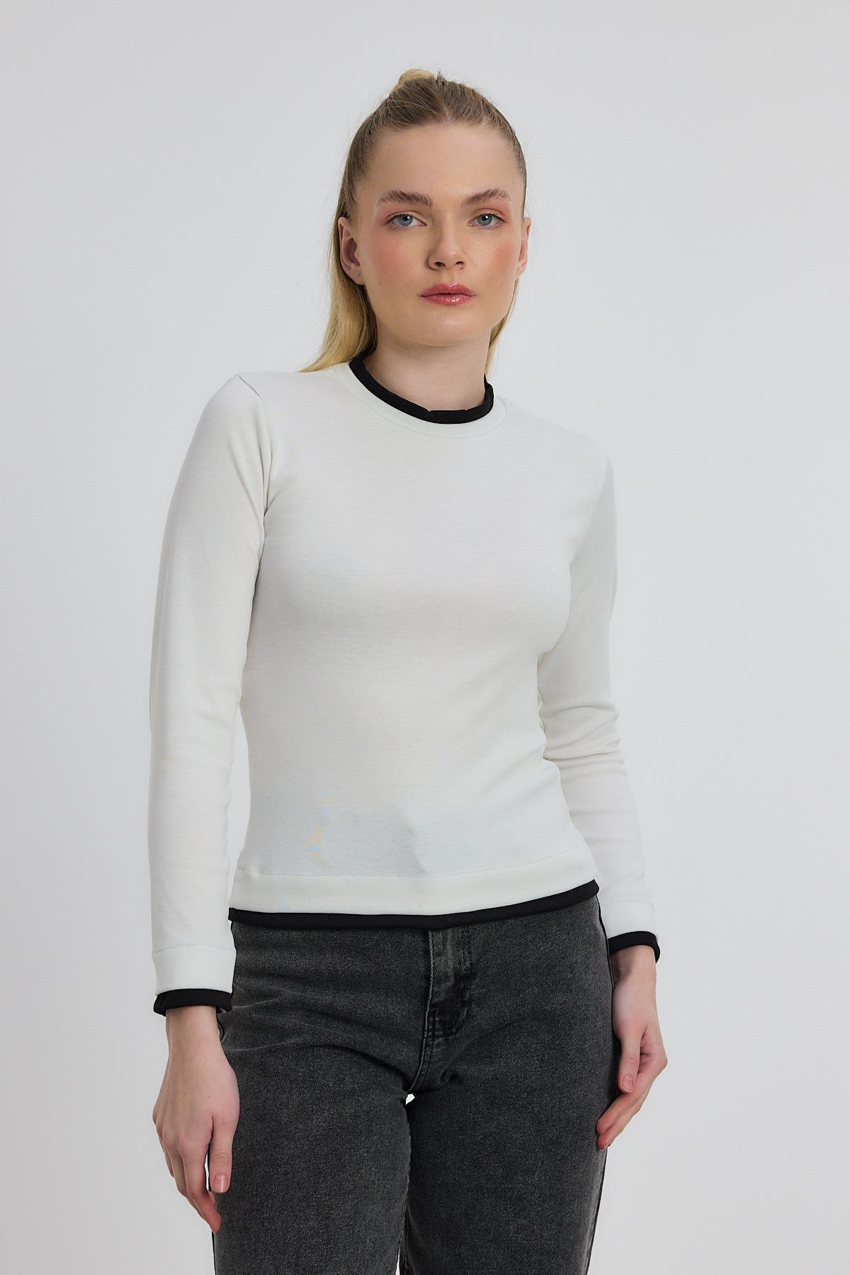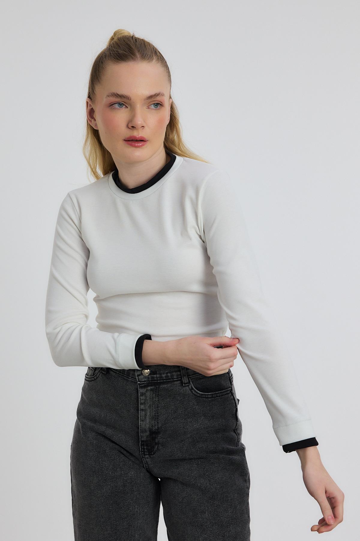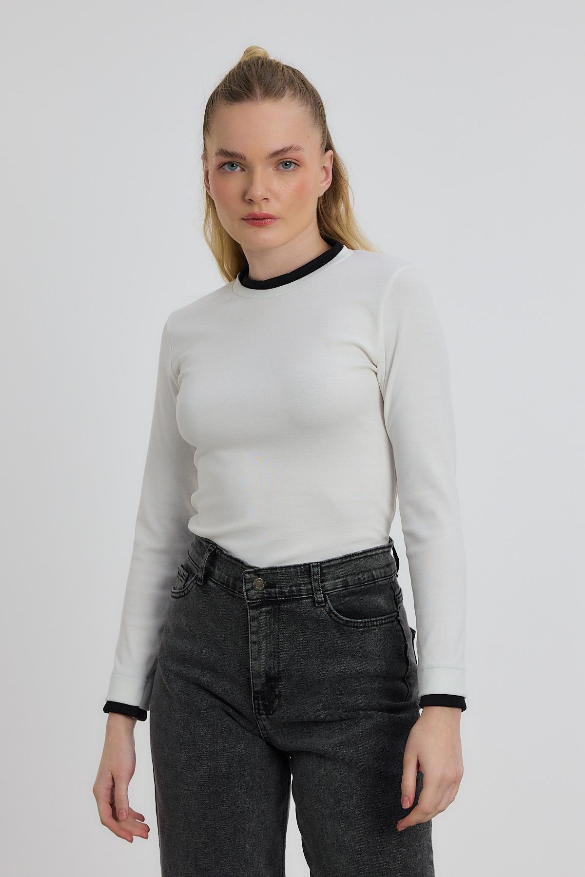 Ekru Ribana Detay Uzun Kollu Bluz 3011