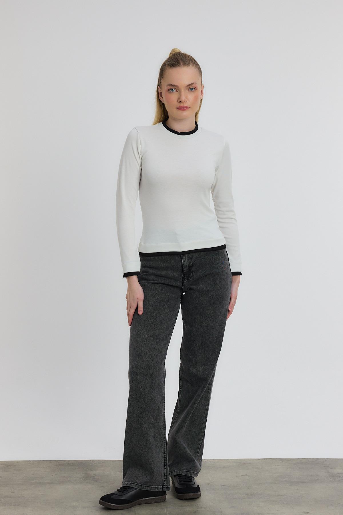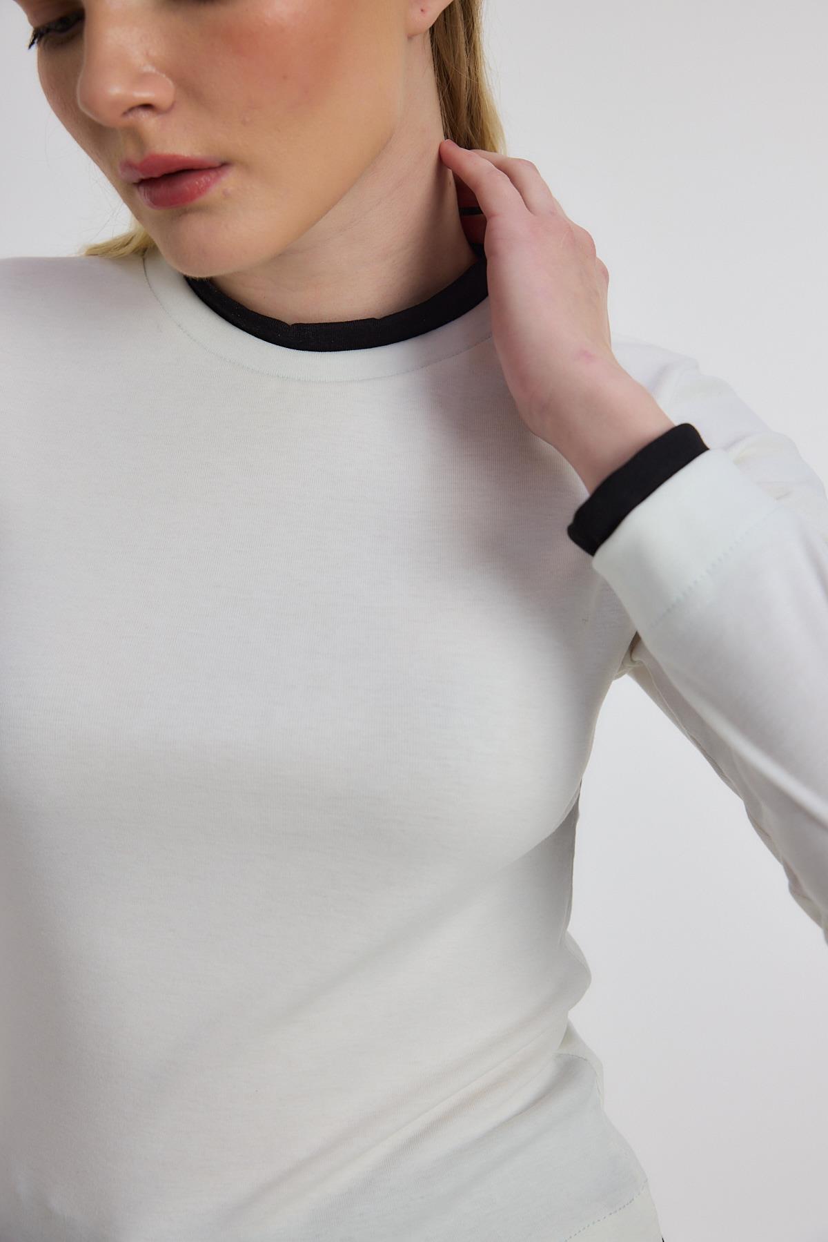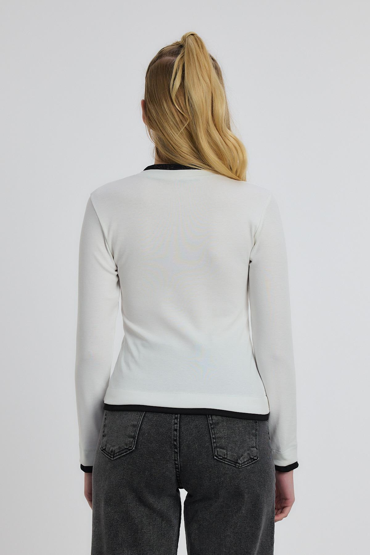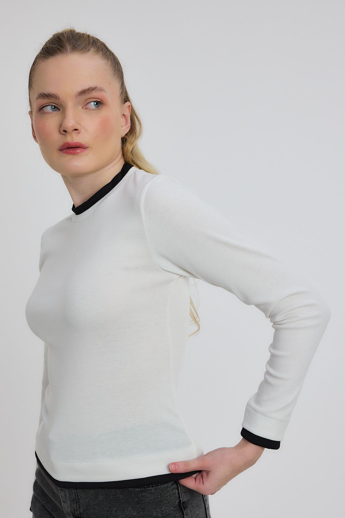 Ekru Ribana Detay Uzun Kollu Bluz 3011