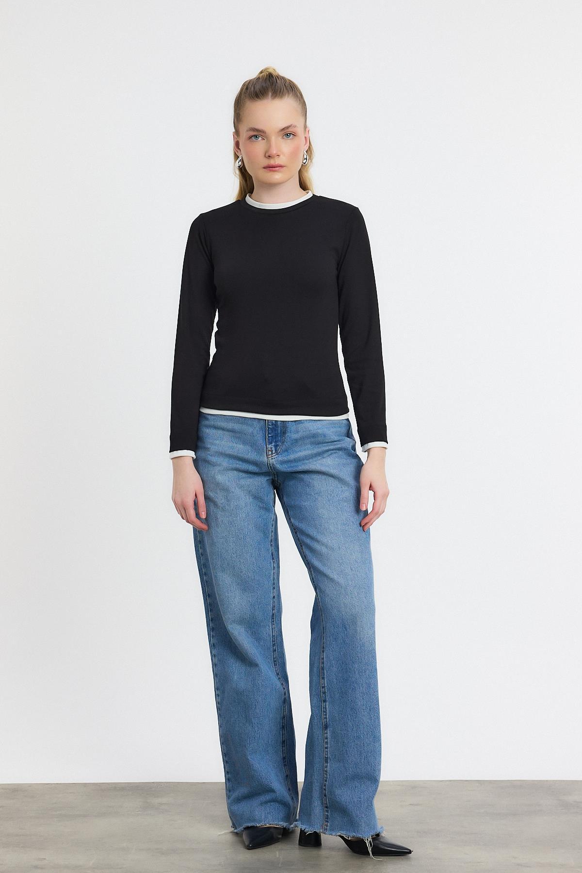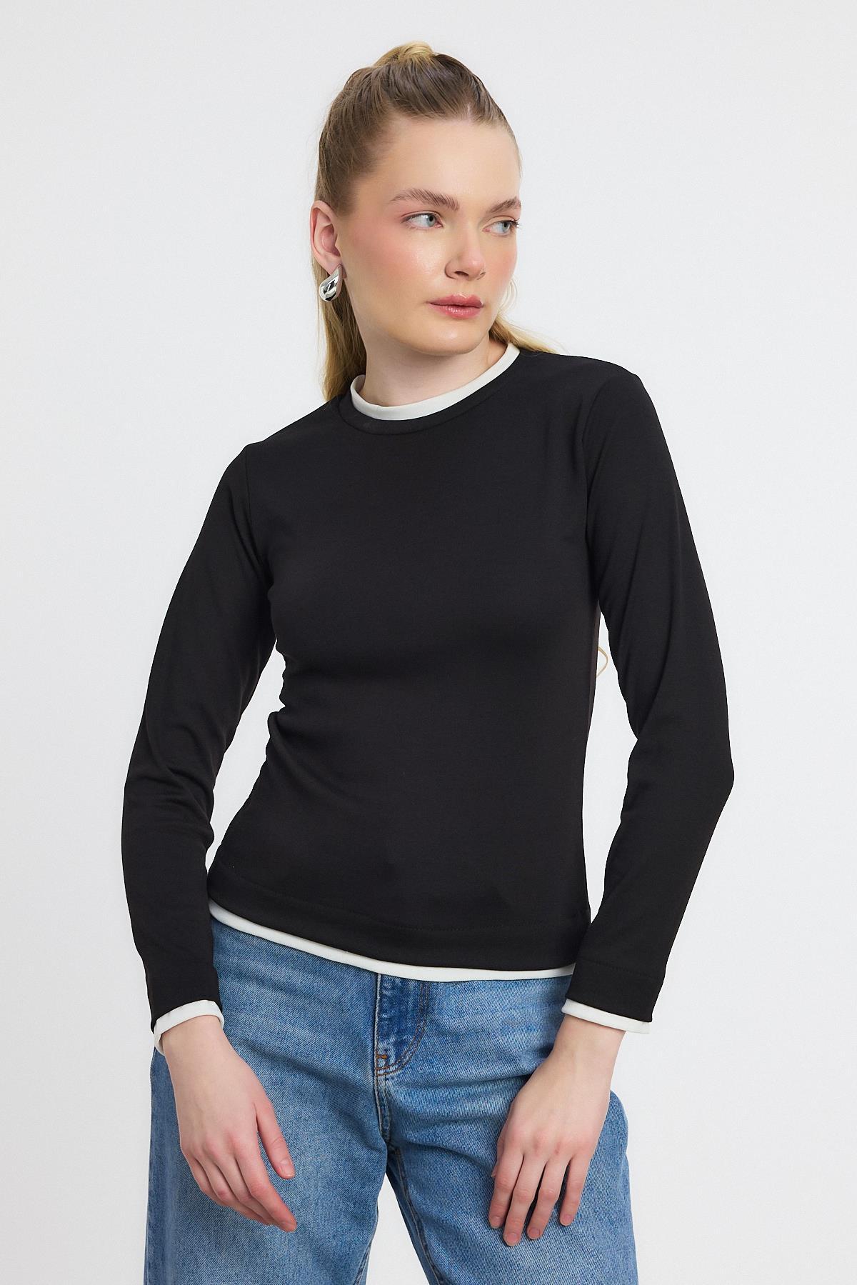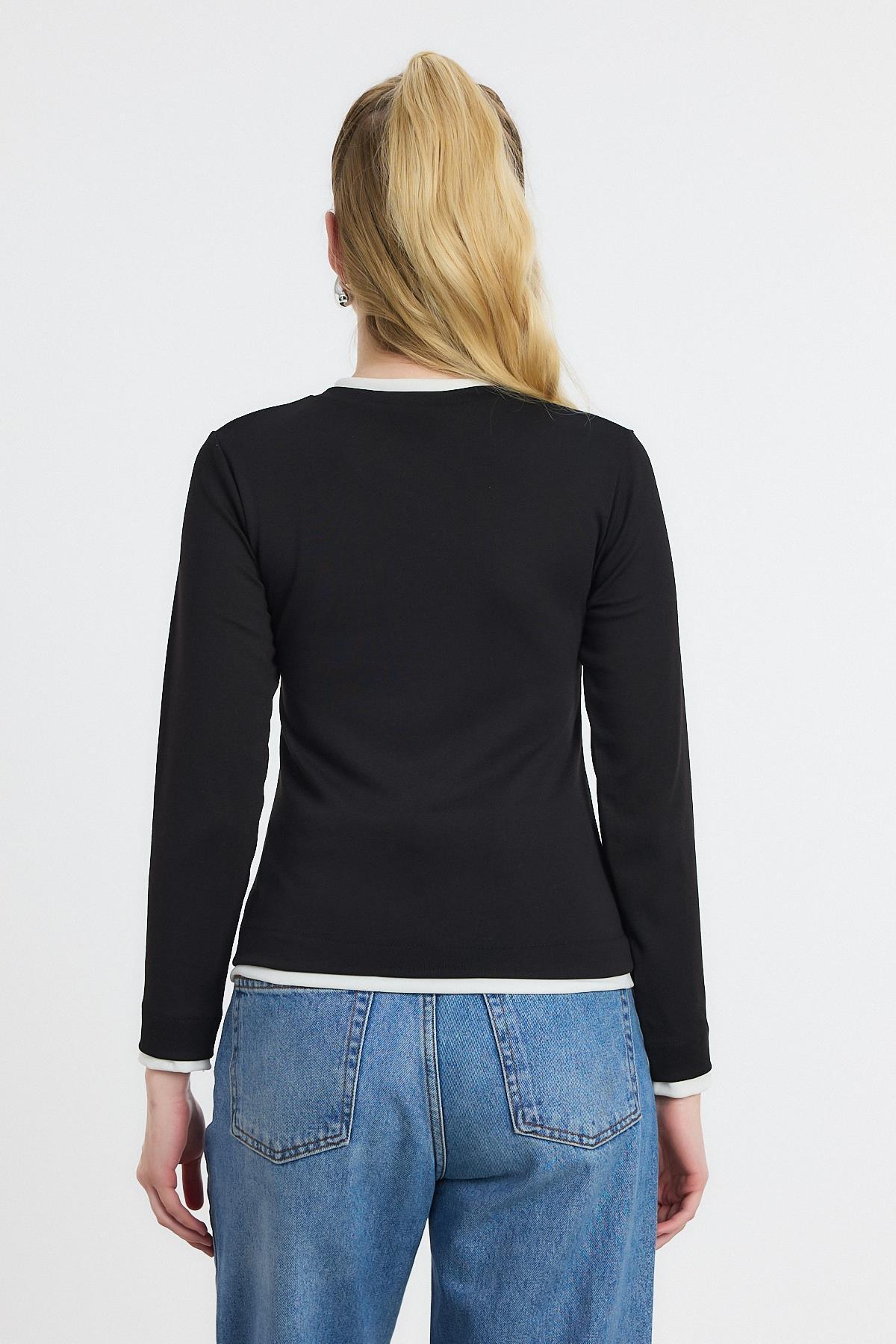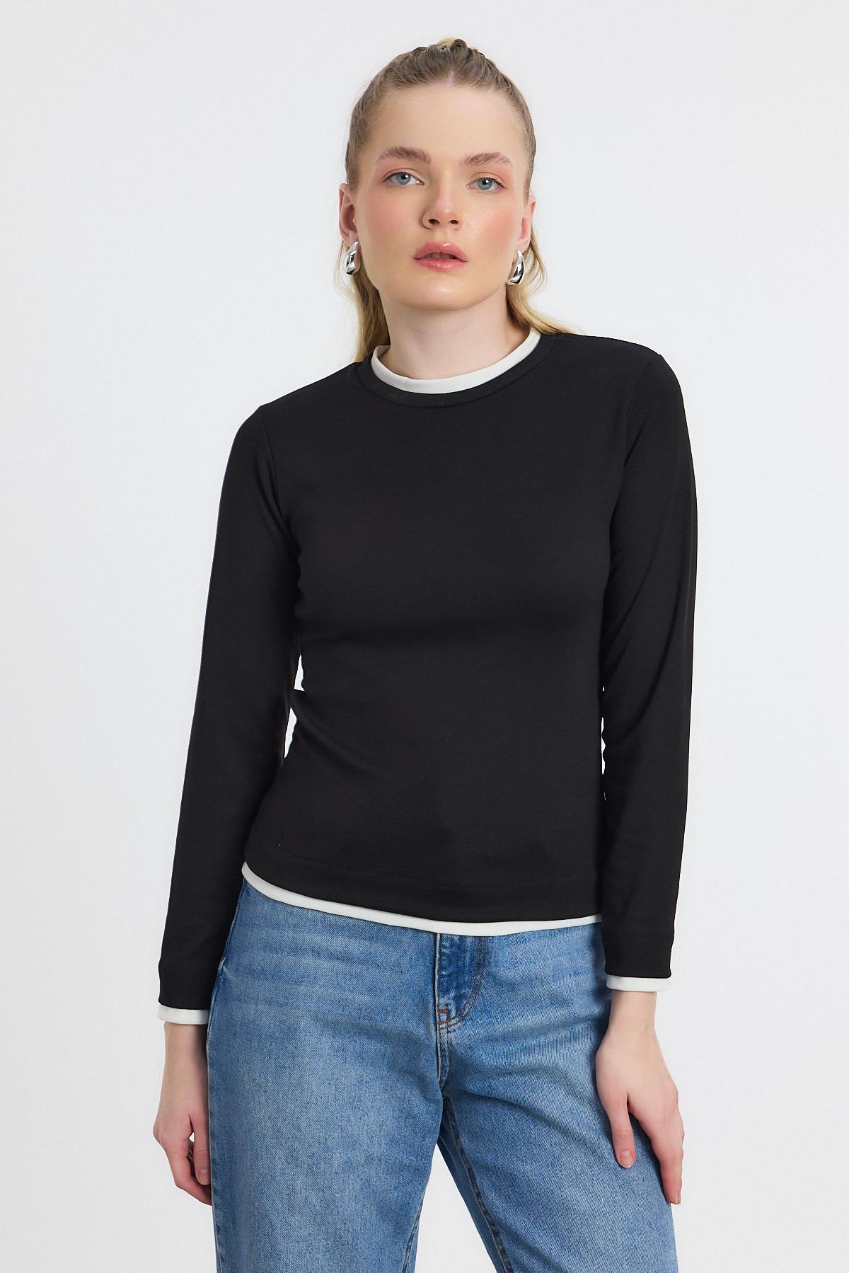 Siyah Ribana Detay Uzun Kollu Bluz 3011