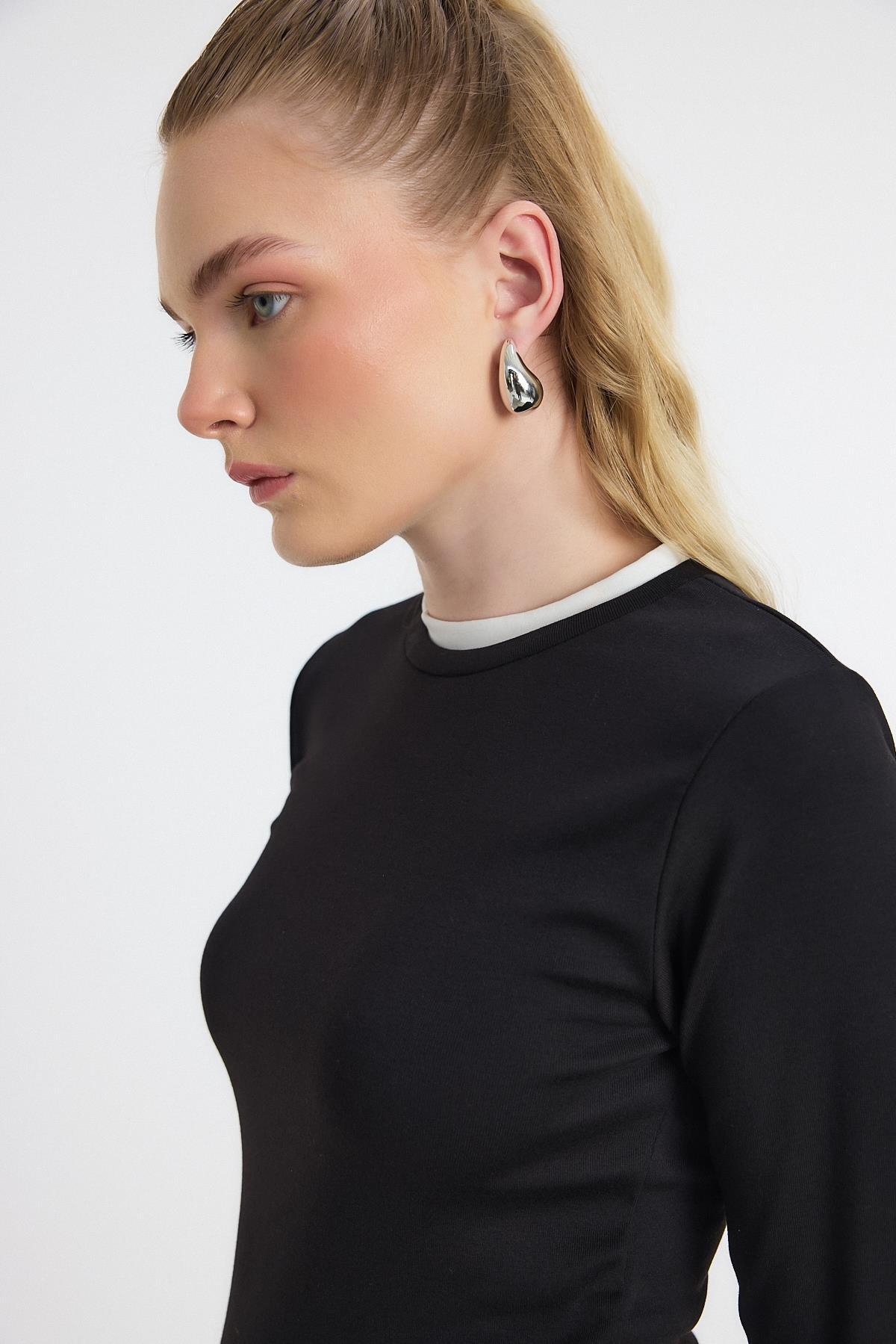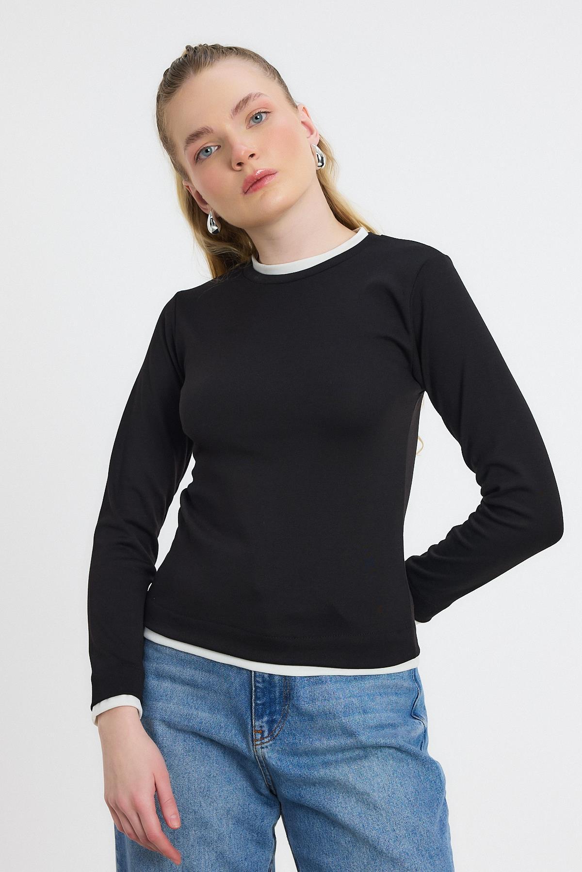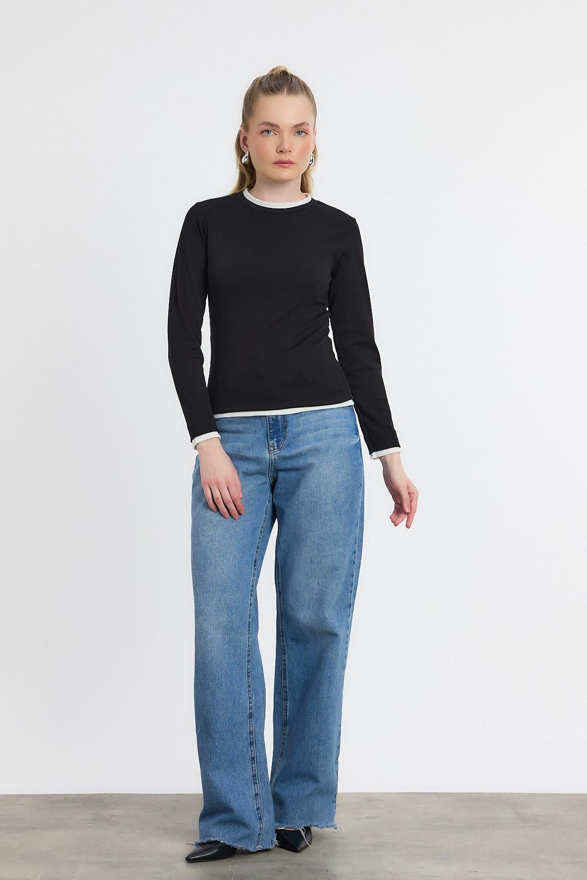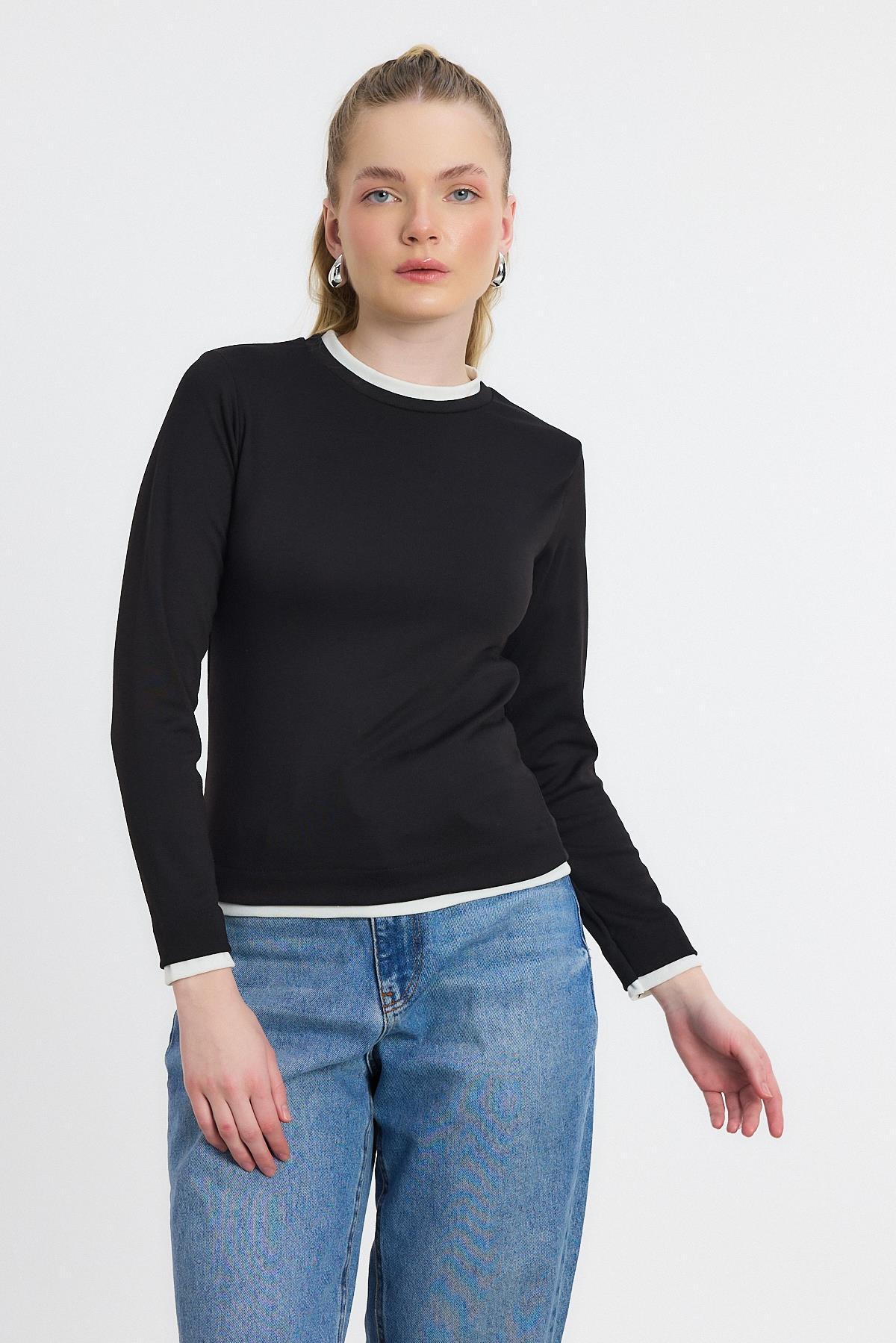 Siyah Ribana Detay Uzun Kollu Bluz 3011
