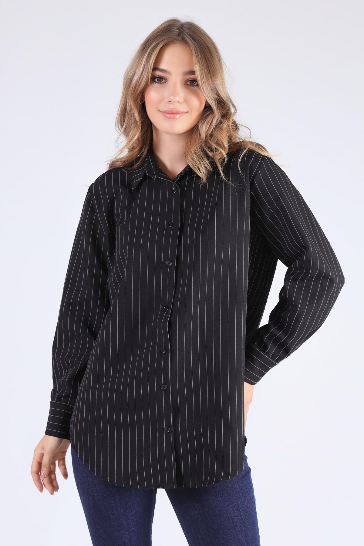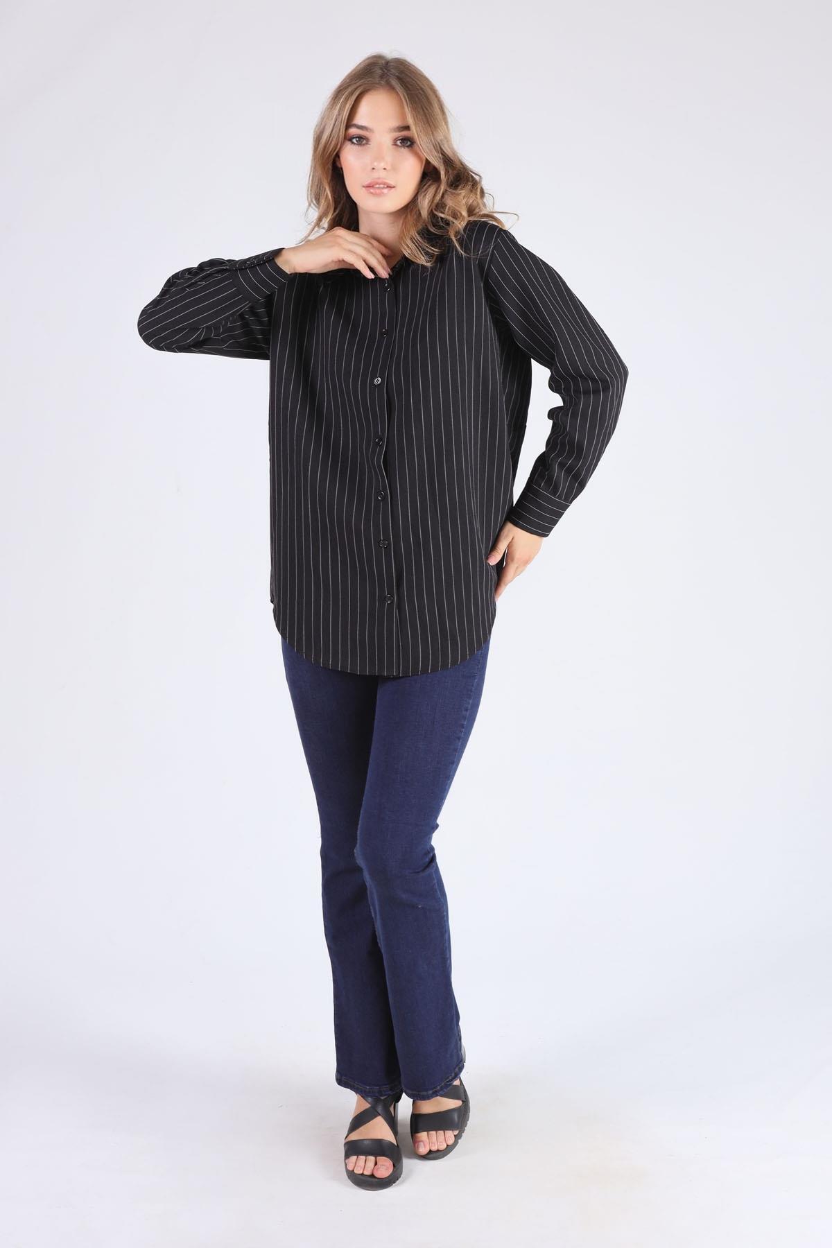 Siyah Çizgili Salaş Gömlek 5475
