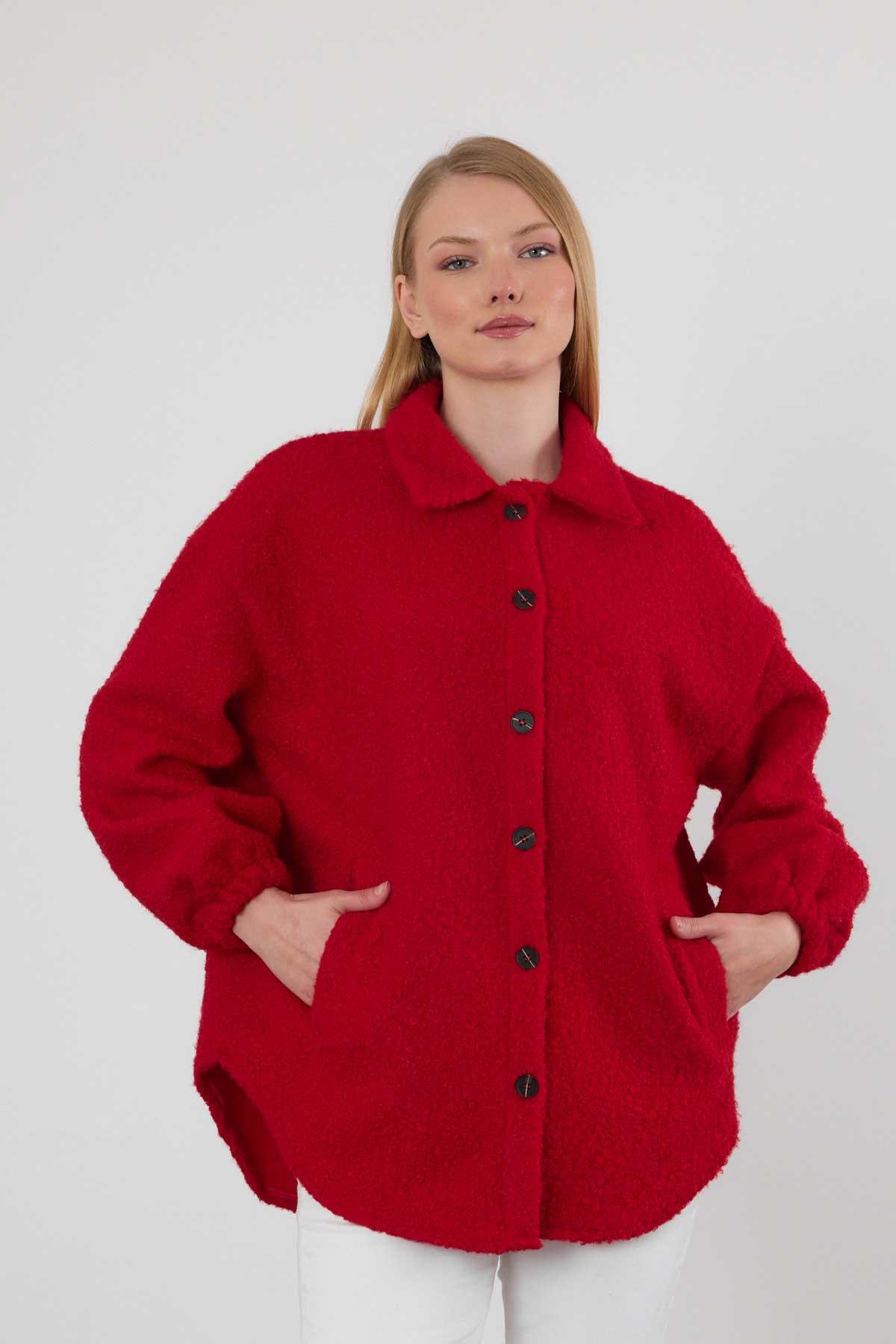 3014A Gömlek Yaka Düğmeli Ceket Kırmızı
