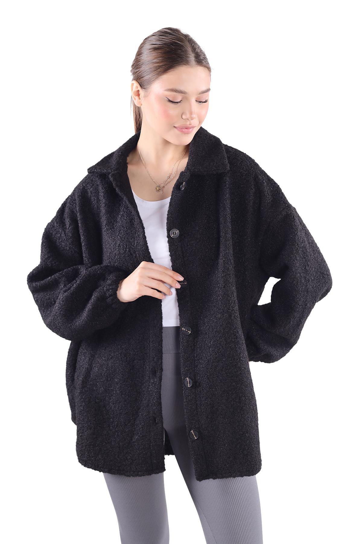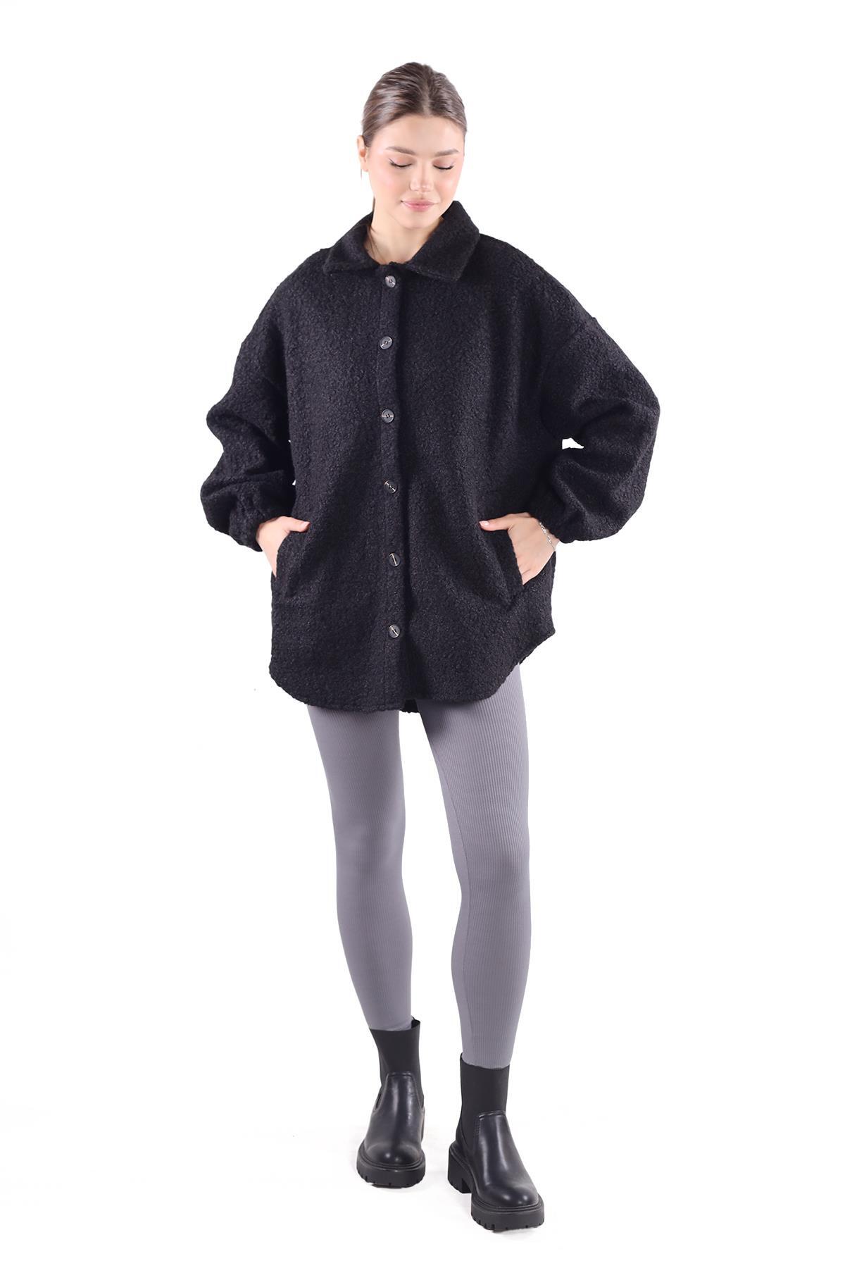 3014A Gömlek Yaka Düğmeli Ceket Siyah