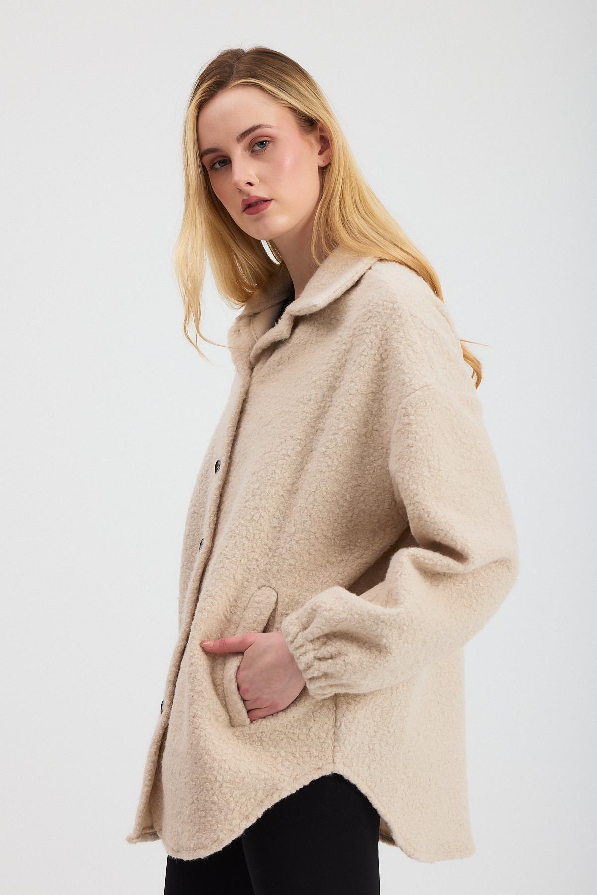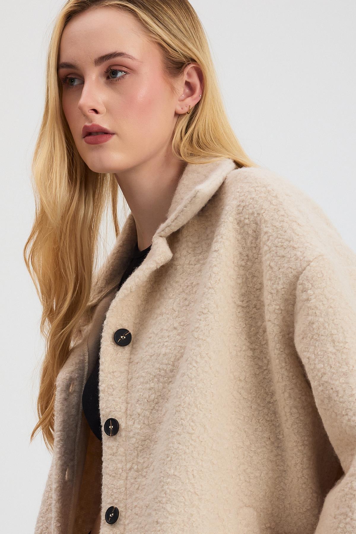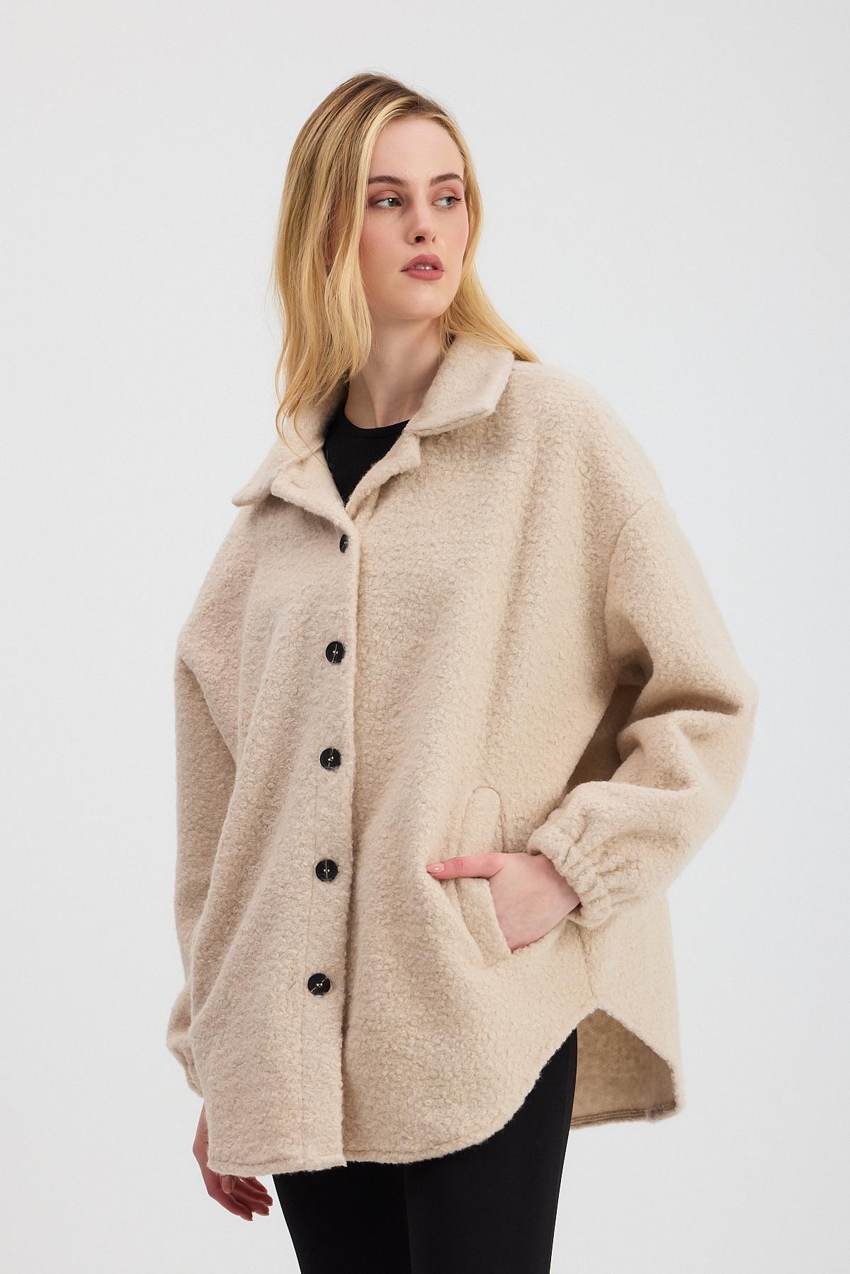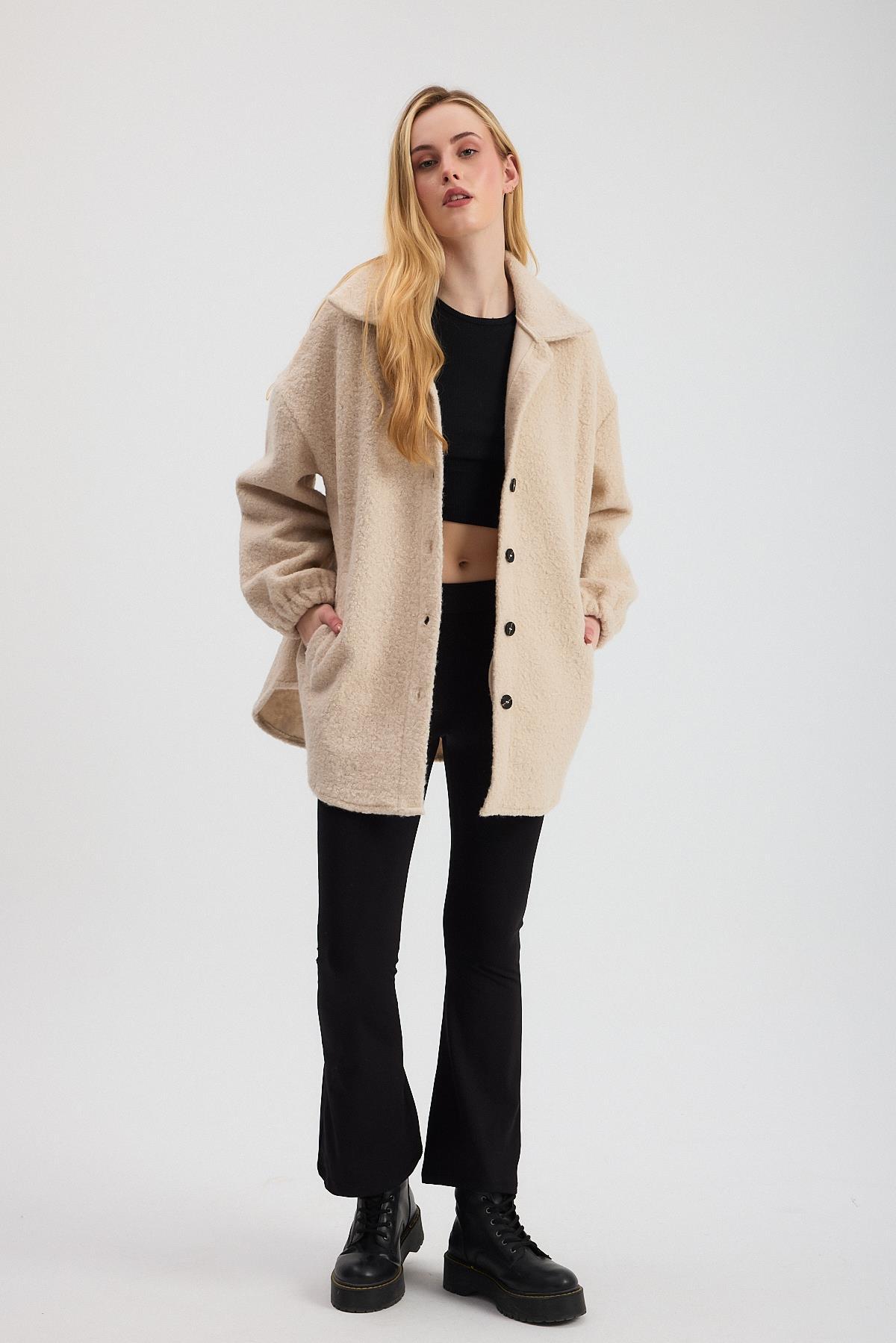 3014A Gömlek Yaka Düğmeli Ceket Taş