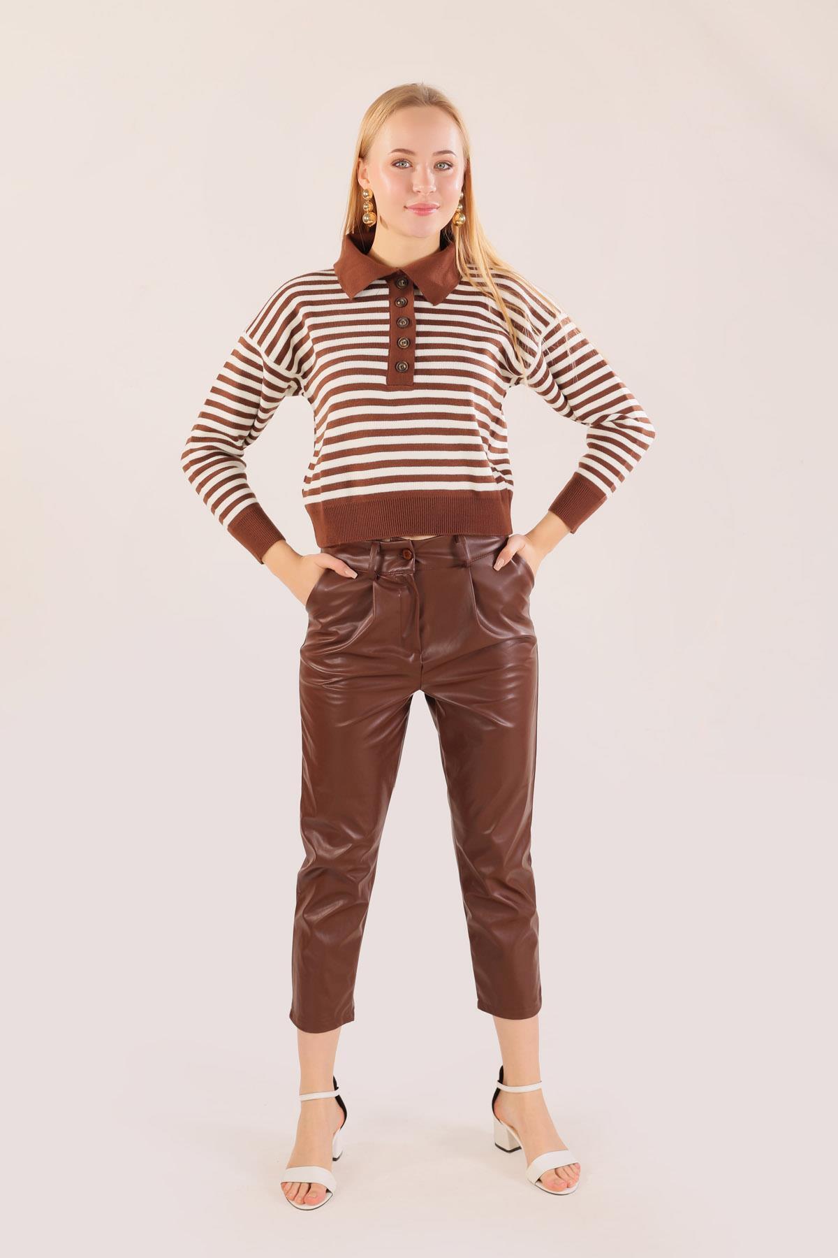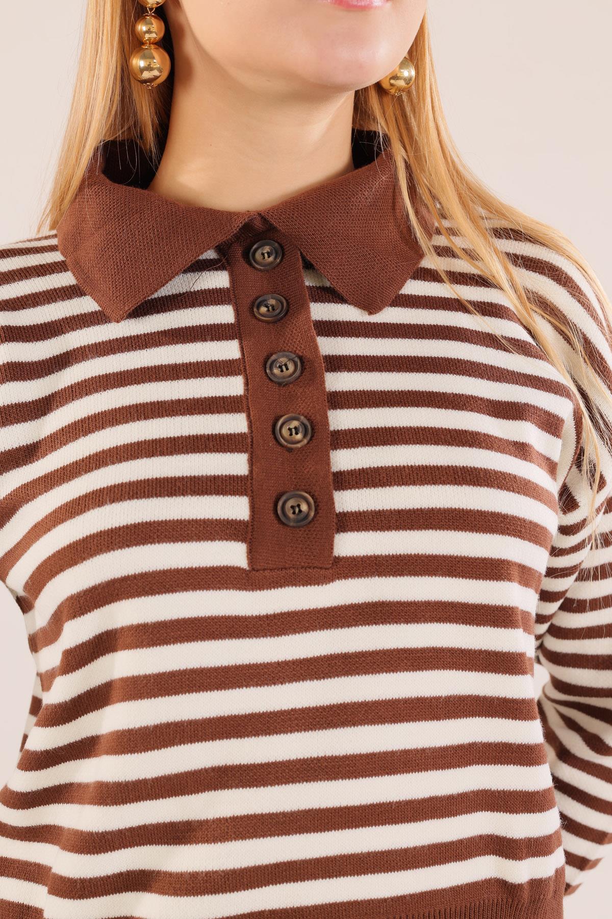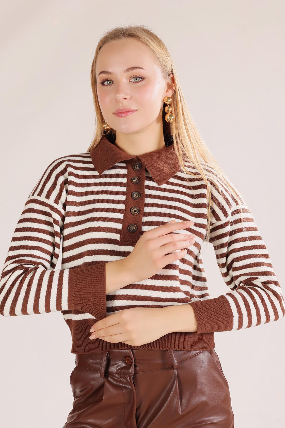 Kahve Gömlek Yaka Düğmeli Kazak 3016