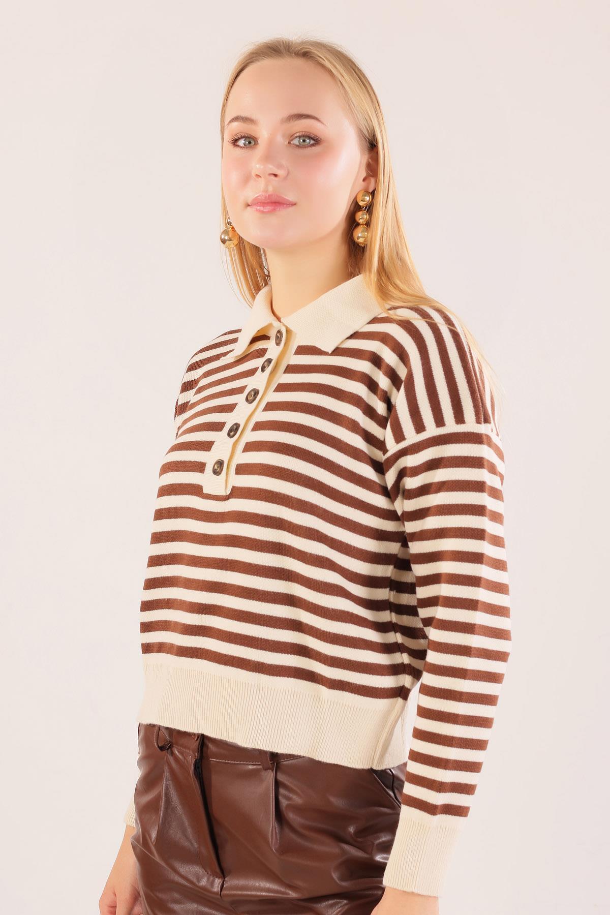 Krem Gömlek Yaka Düğmeli Kazak 3016