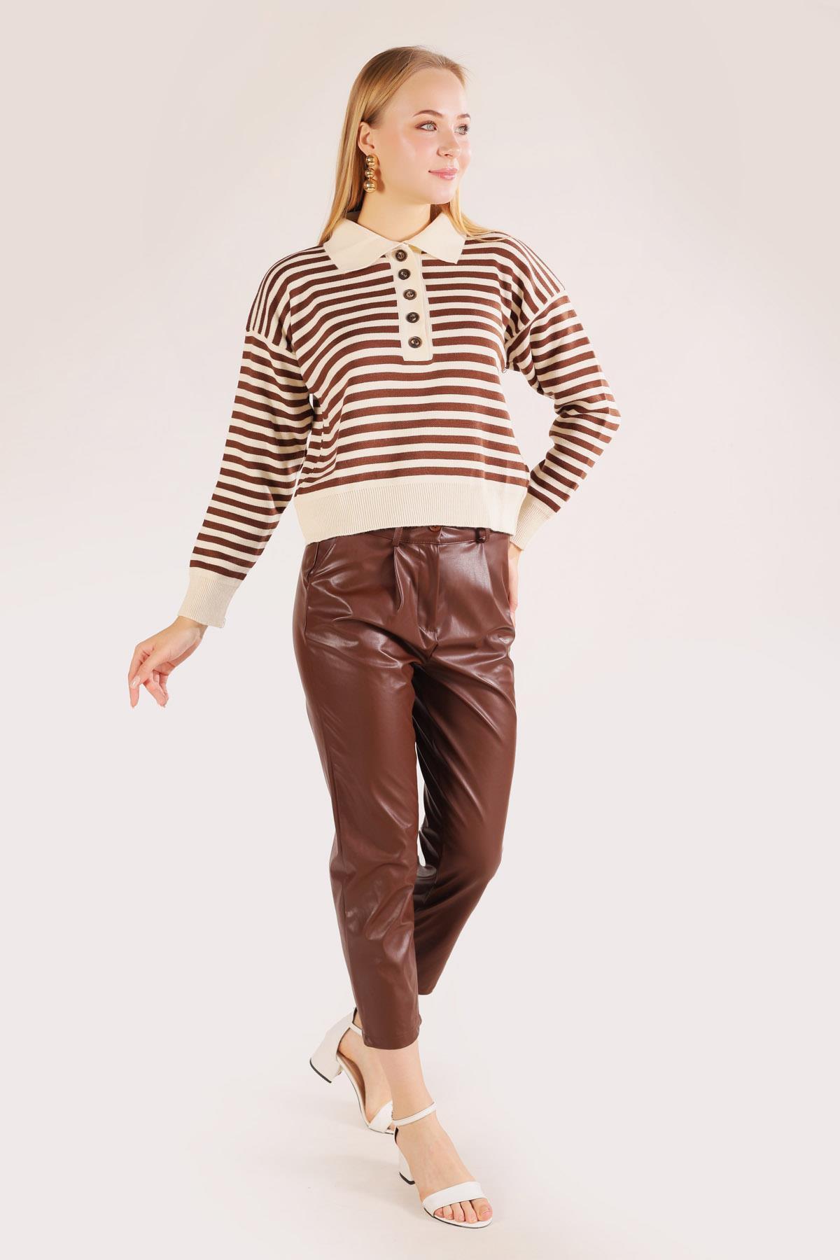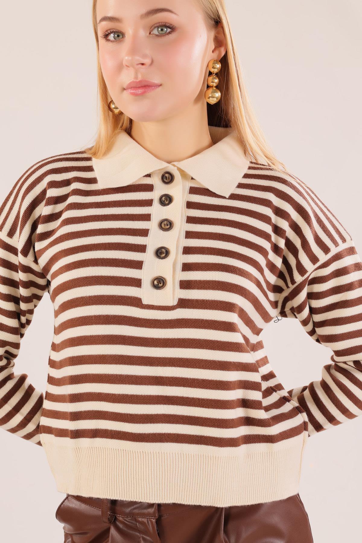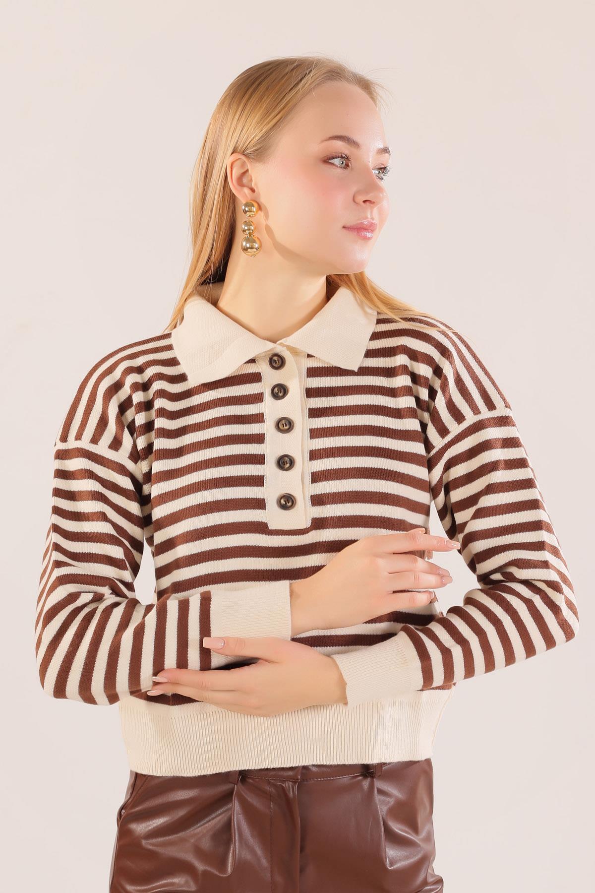 Kahve Gömlek Yaka Kazak 3082A - RAYS Kahve Gömlek Yaka Kazak 3082A - RAYS (1)