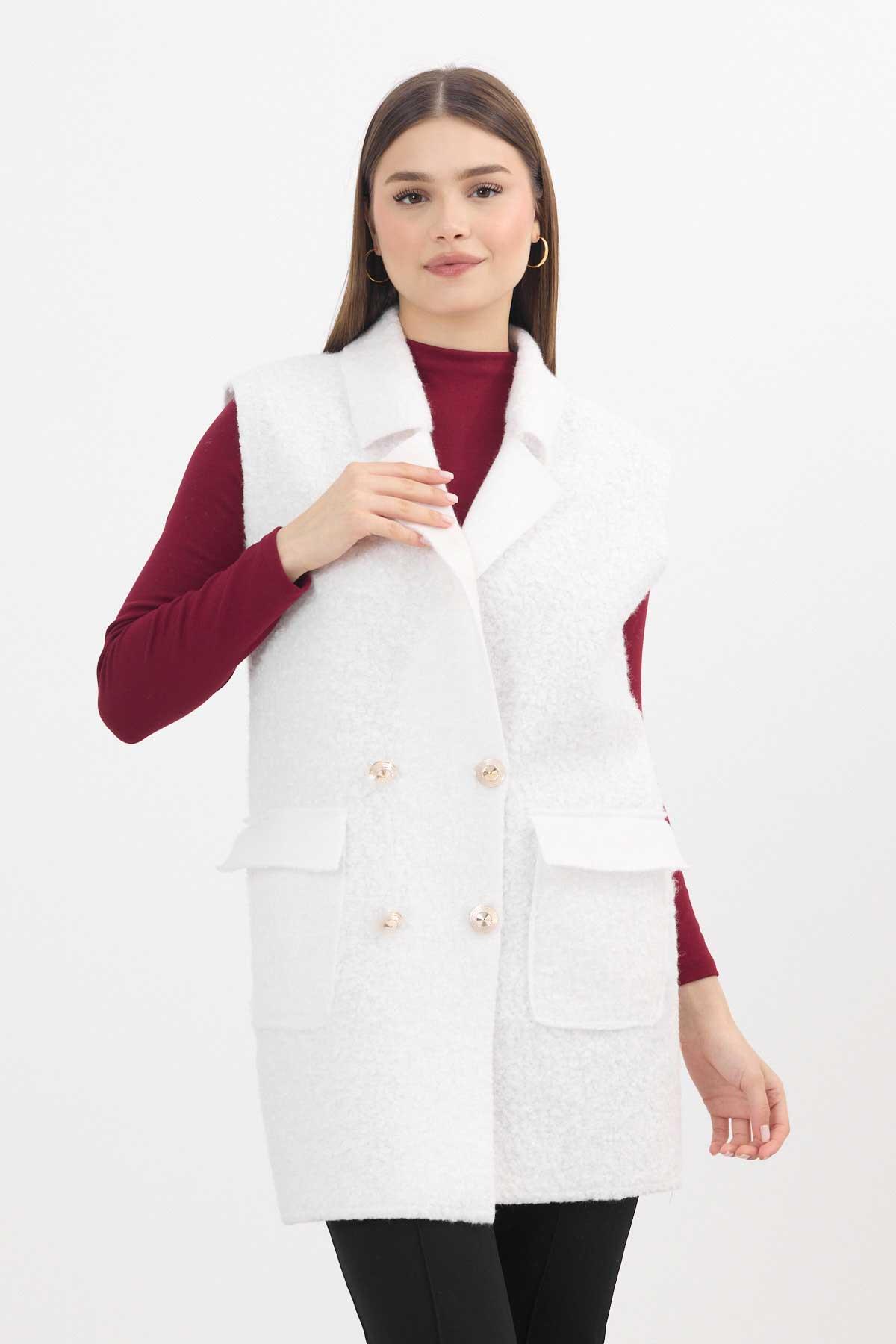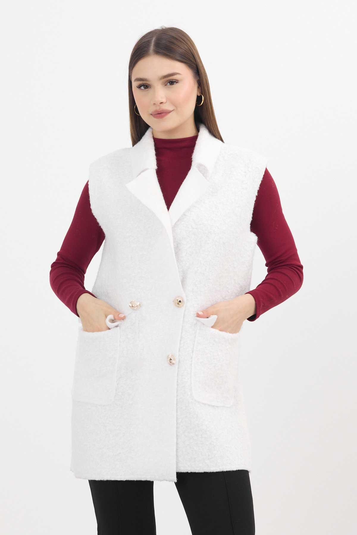 Beyaz %100 Pamuk Müslin Yandan Bağlamalı Kuşaklı Yelek 8017A