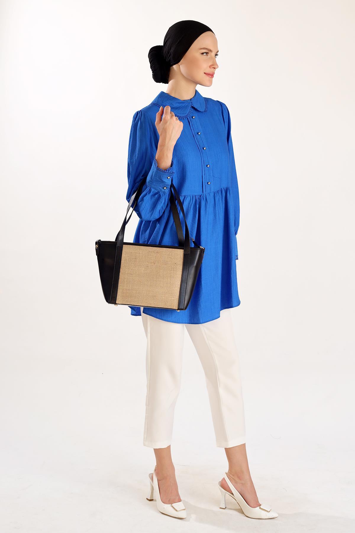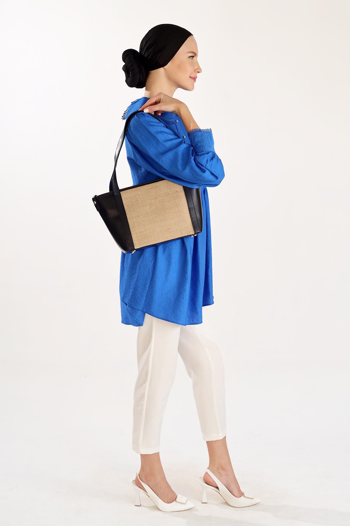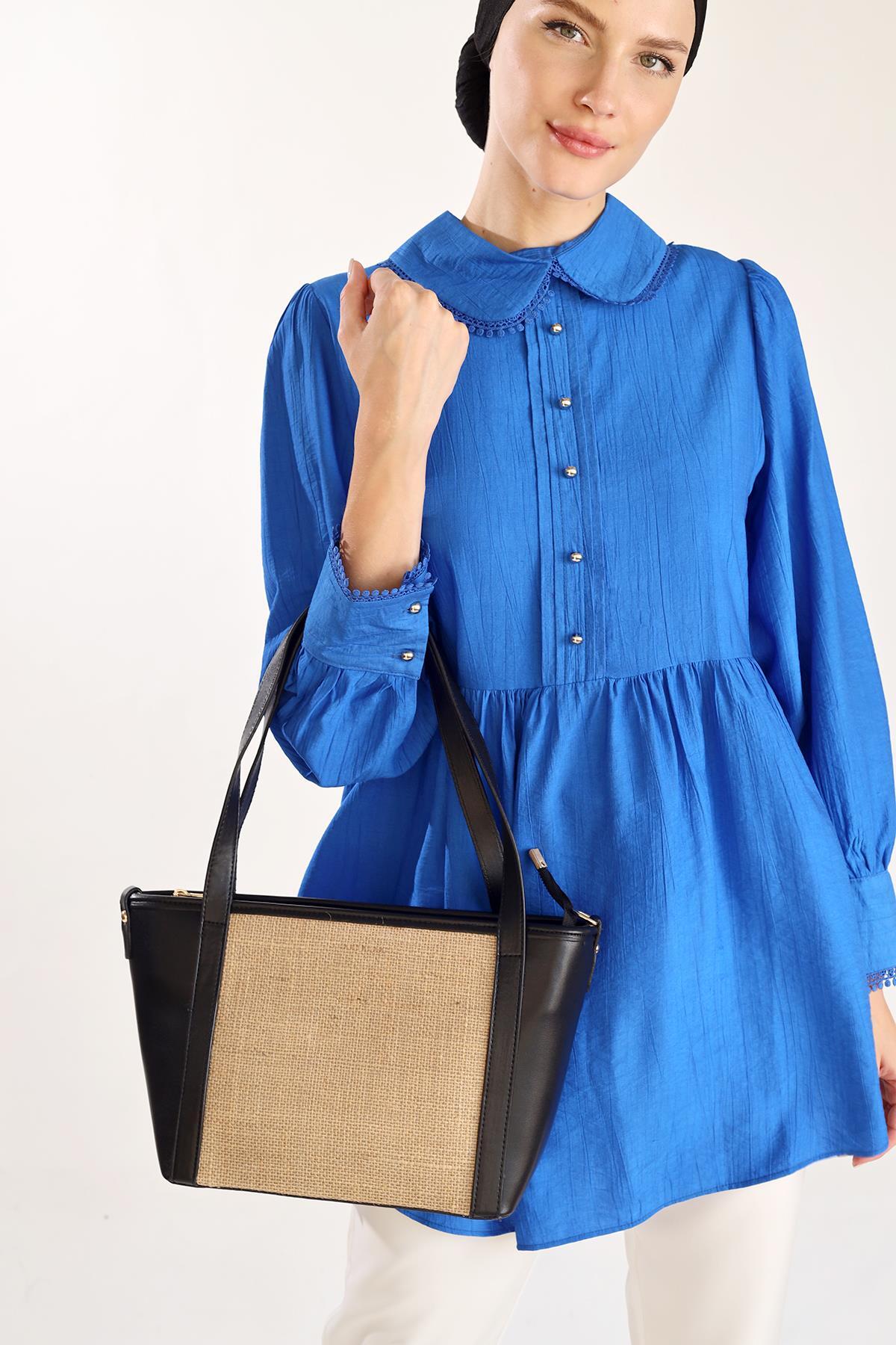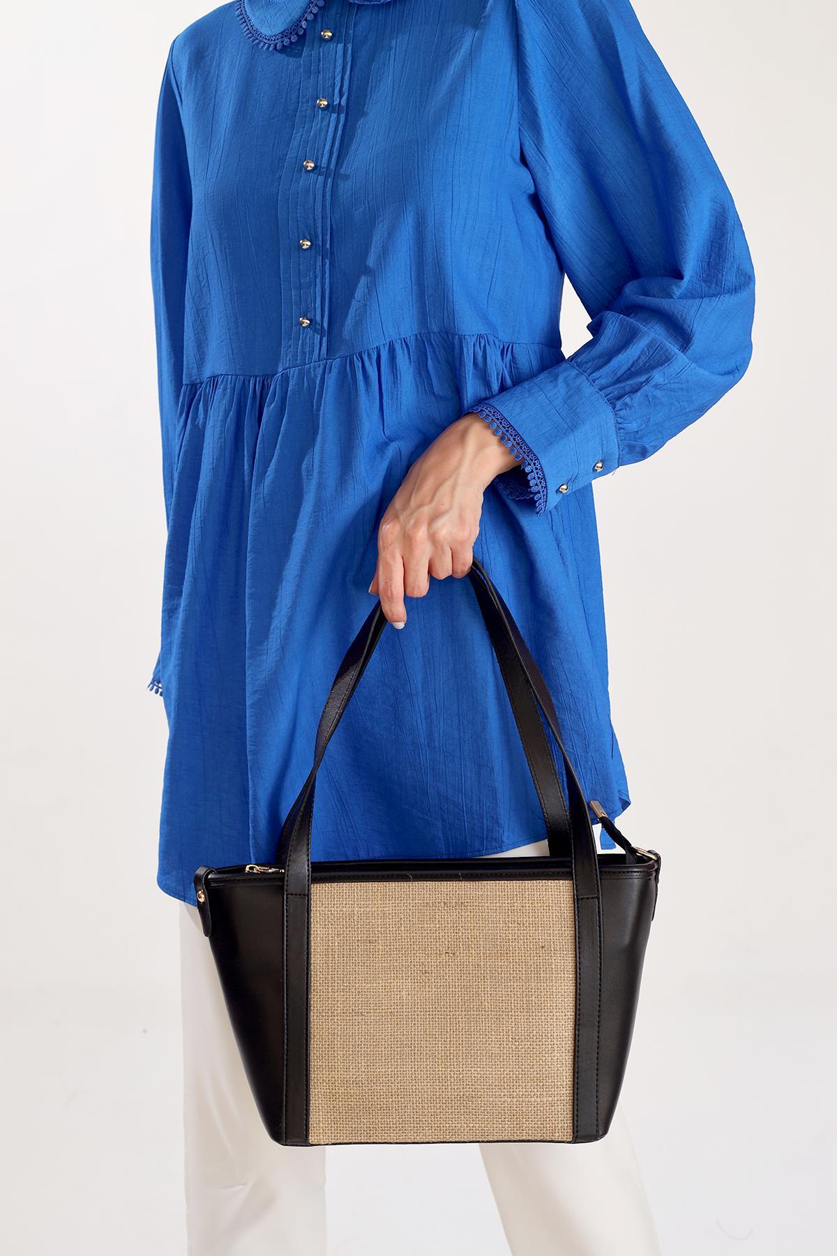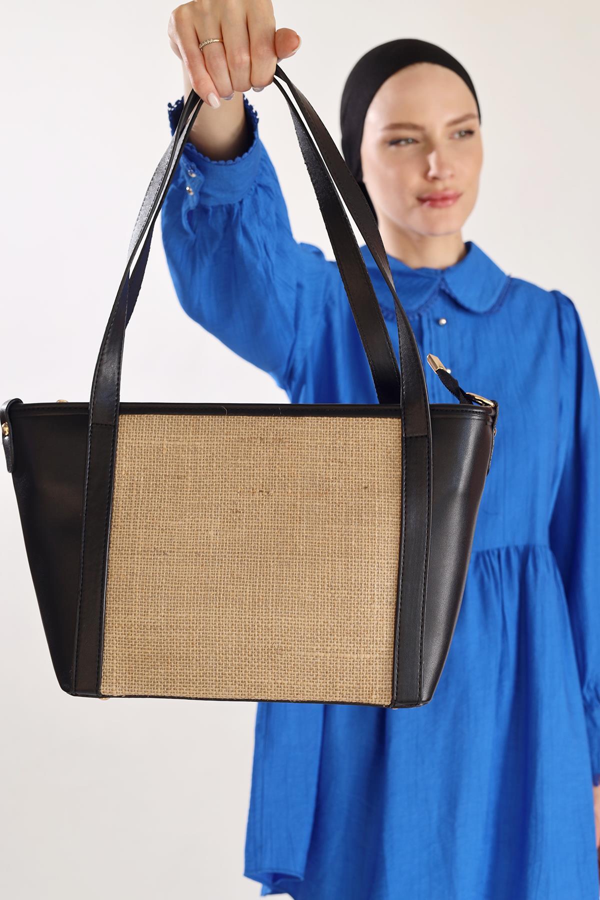 Siyah Gövde Hasır Çanta 3017
