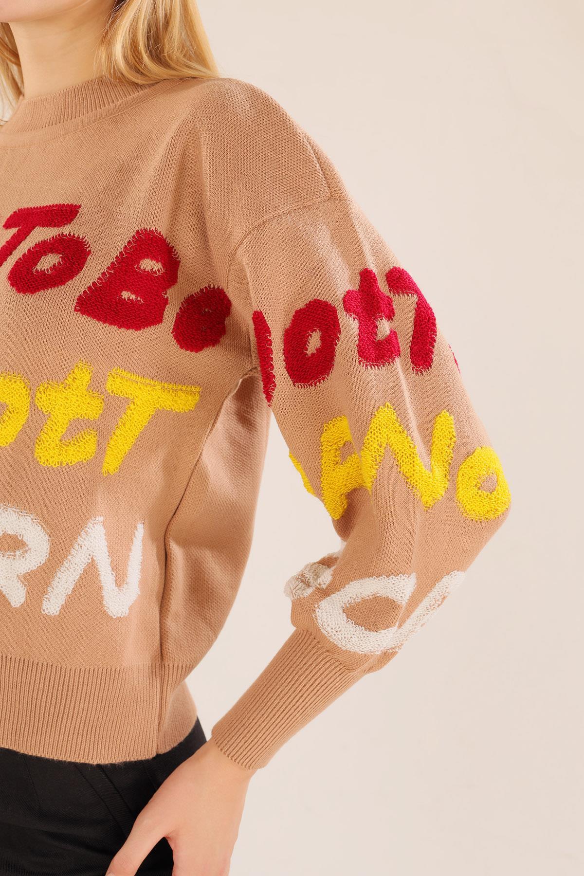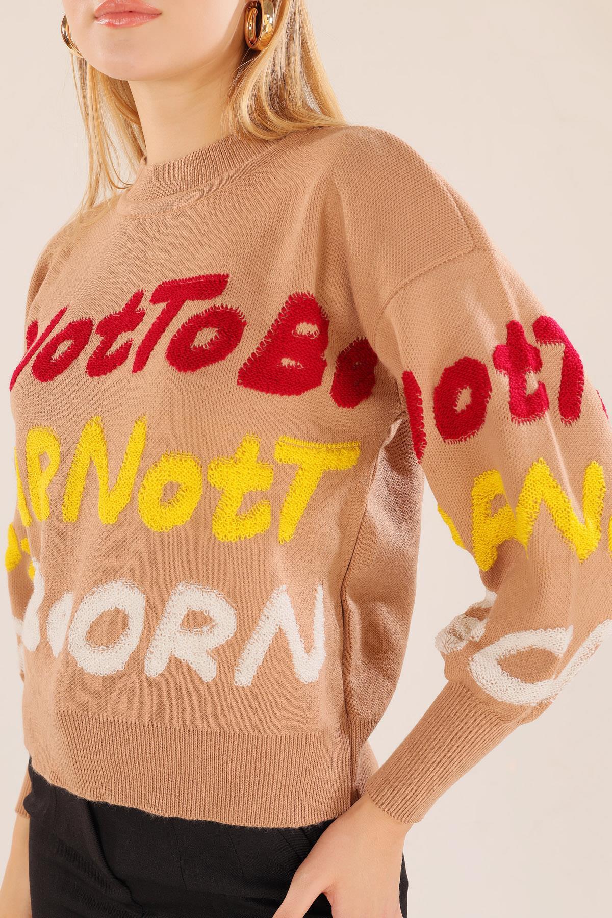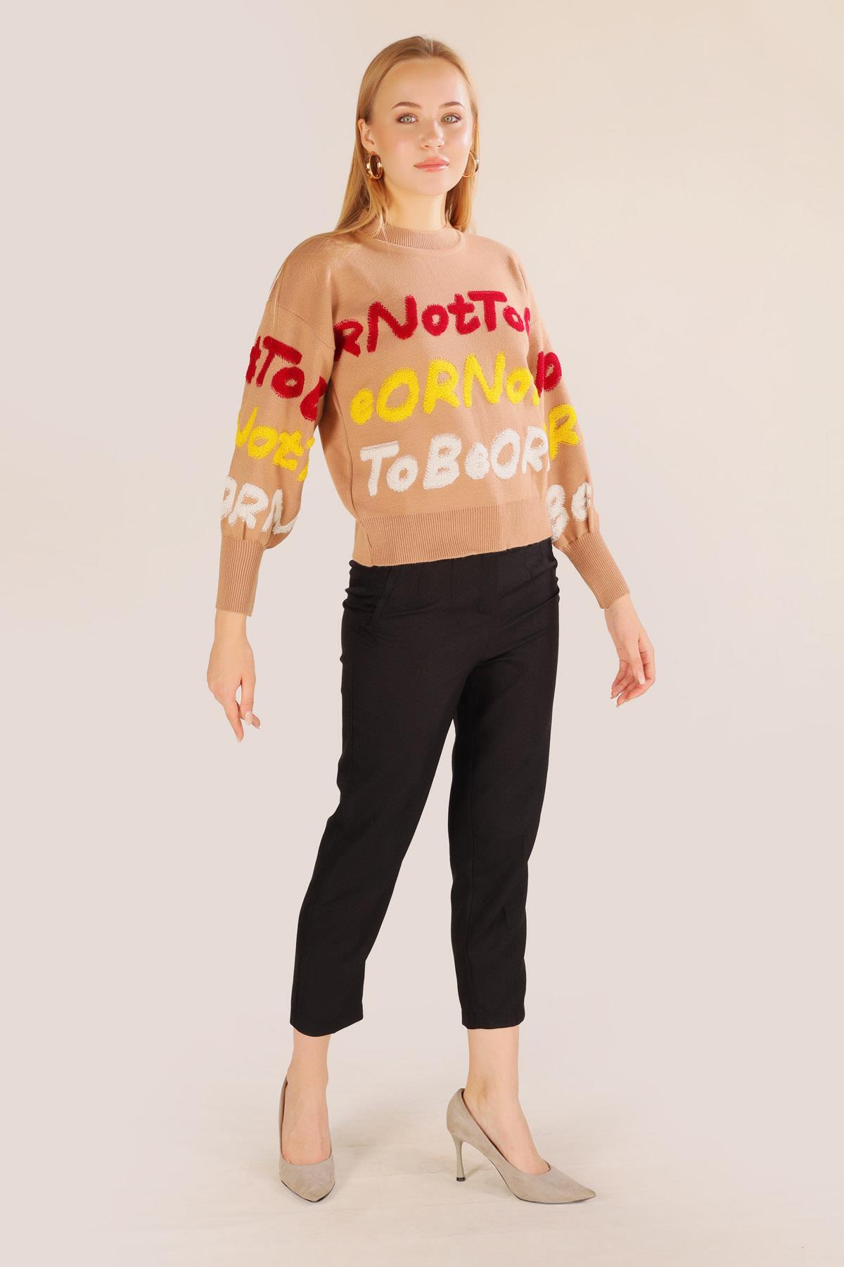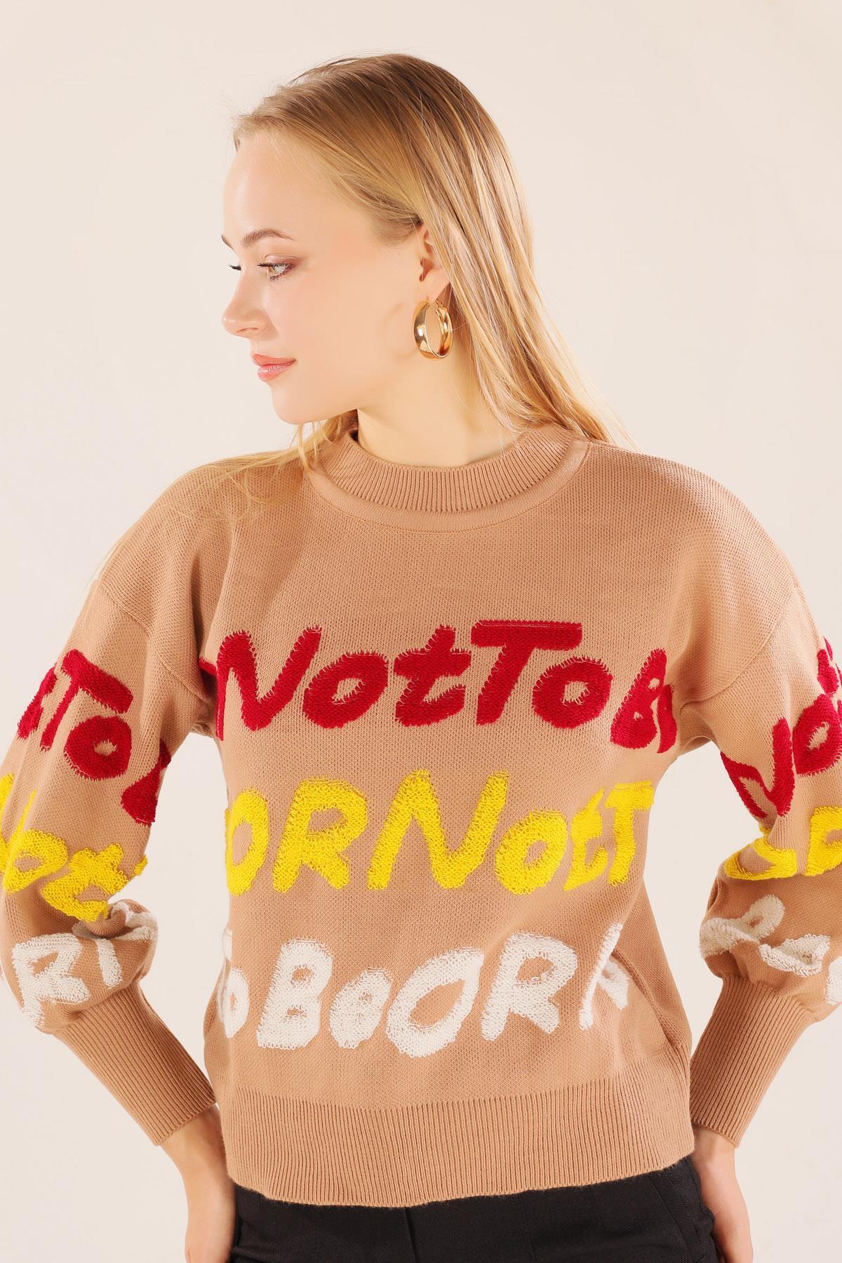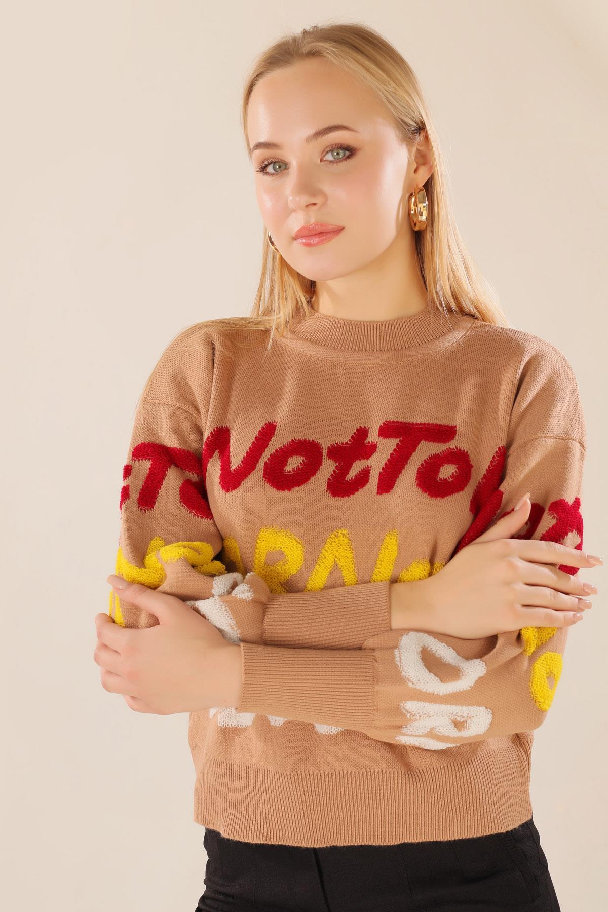 Kahve Kalp Nakışlı Kısa Kazak 2337 - RAYS Kahve Kalp Nakışlı Kısa Kazak 2337 - RAYS (1)