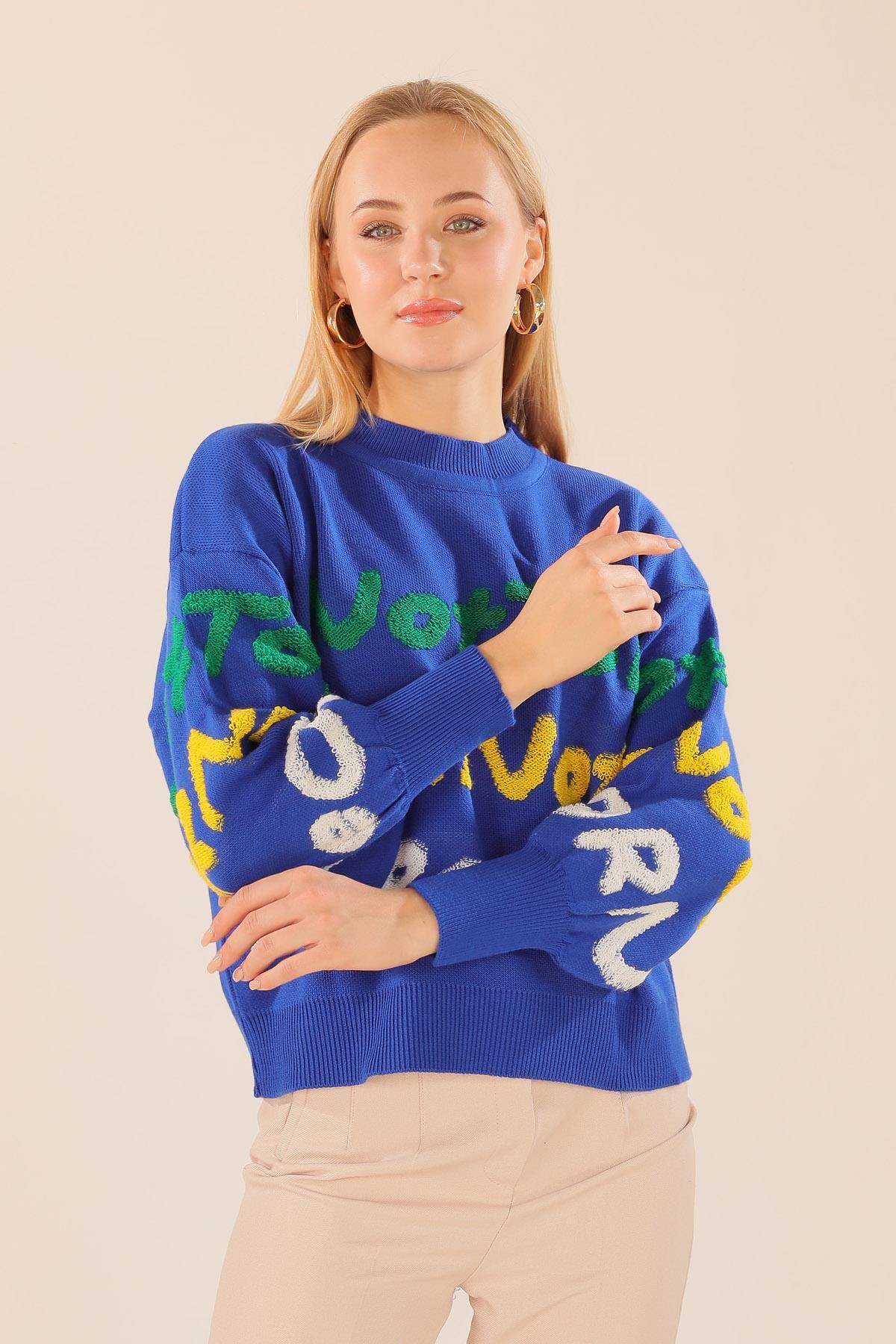 Kahve Kalp Nakışlı Kısa Kazak 2337 - RAYS Kahve Kalp Nakışlı Kısa Kazak 2337 - RAYS (1)