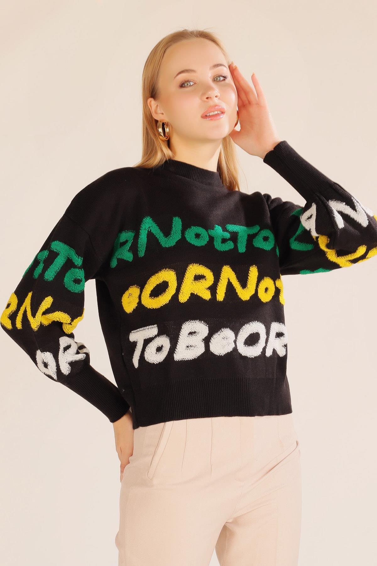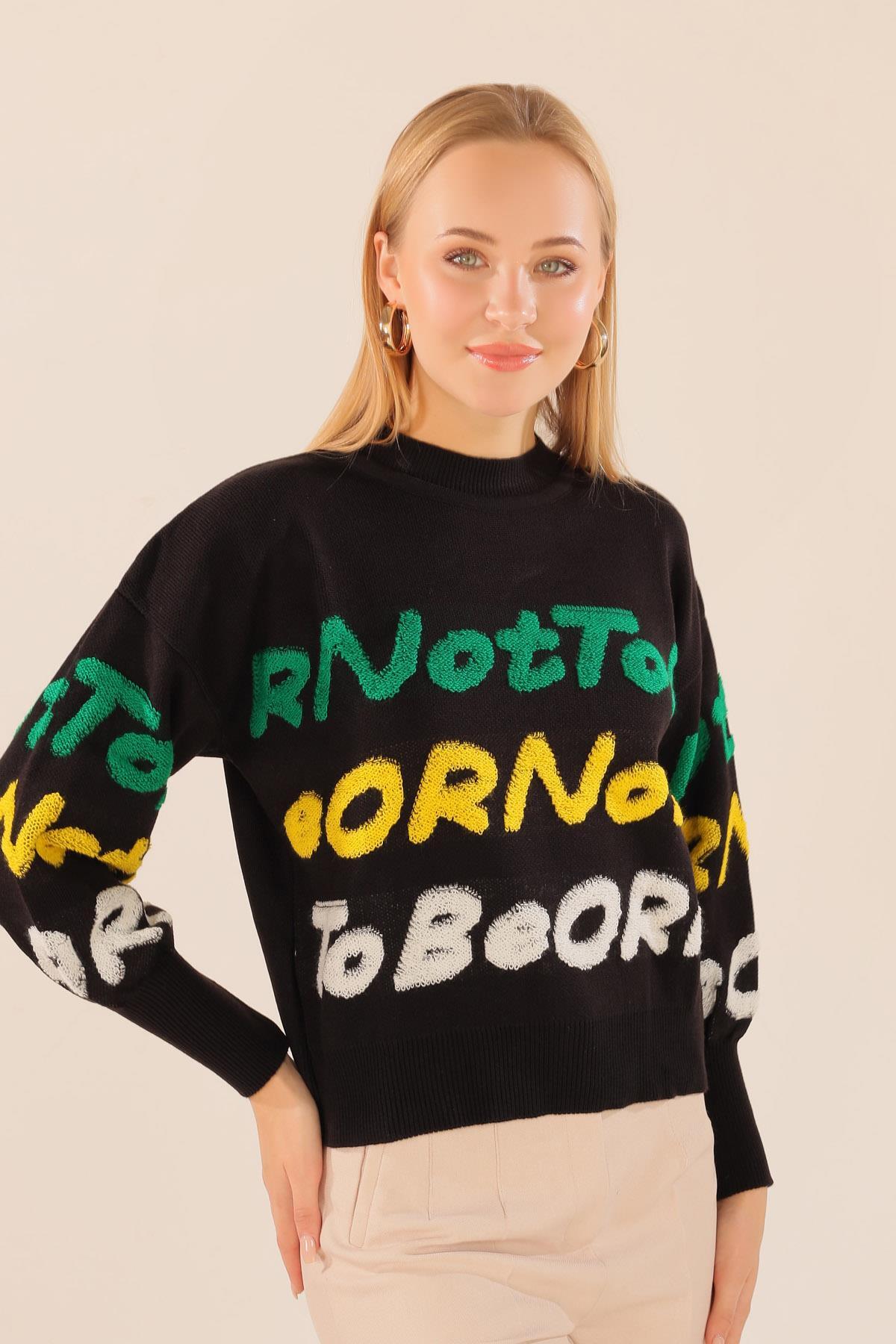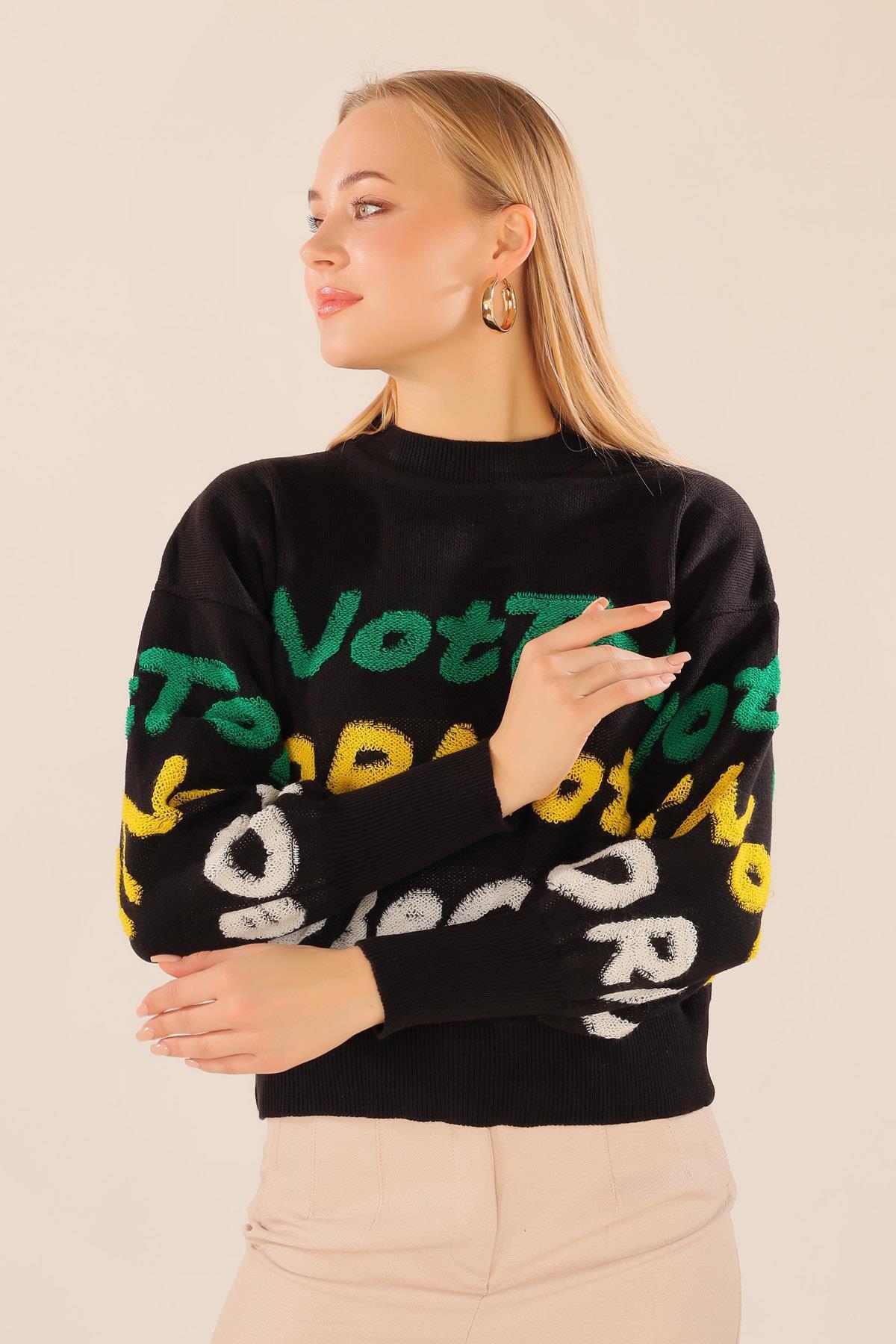 Siyah-Kırmızı Yıldız Baskılı Oversize Kazak 2474 - RAYS Siyah-Kırmızı Yıldız Baskılı Oversize Kazak 2474 - RAYS (1)