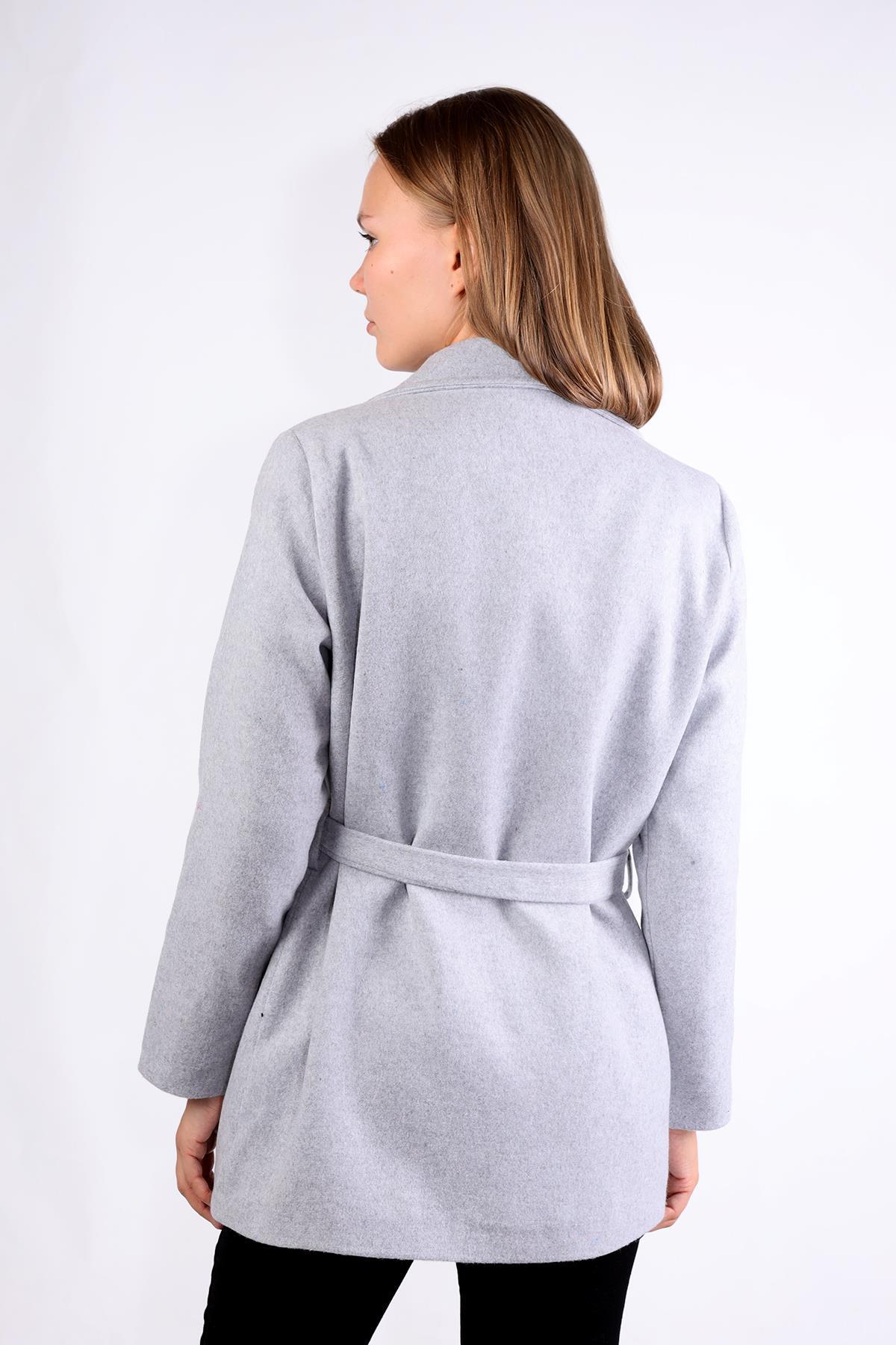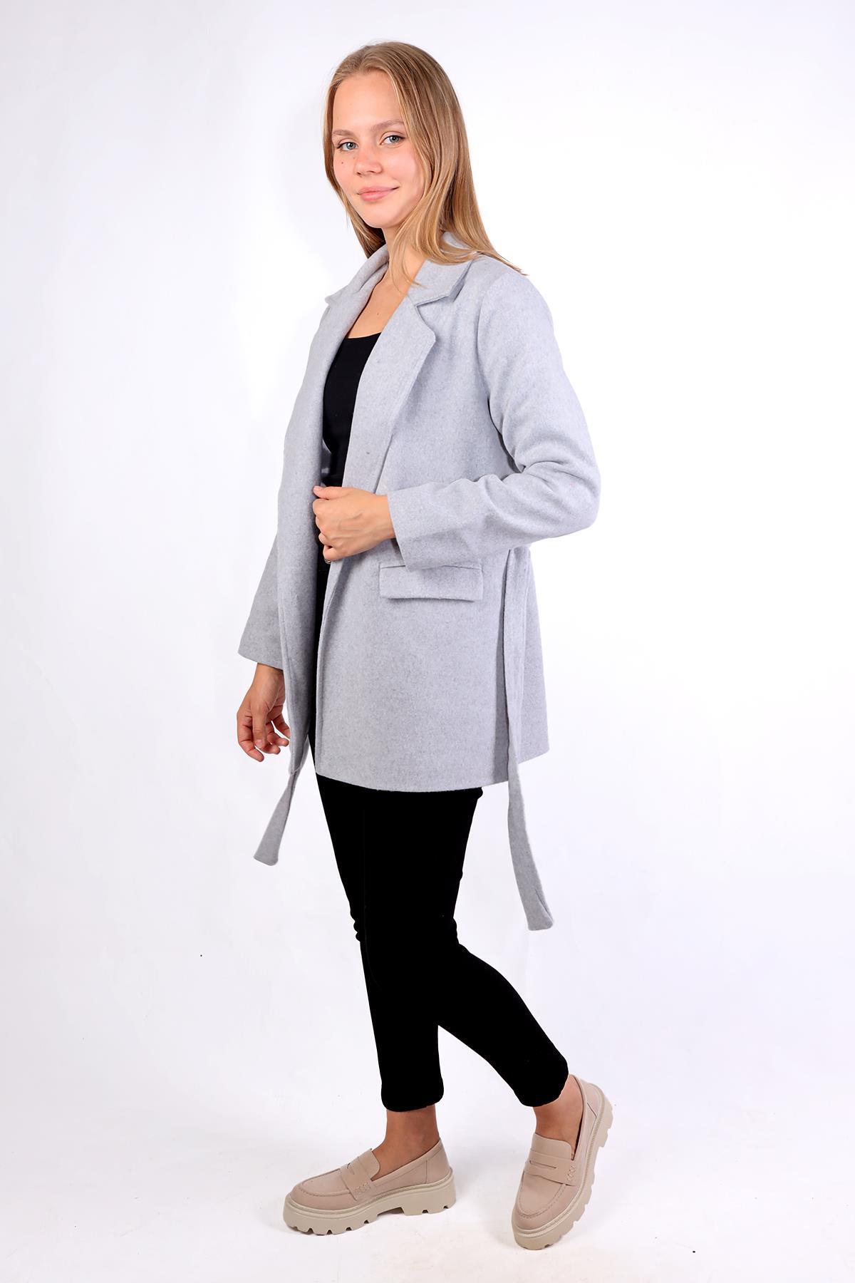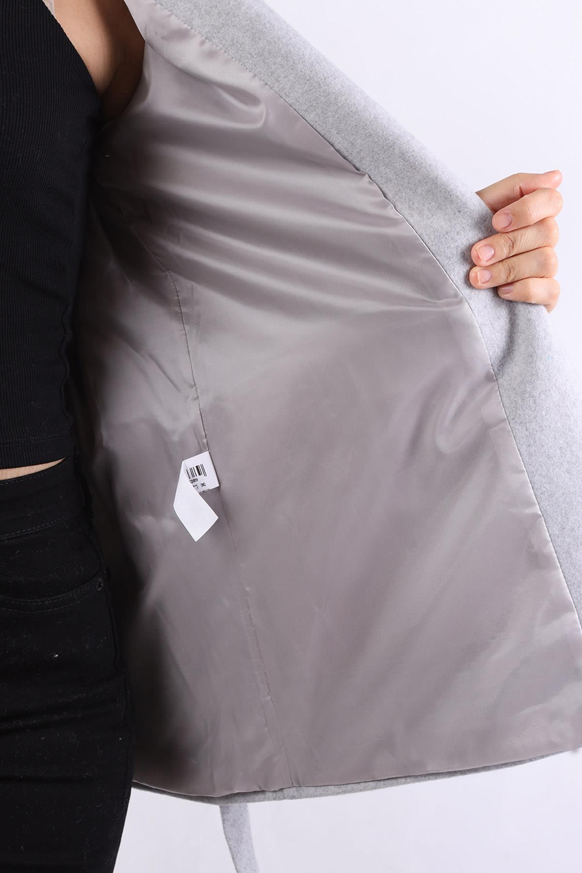 Gri Ön Çift Cepli Kaşe Kaban 3021A
