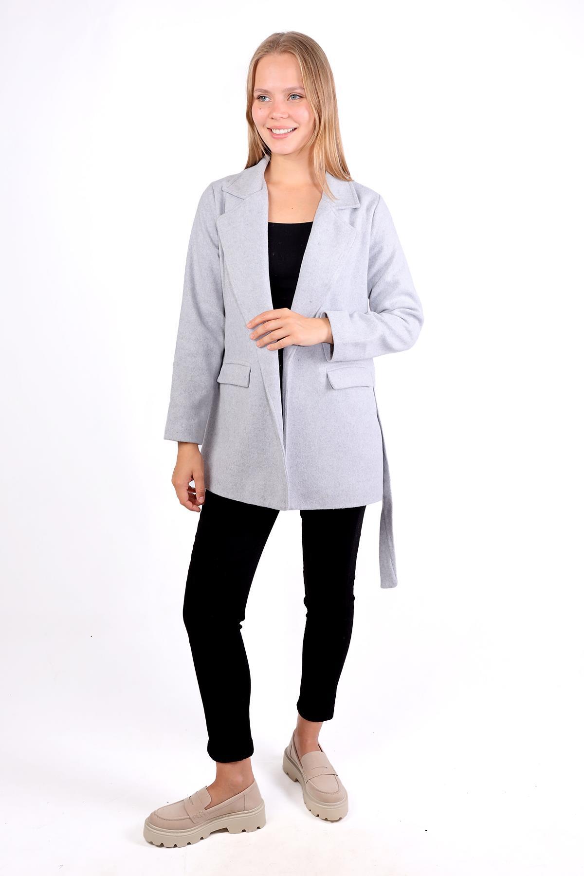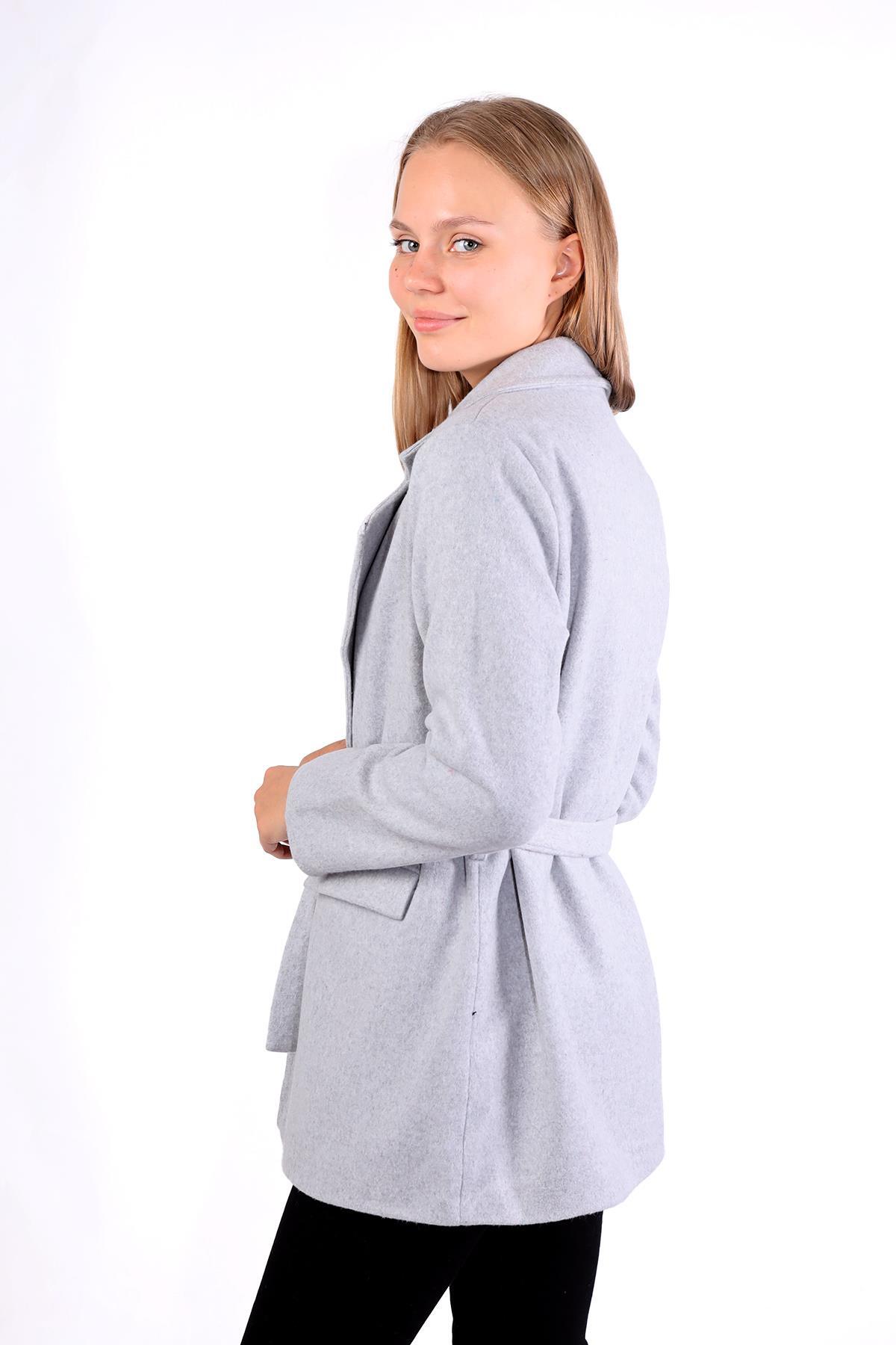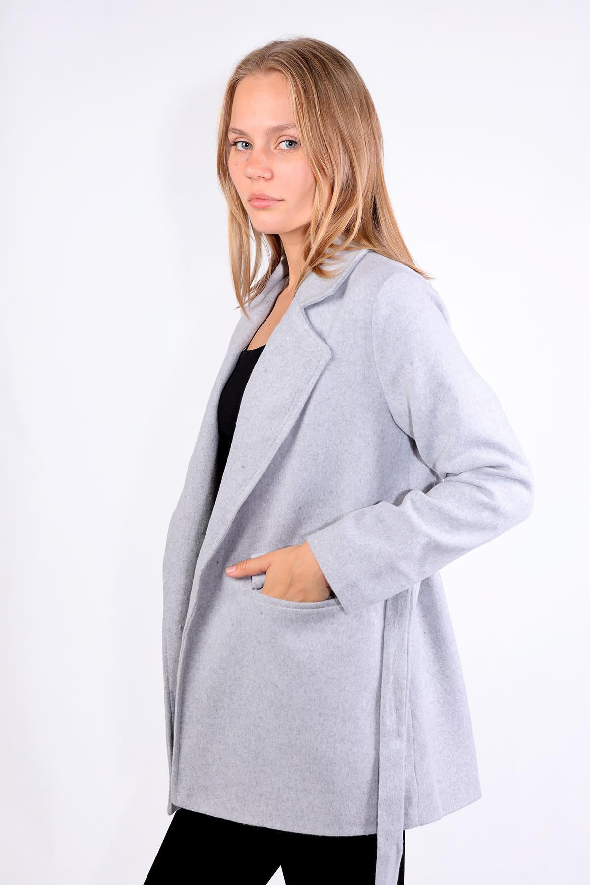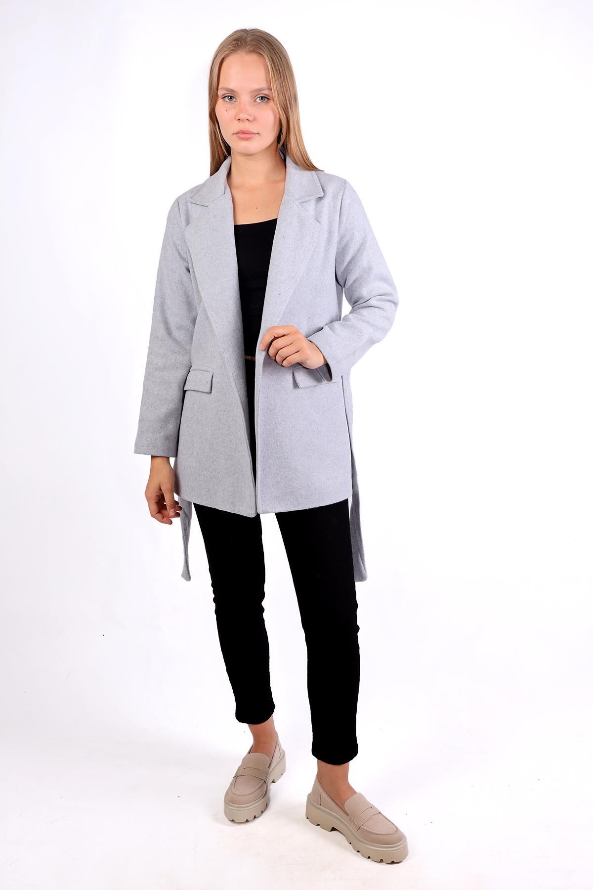 Gri Ön Çift Cepli Kaşe Kaban 3021A