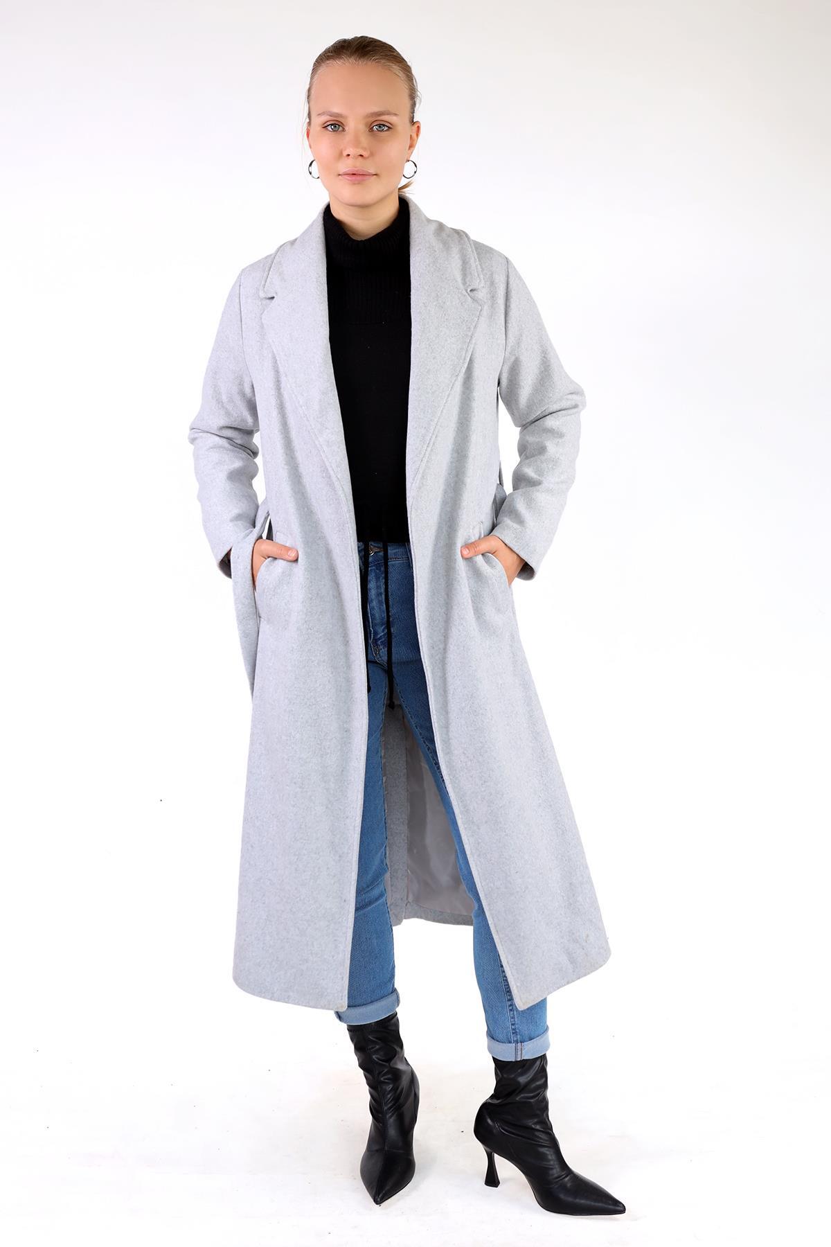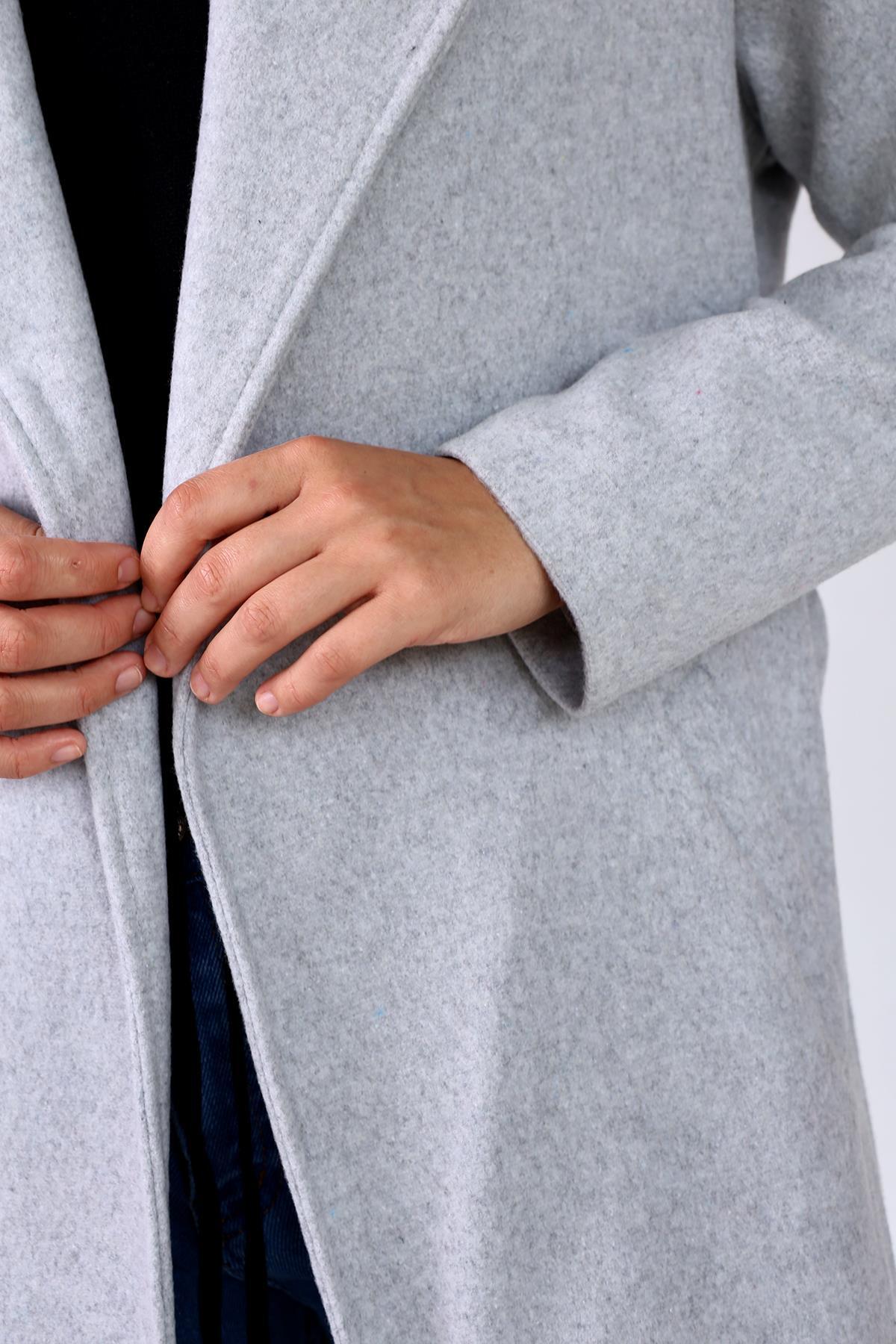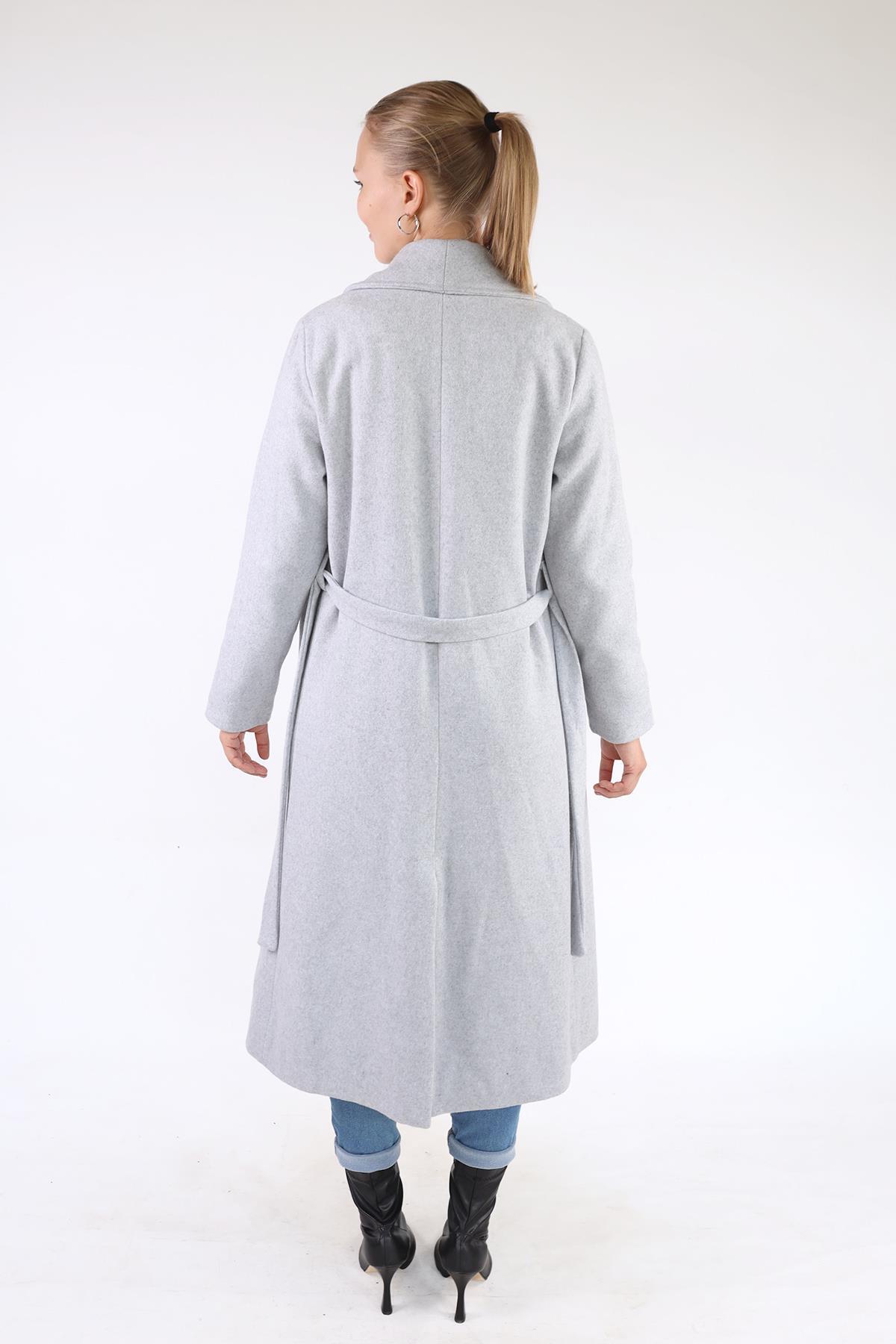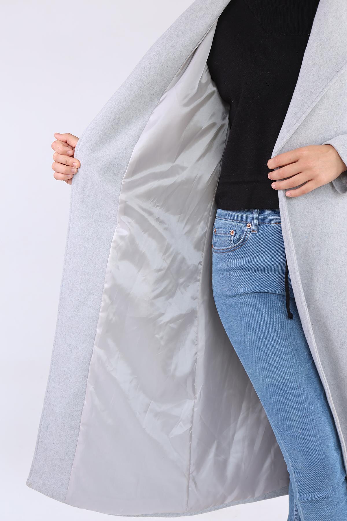 Gri Şal Yaka Vatkalı Kaşe Kaban 3022A