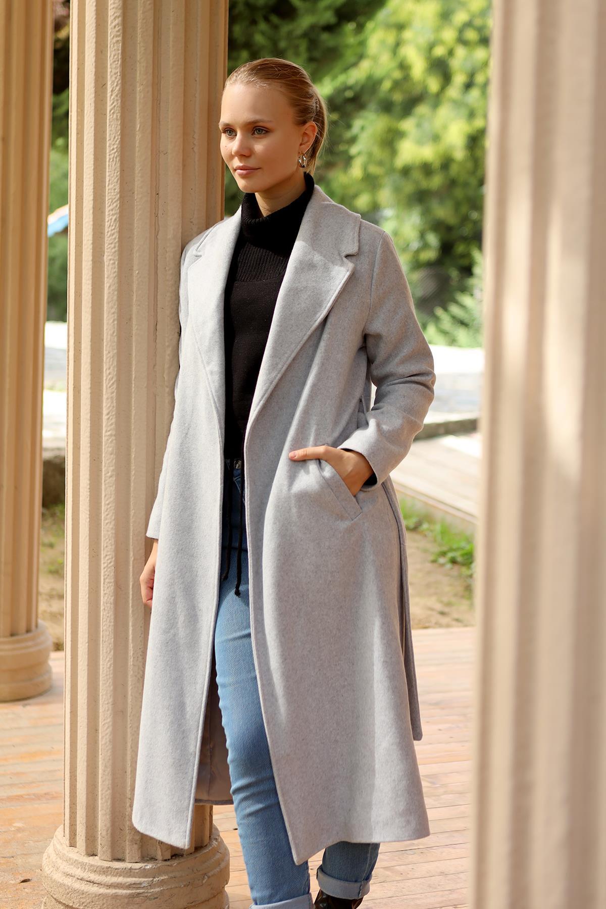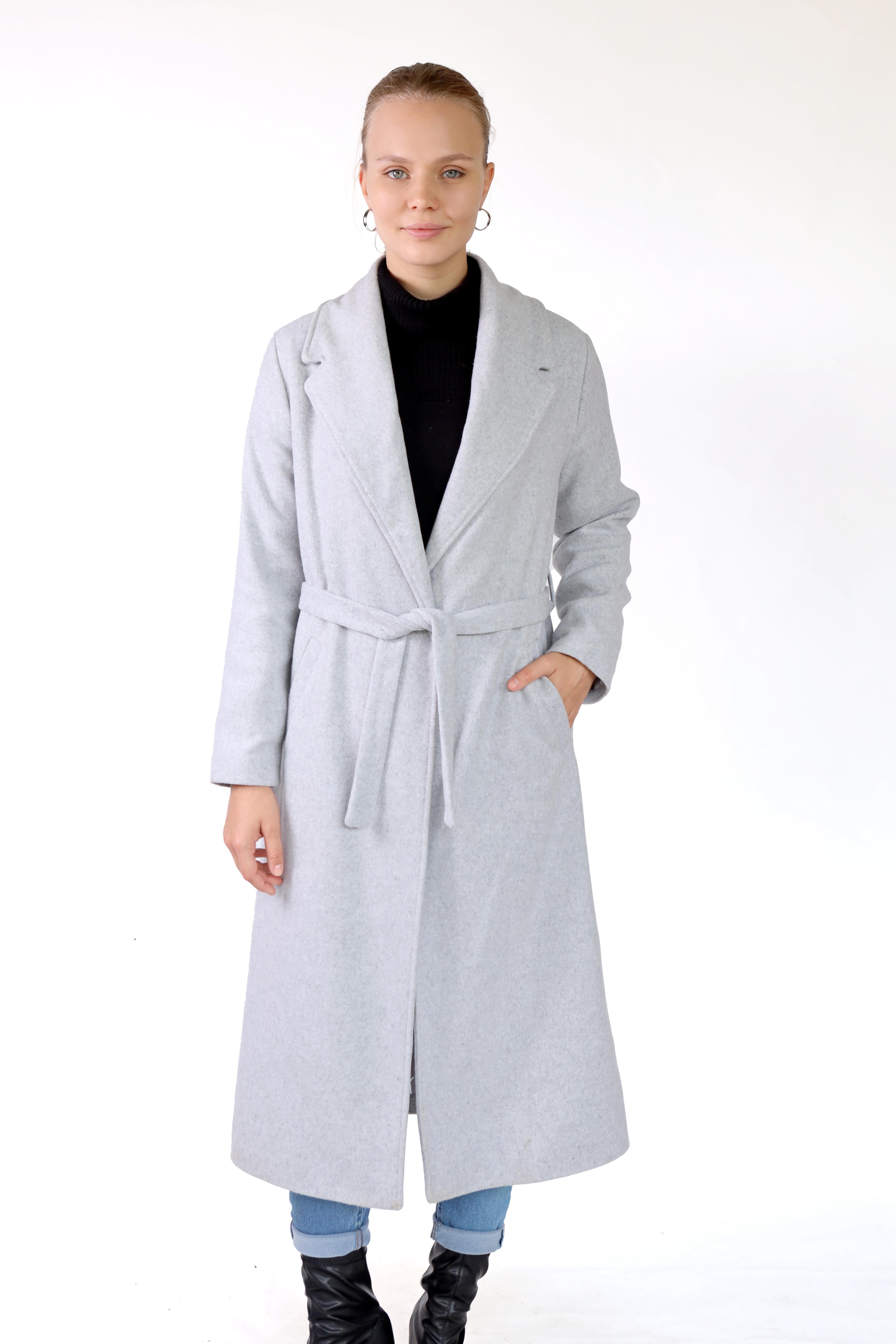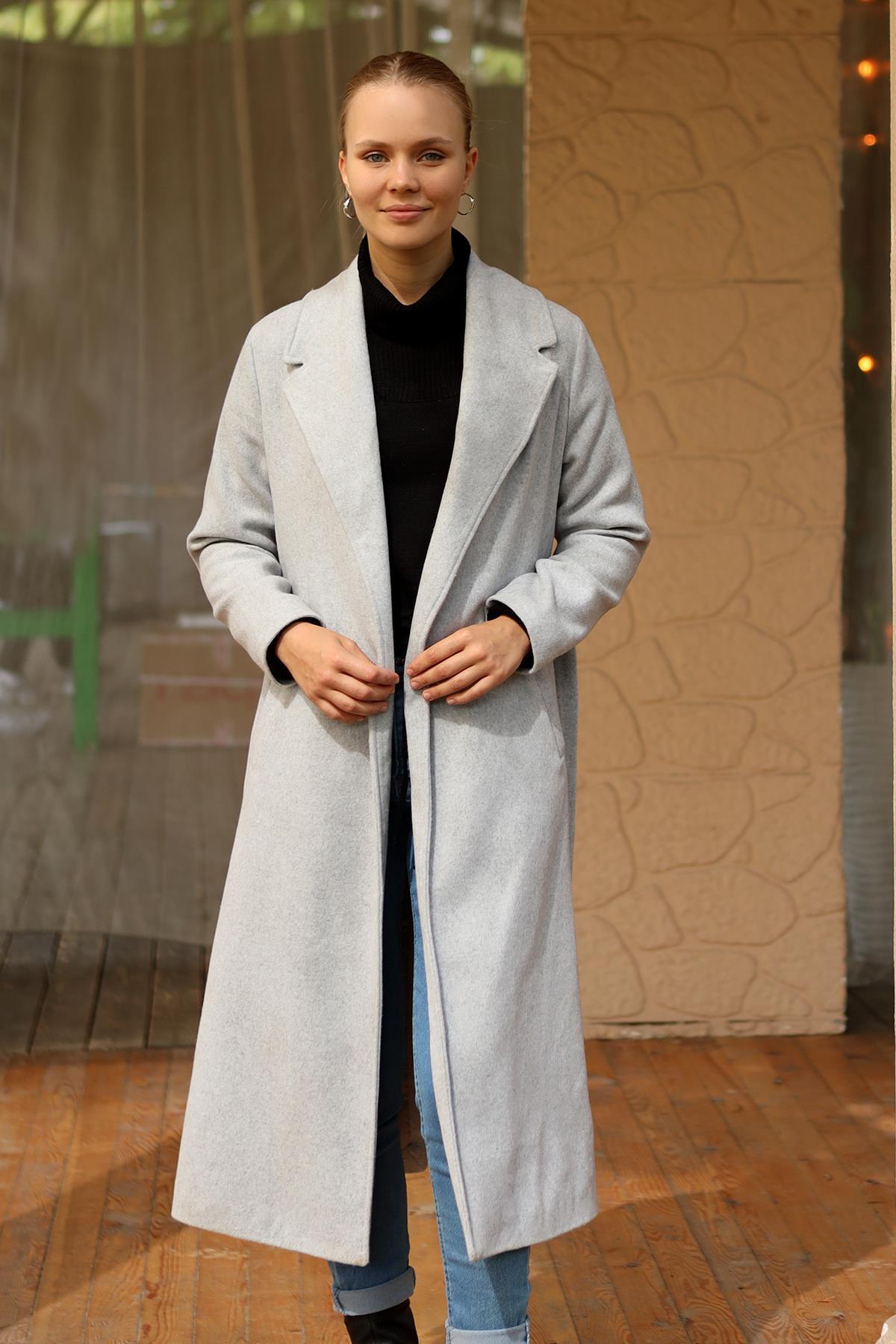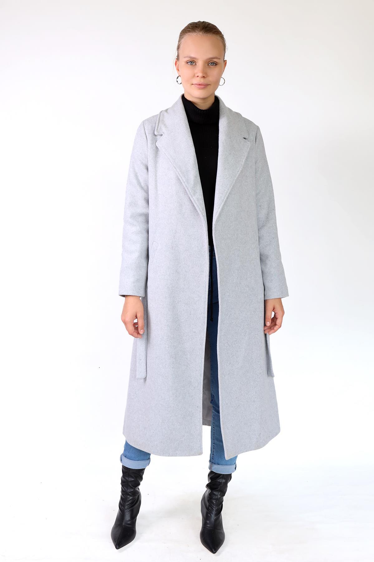 Gri Şal Yaka Vatkalı Kaşe Kaban 3022A
