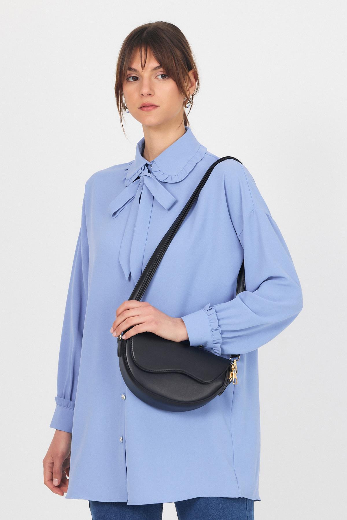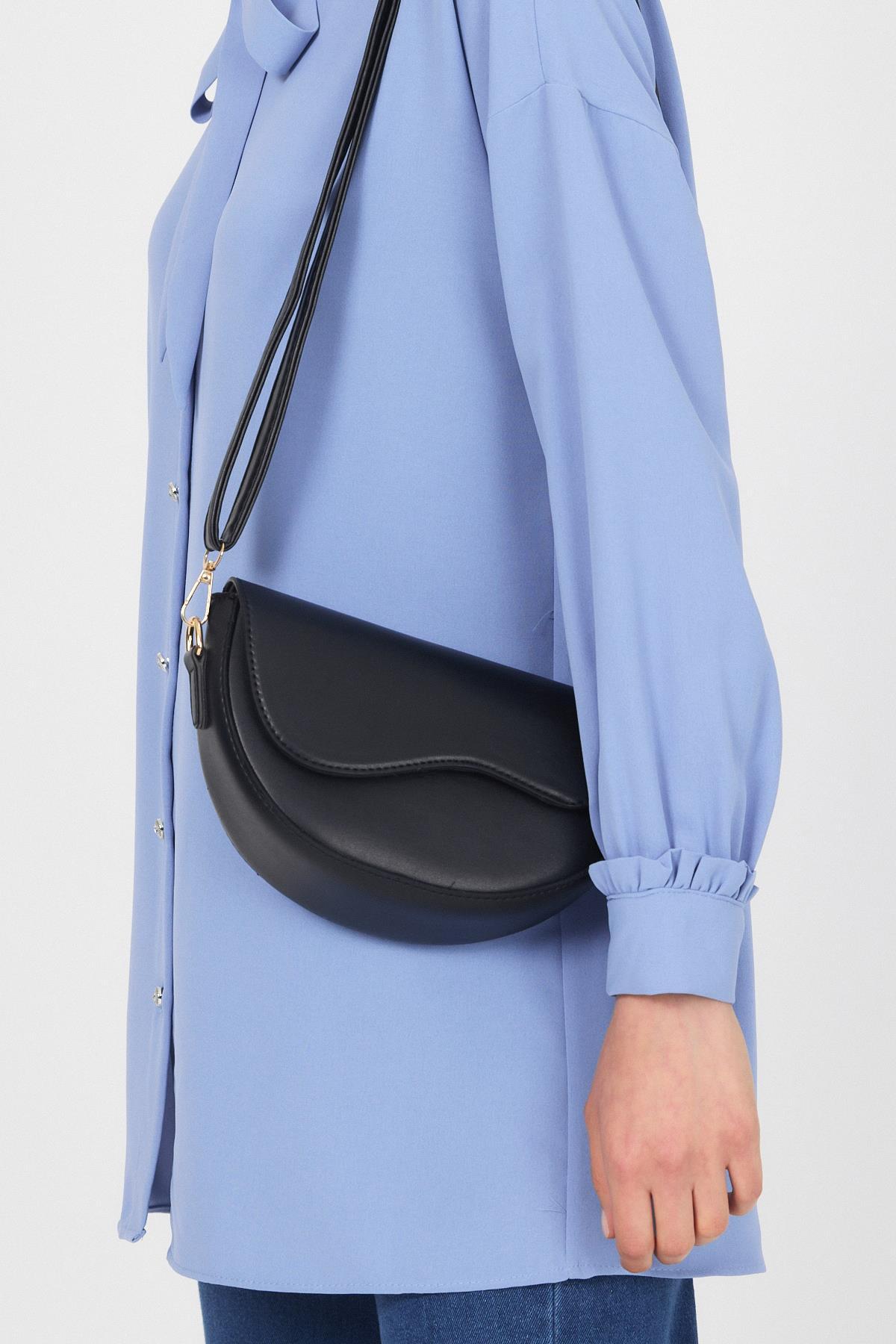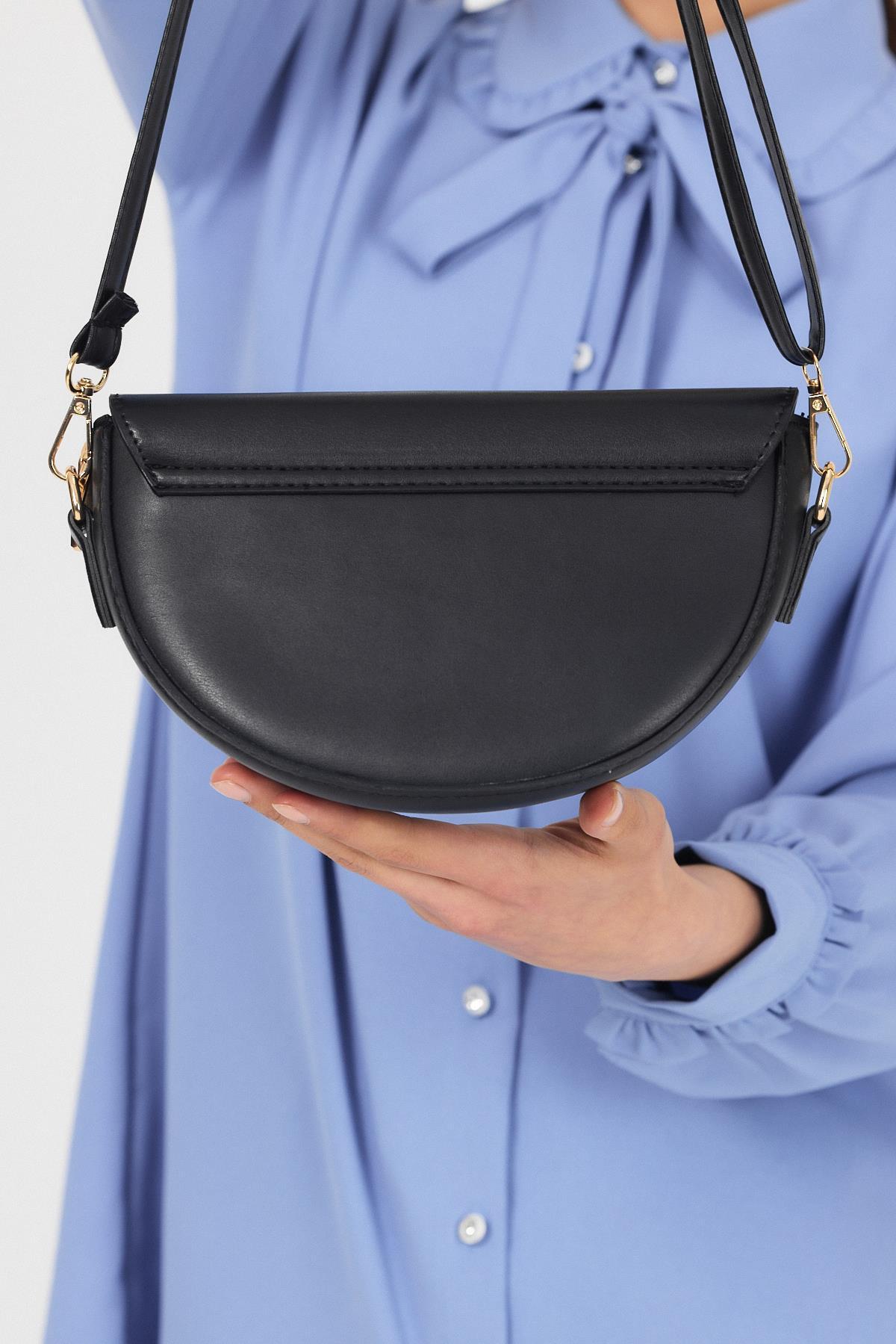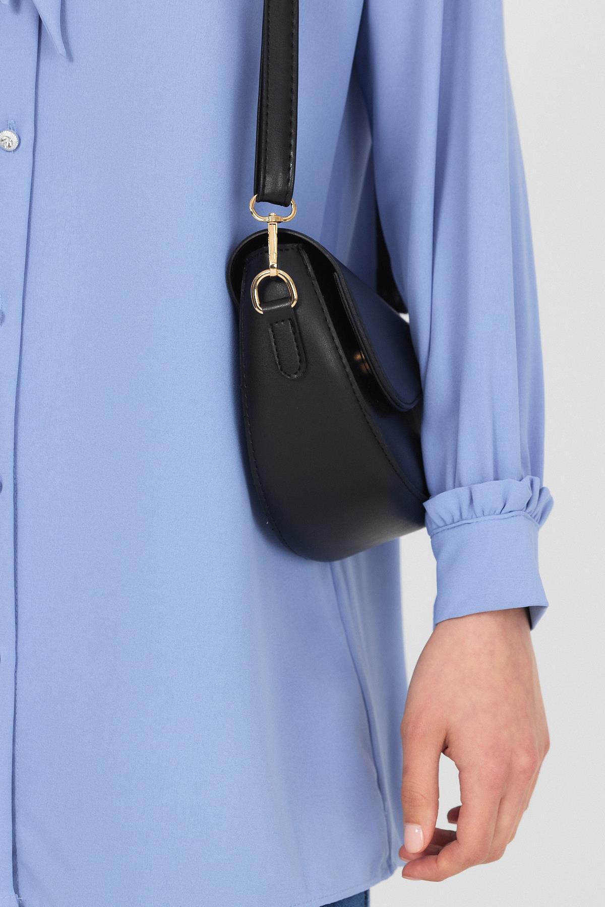 Siyah Kapak Detay Omuz Çantası 3024