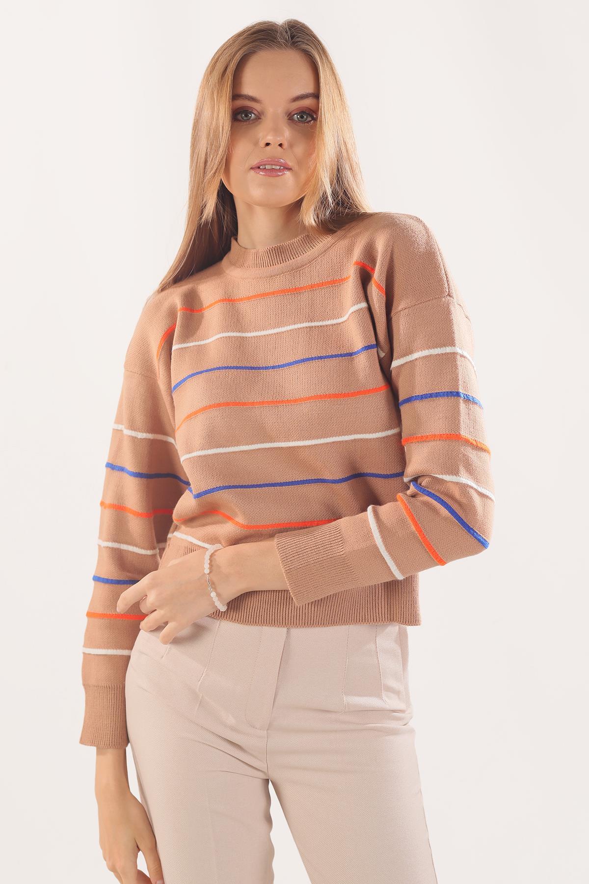 Kahve - Ekru Yıldız Baskılı Oversize Kazak 2474 - RAYS Kahve - Ekru Yıldız Baskılı Oversize Kazak 2474 - RAYS (1)