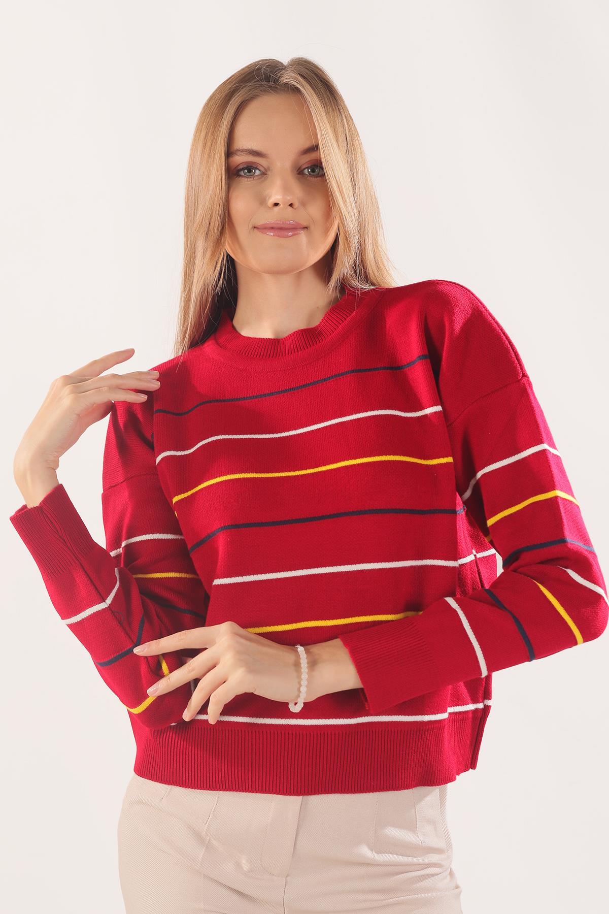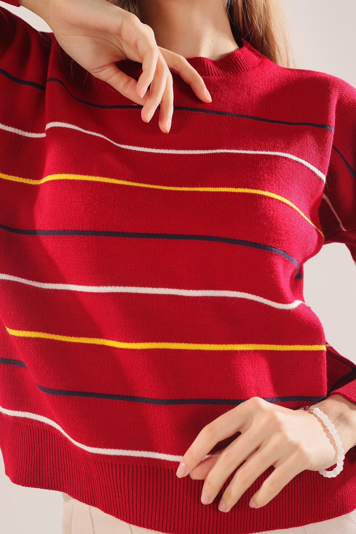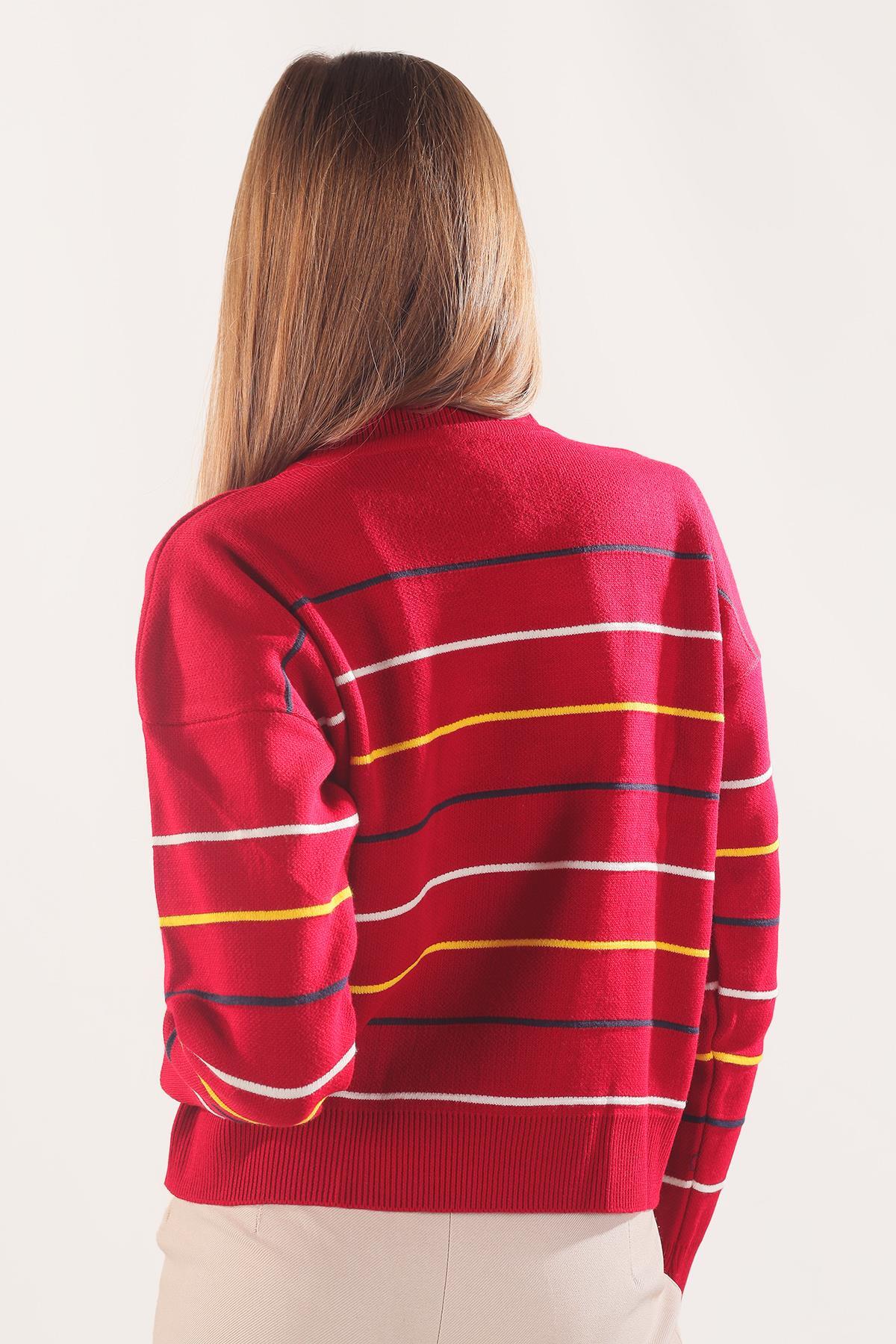 Kırmızı Renkli Çizgili Kazak 3024