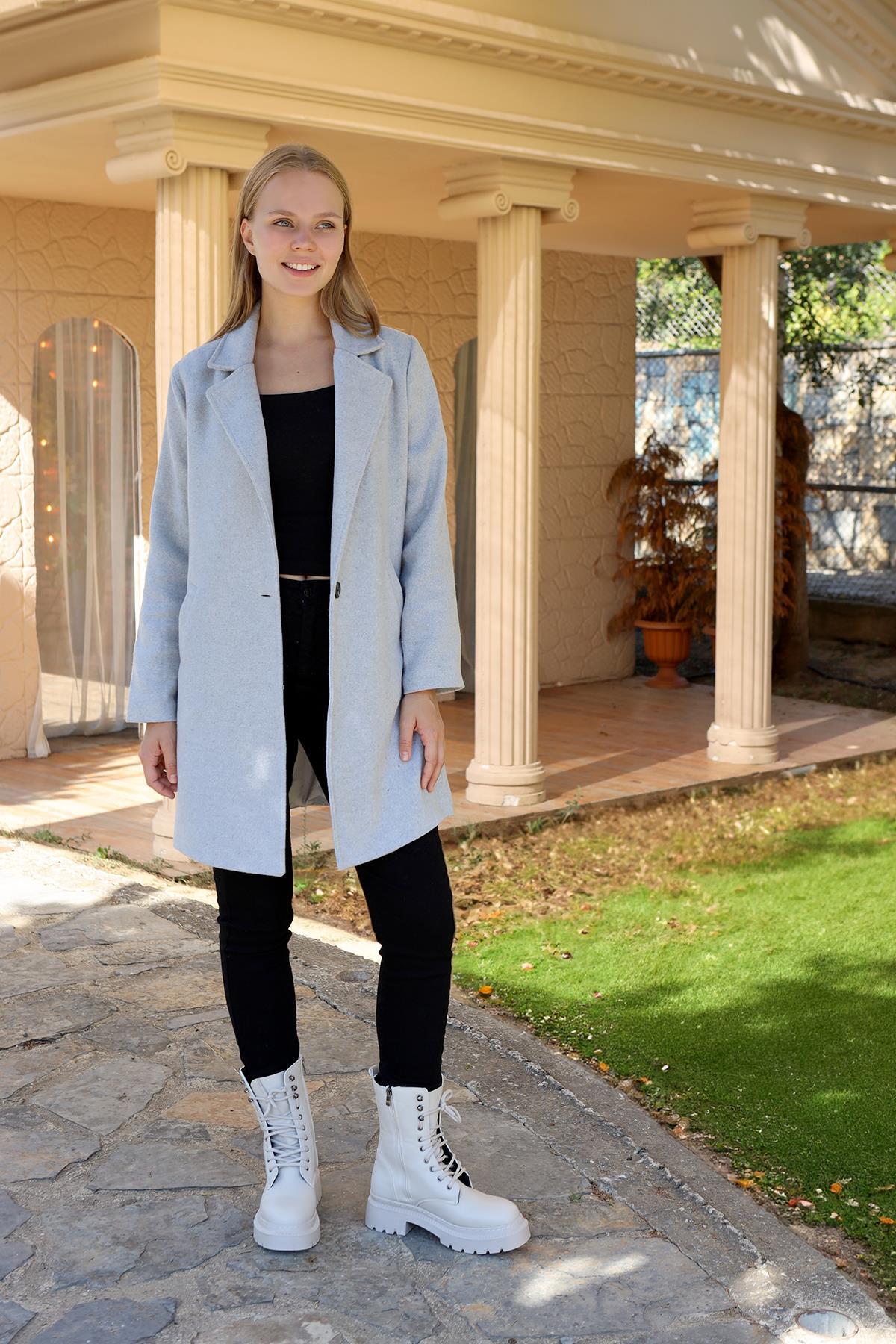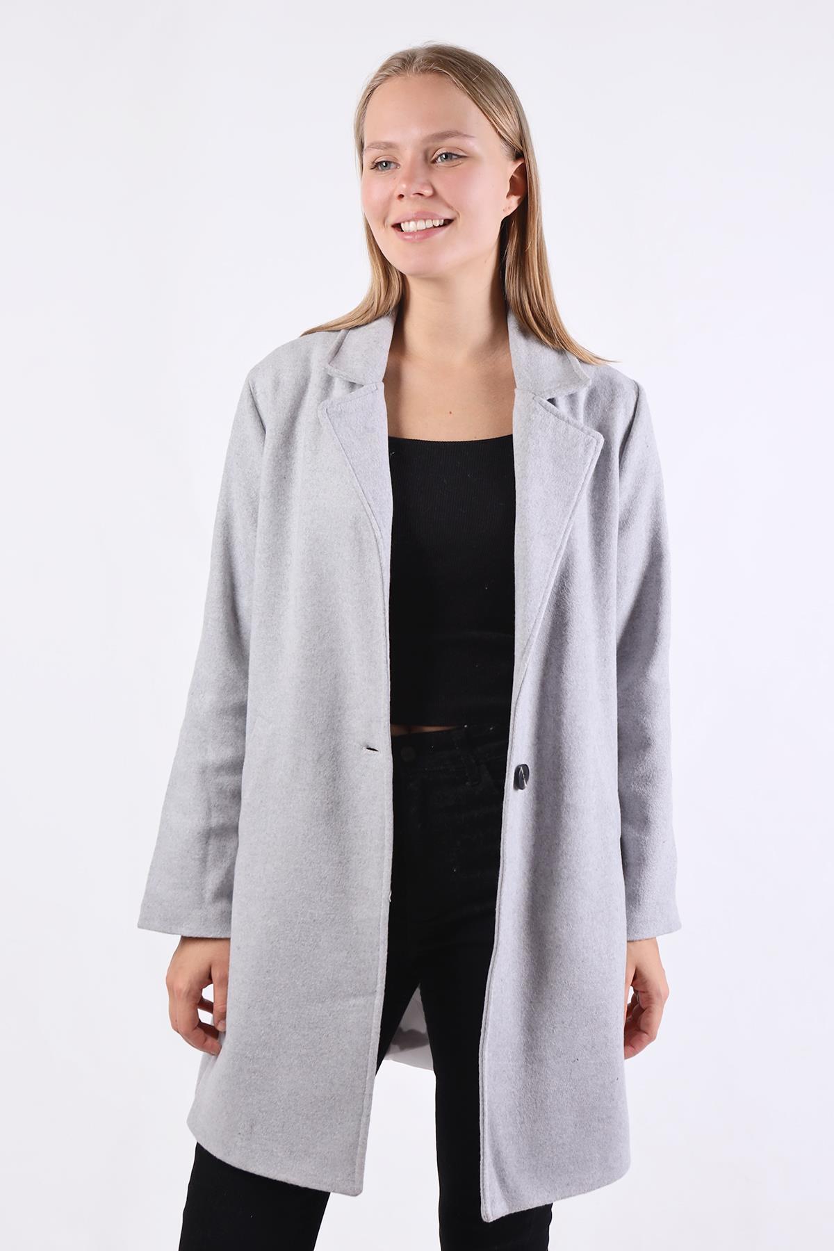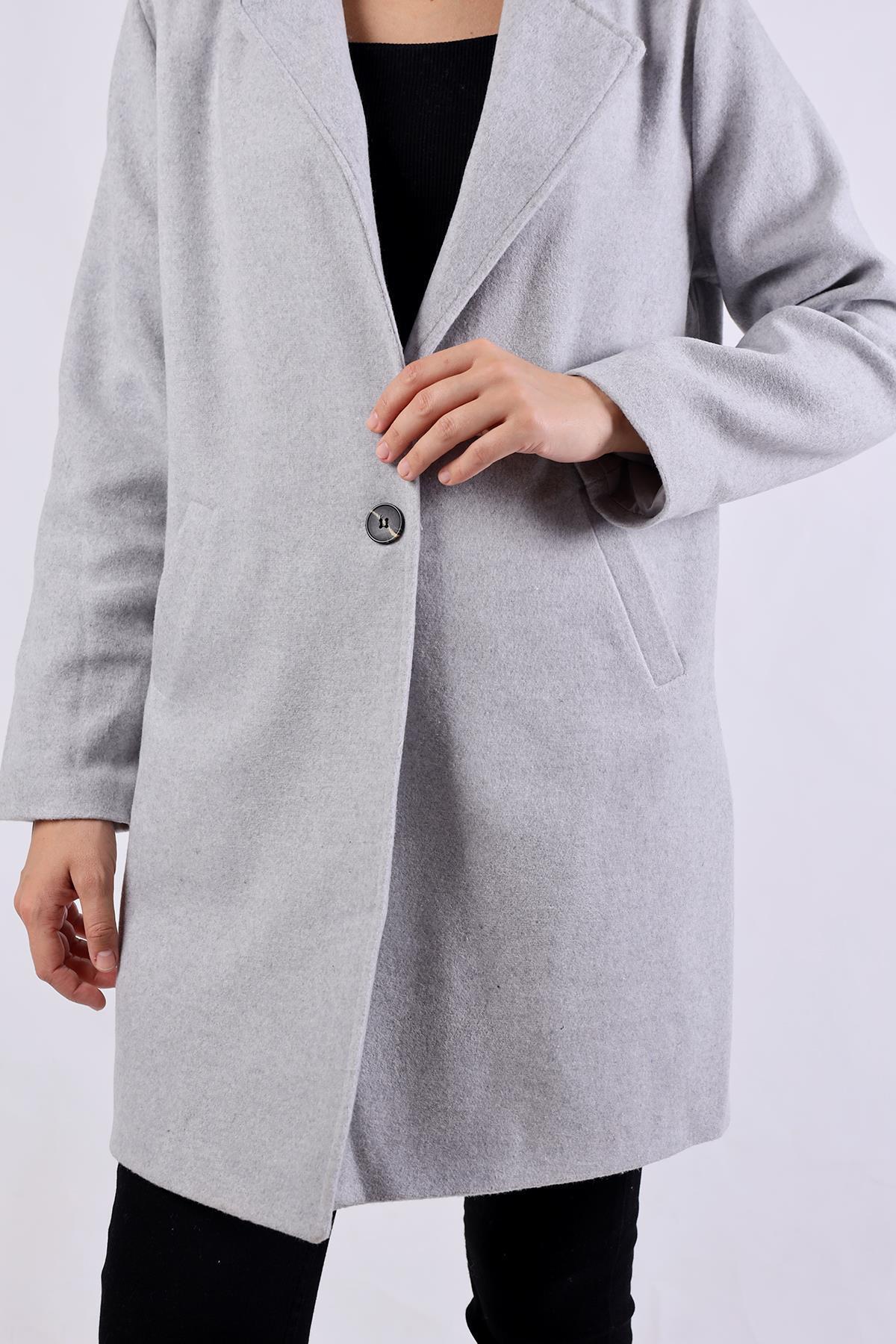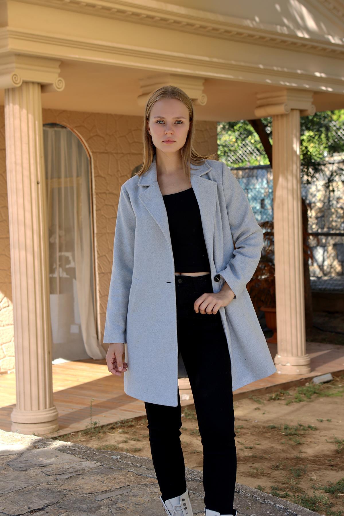 Gri Tek Düğme Klasik Kaşe Kaban 3024A