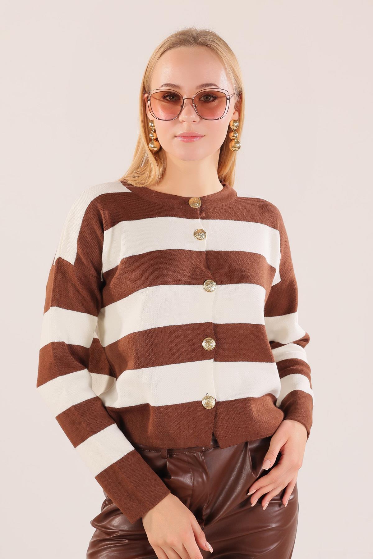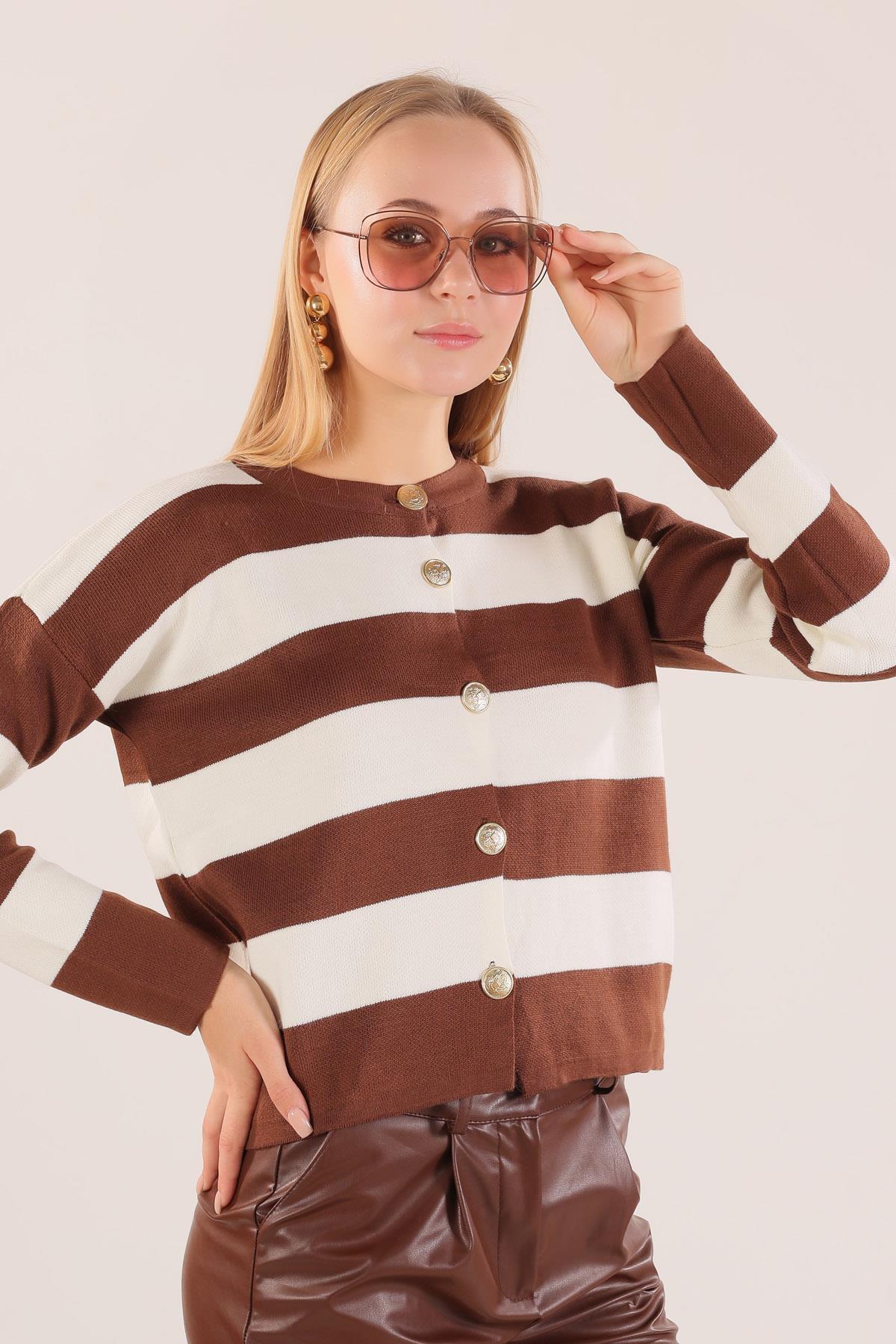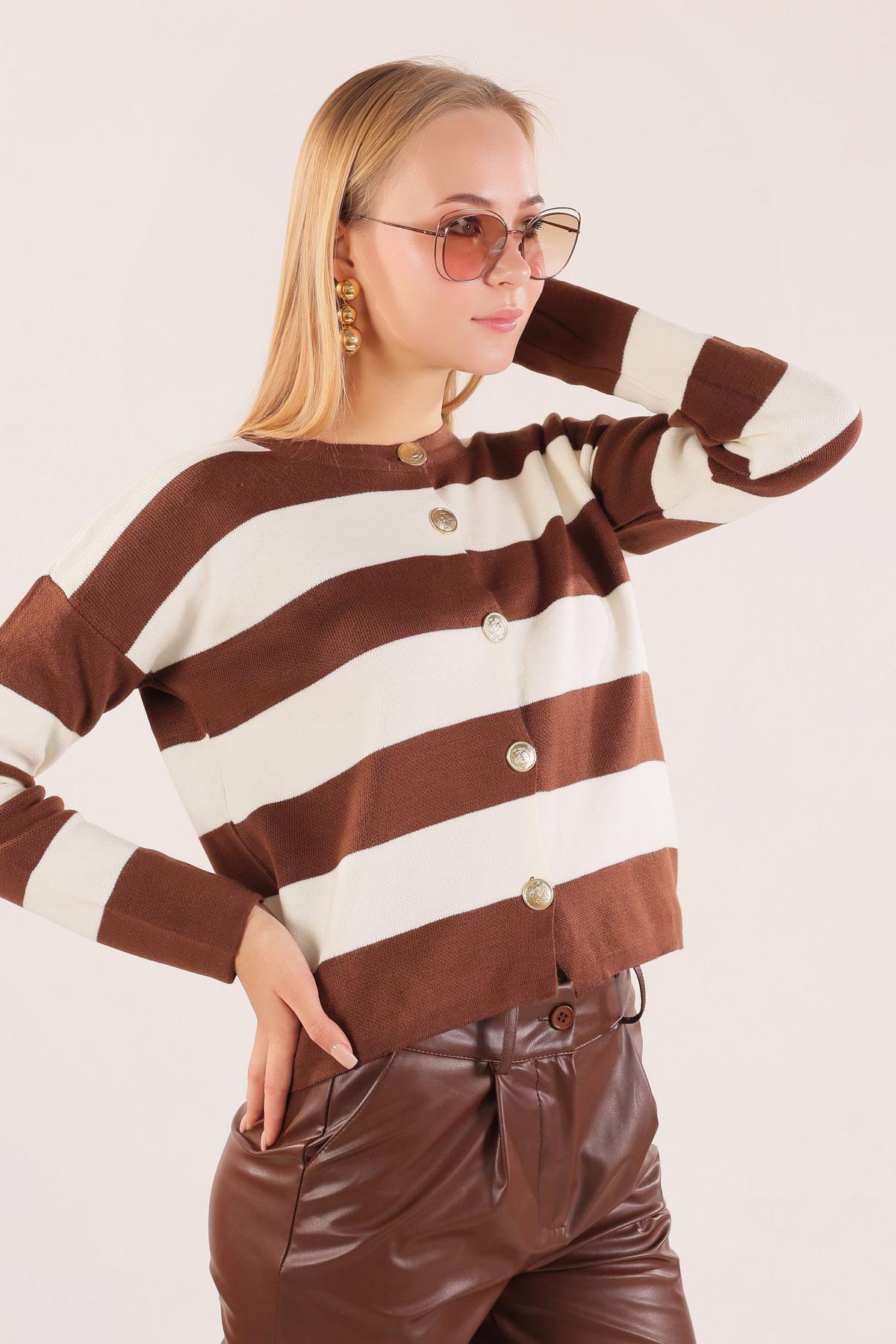 Kahve Düğmeli Çizgili Hırka 3025
